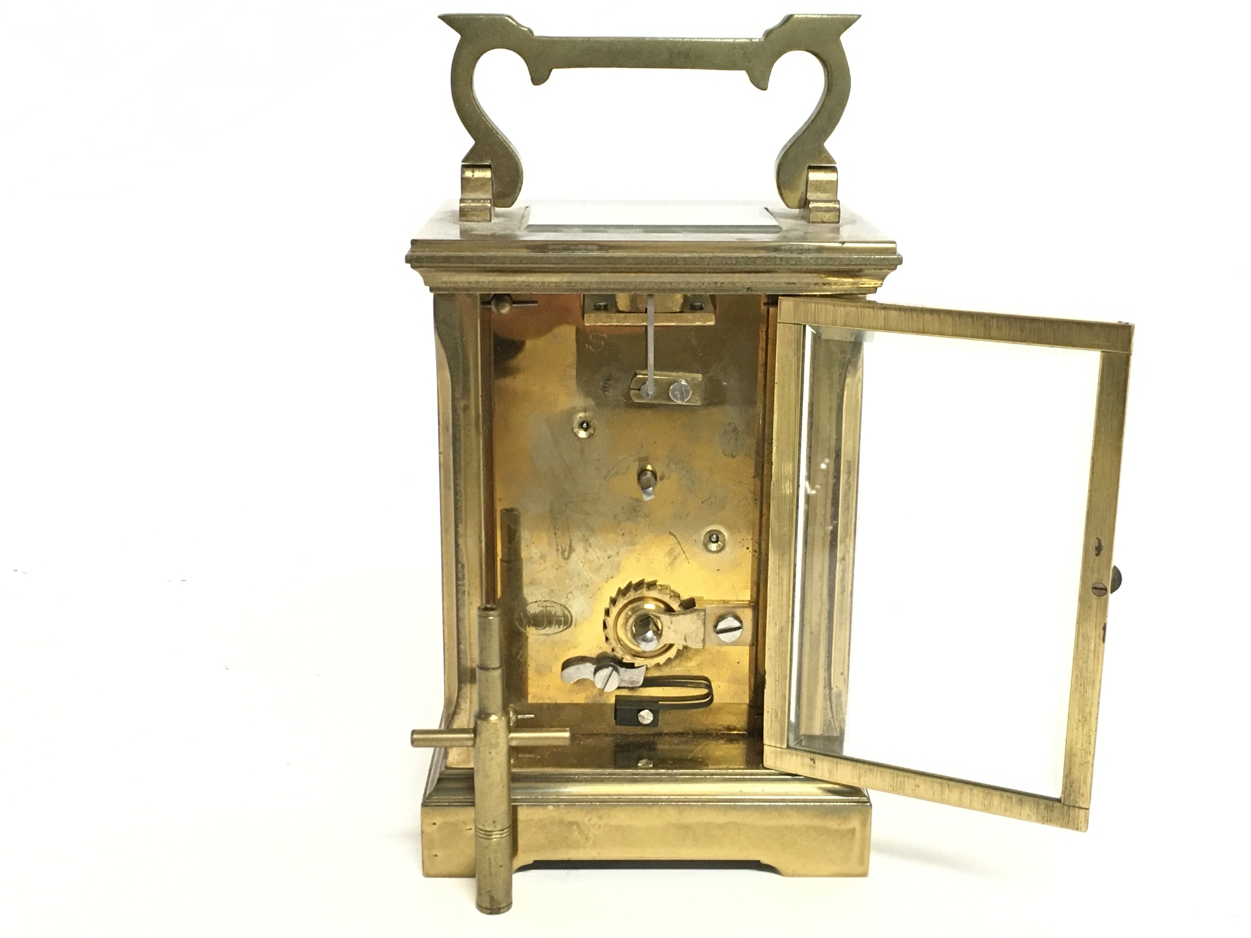 A brass carriage clock, this lot cannot be posted. NO RESERVE