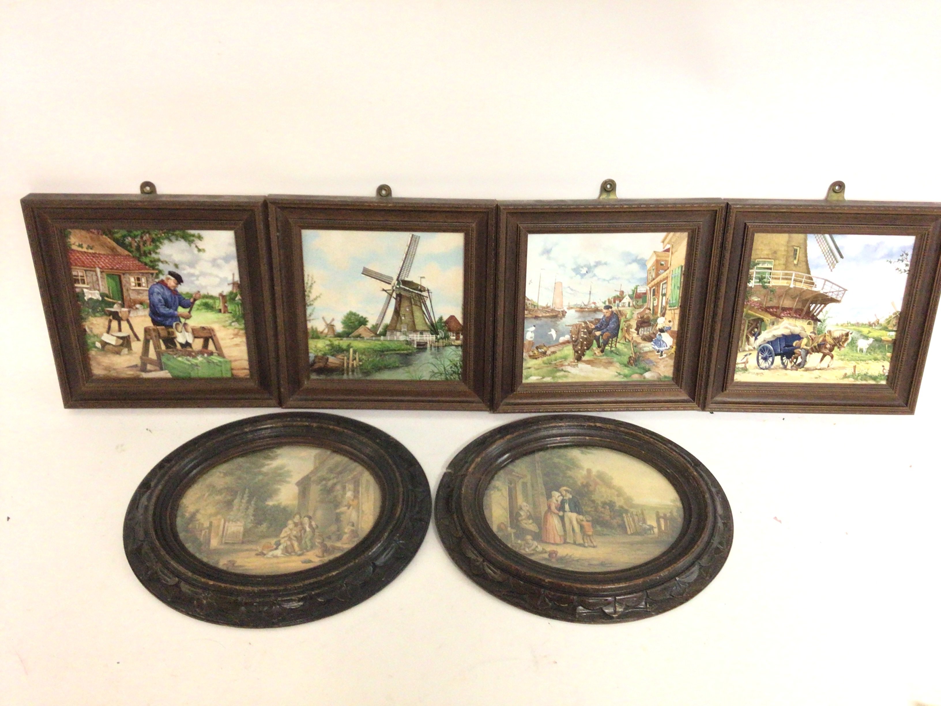 Framed Royal Mosa porcelain tiles and oval 19th century style Prints. This lot cannot be posted. NO RESERVE