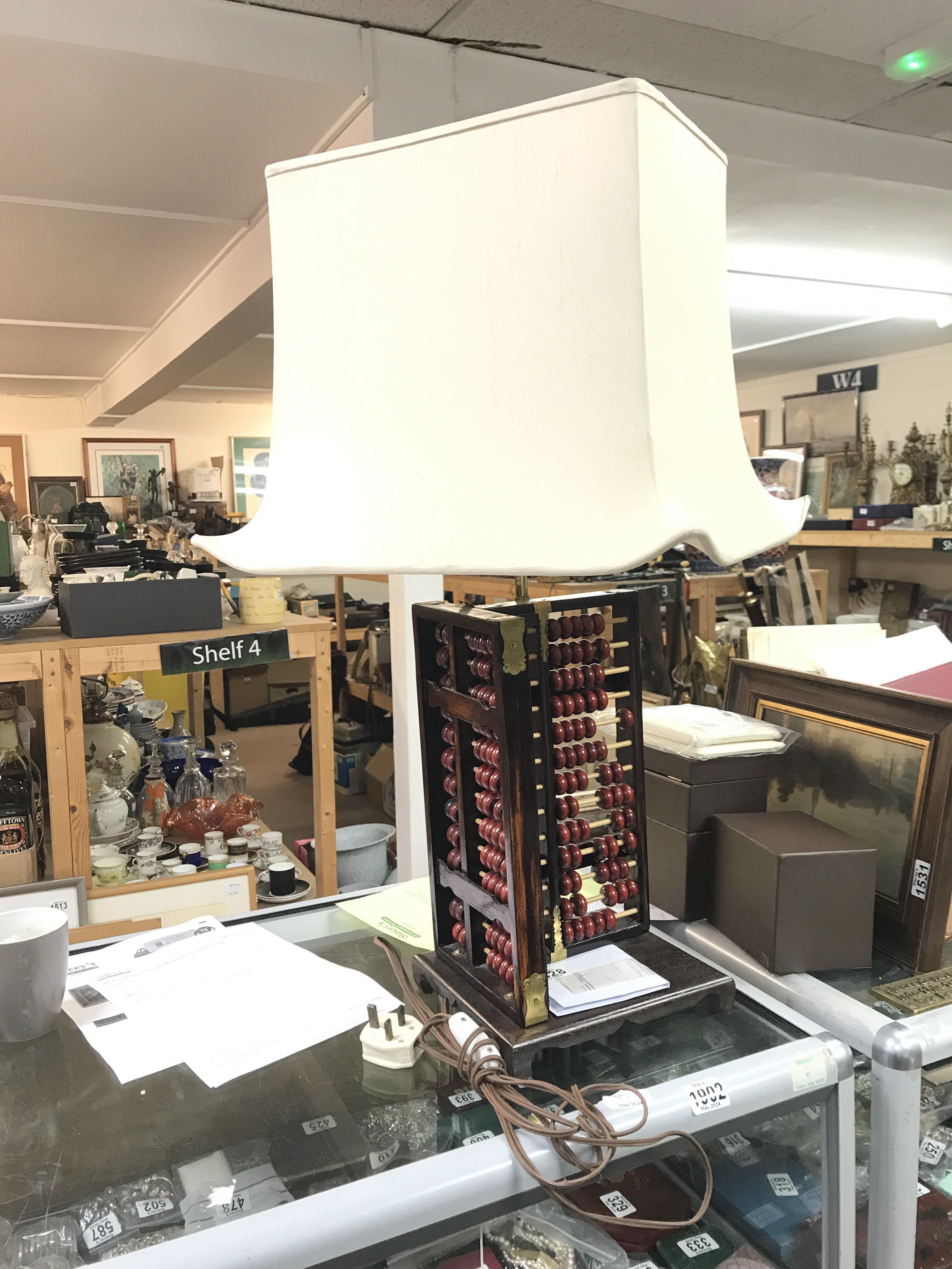 A vintage wooden abacus lamp. 80cm tall. This lot cannot be posted. NO RESERVE