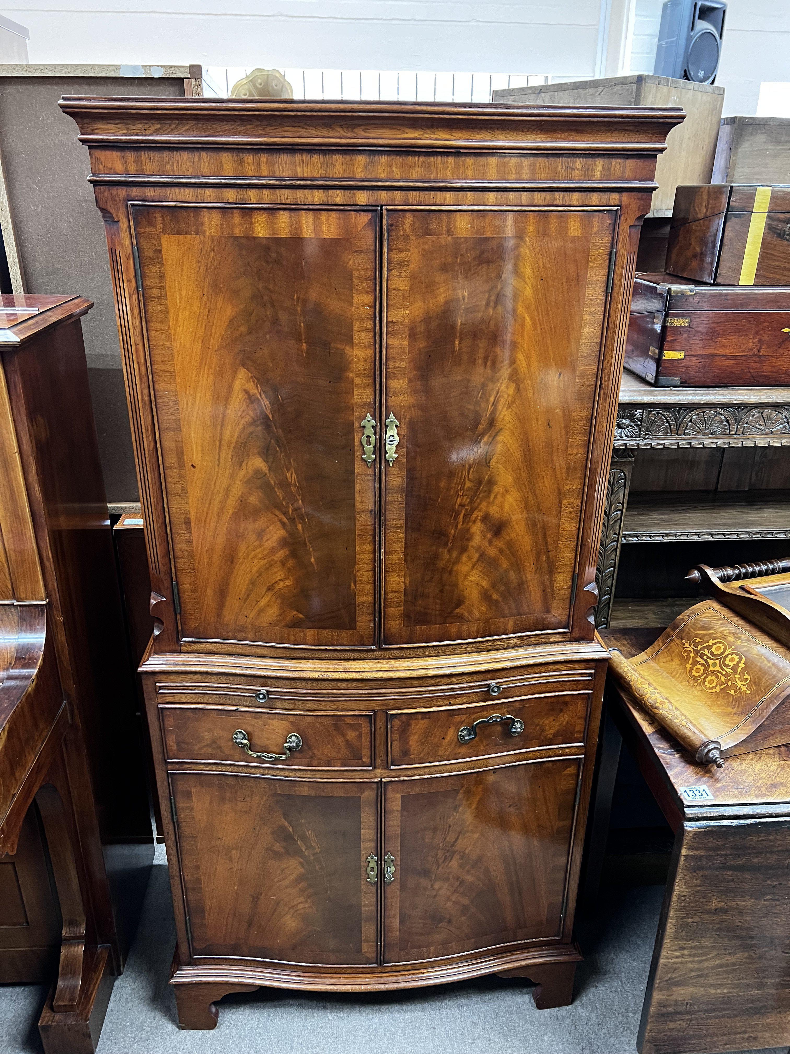 Reproduction Figured Mahogany Cocktail Cabinet / Drinks Cabinet. W: 76cm x H: 153cm x D: 46cm. NO RESERVE