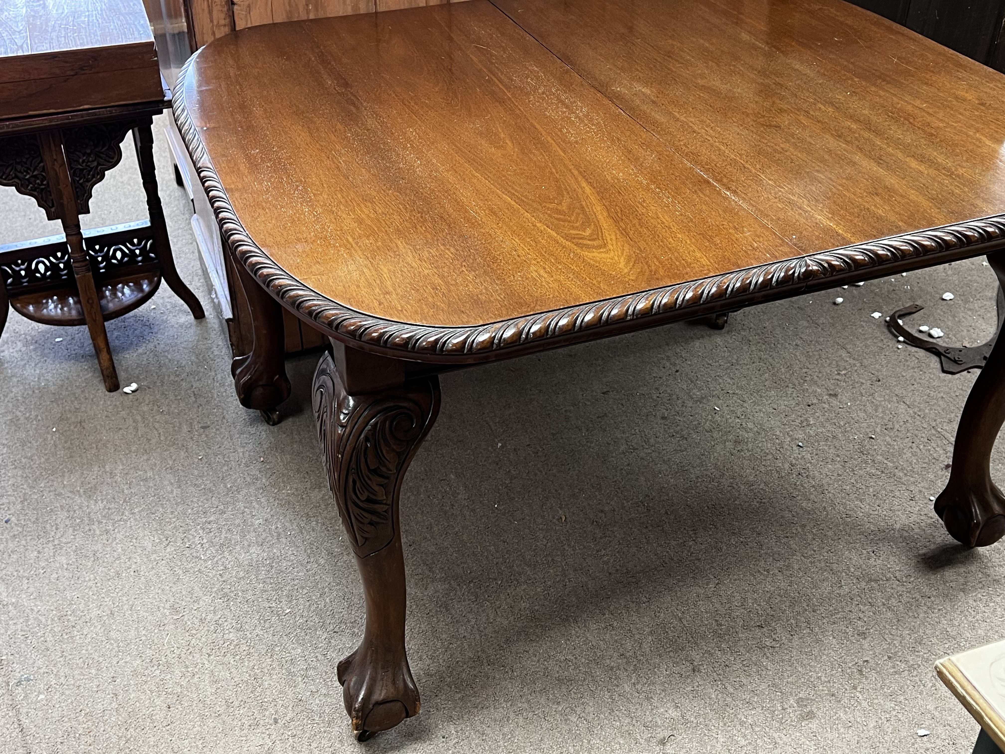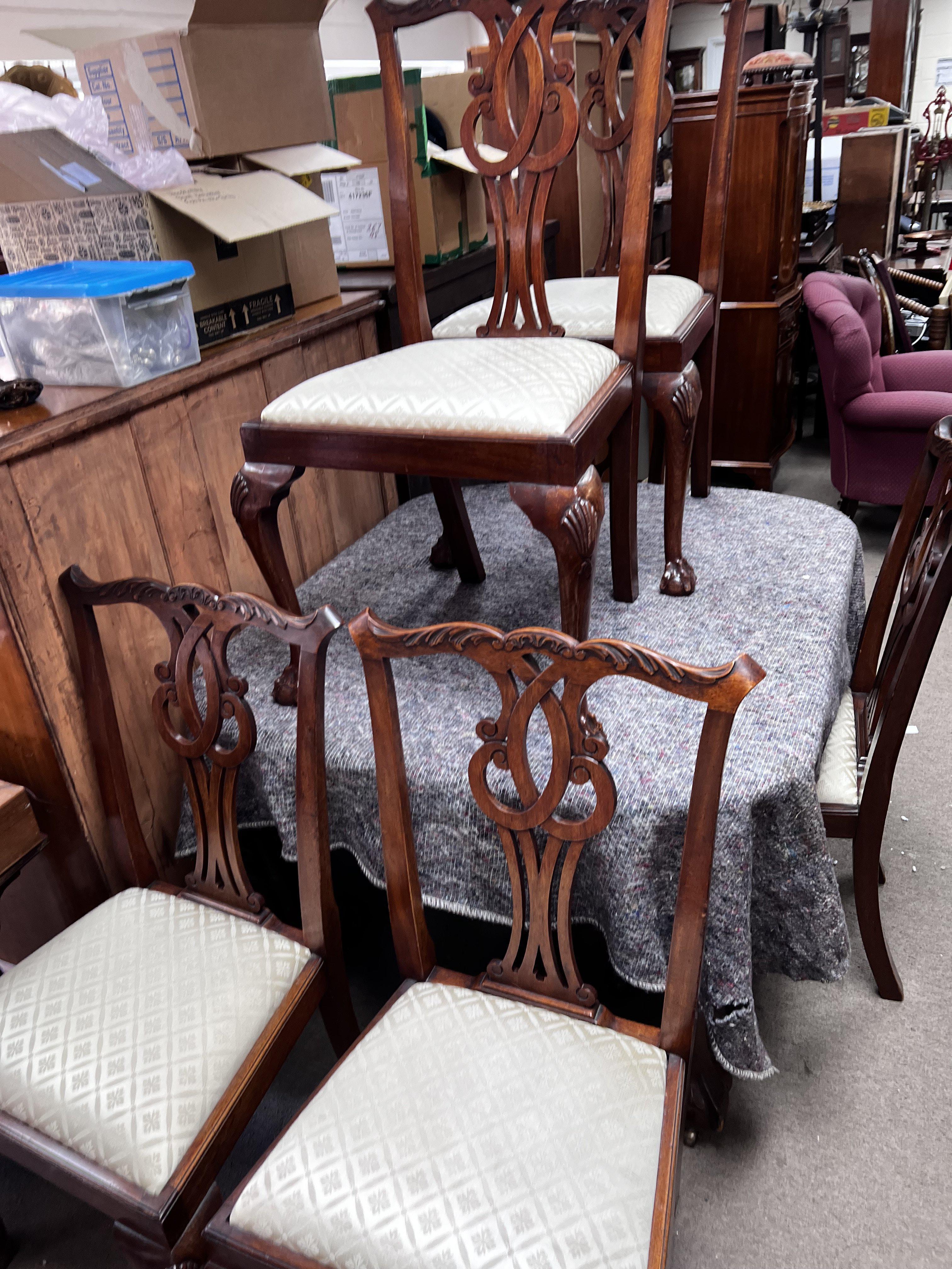 A reproduction Mahogany chippendale style dining table and 6 chairs. NO RESERVE