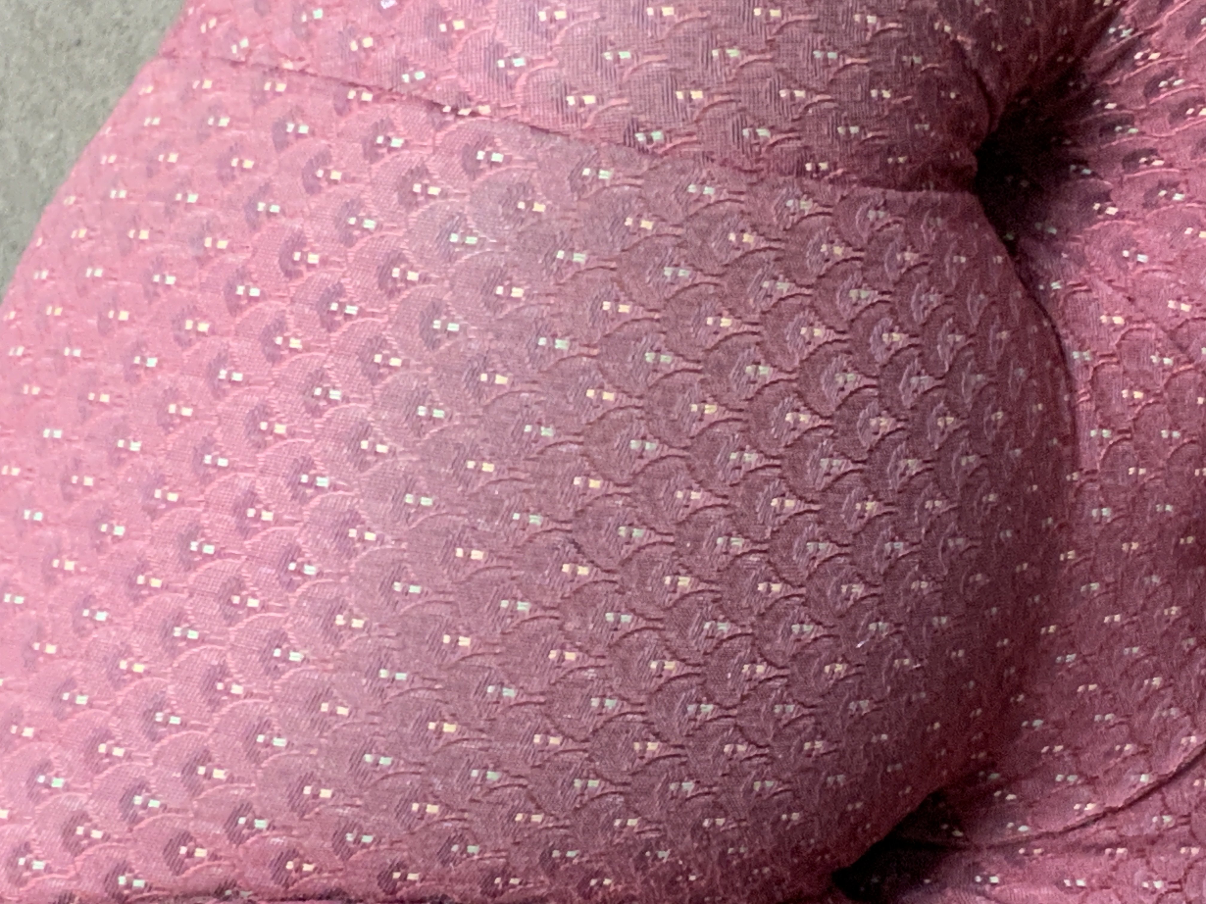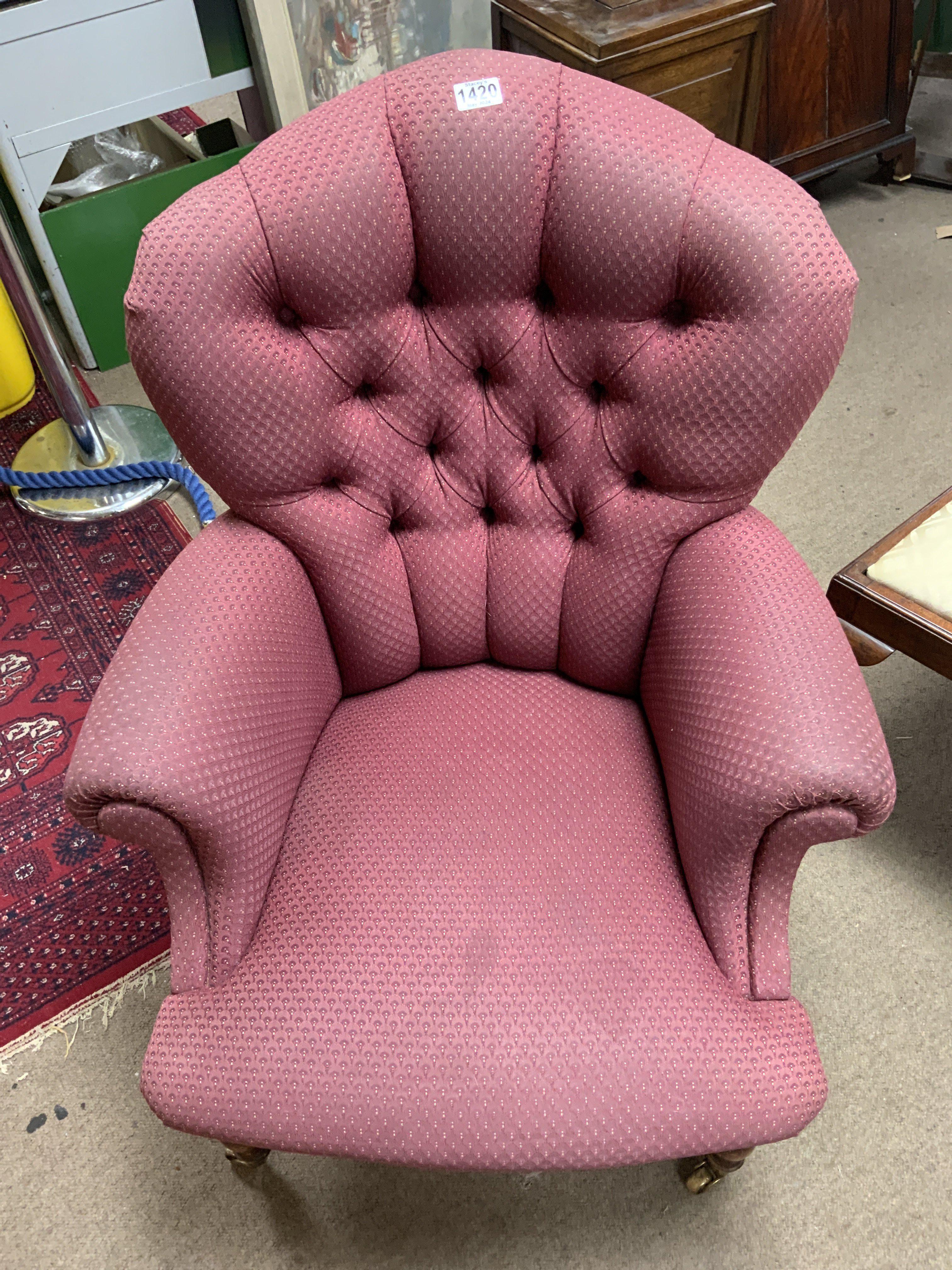 A Victorian pink peacock feather design upholstered tub chair. NO RESERVE