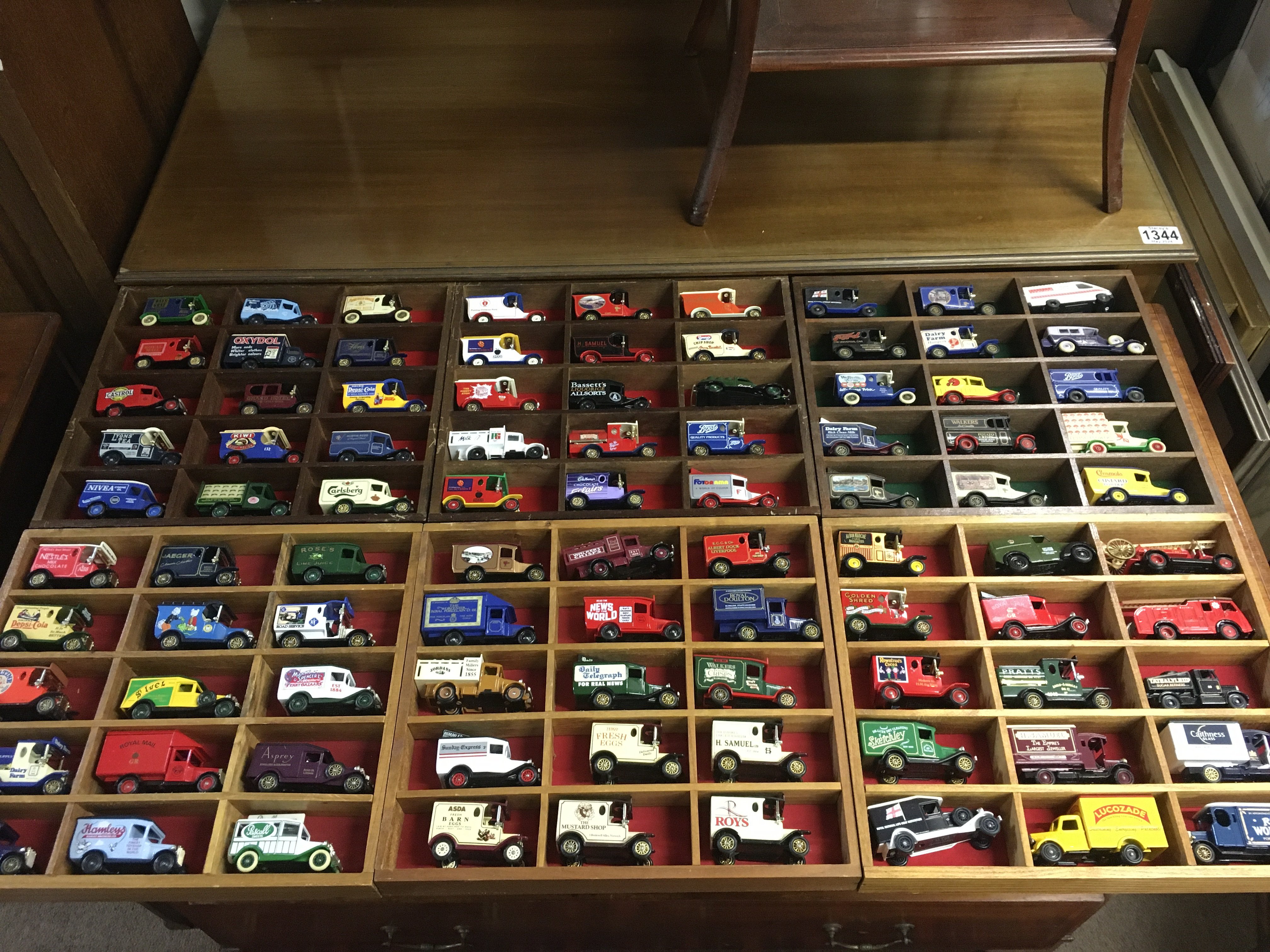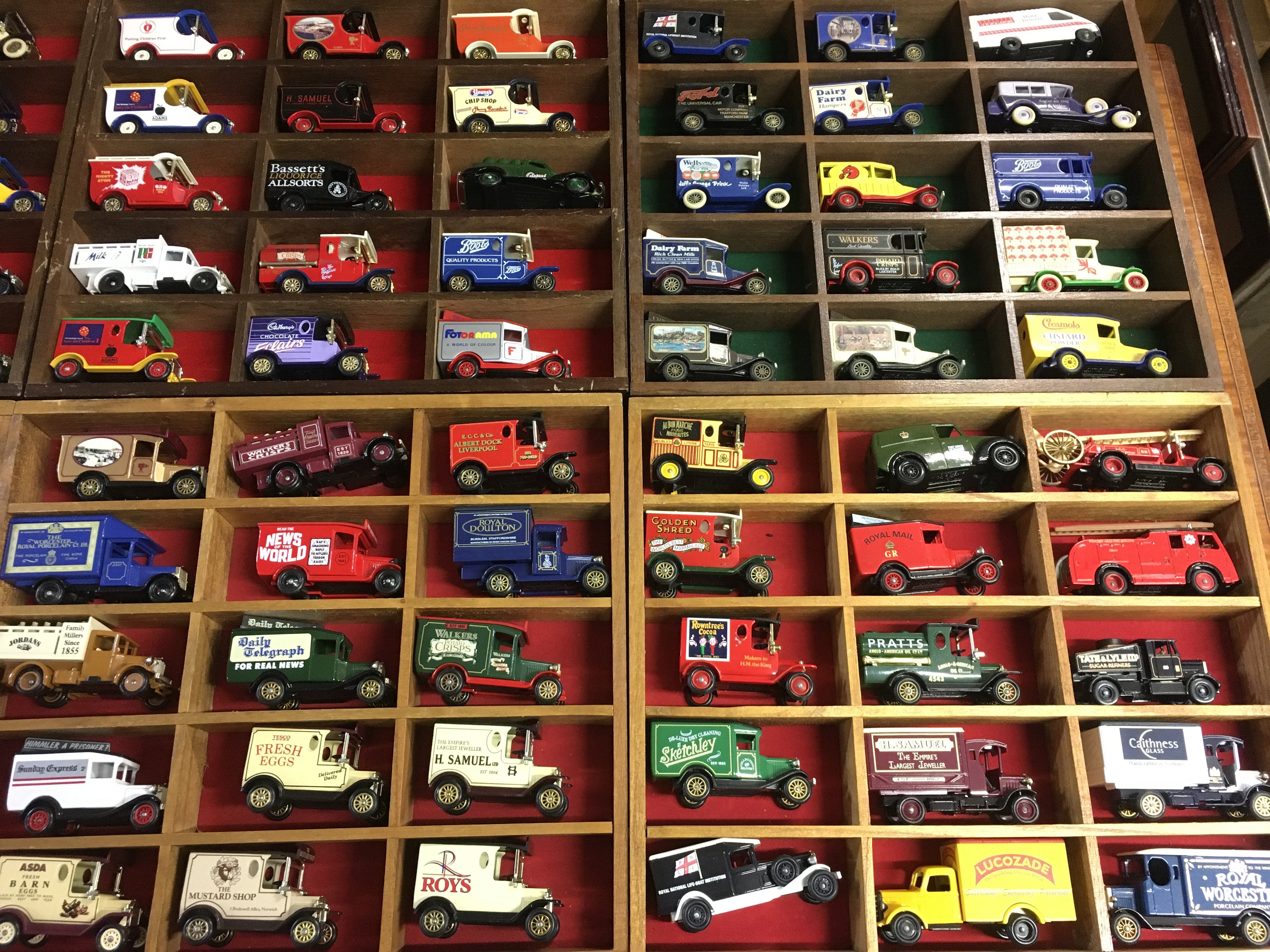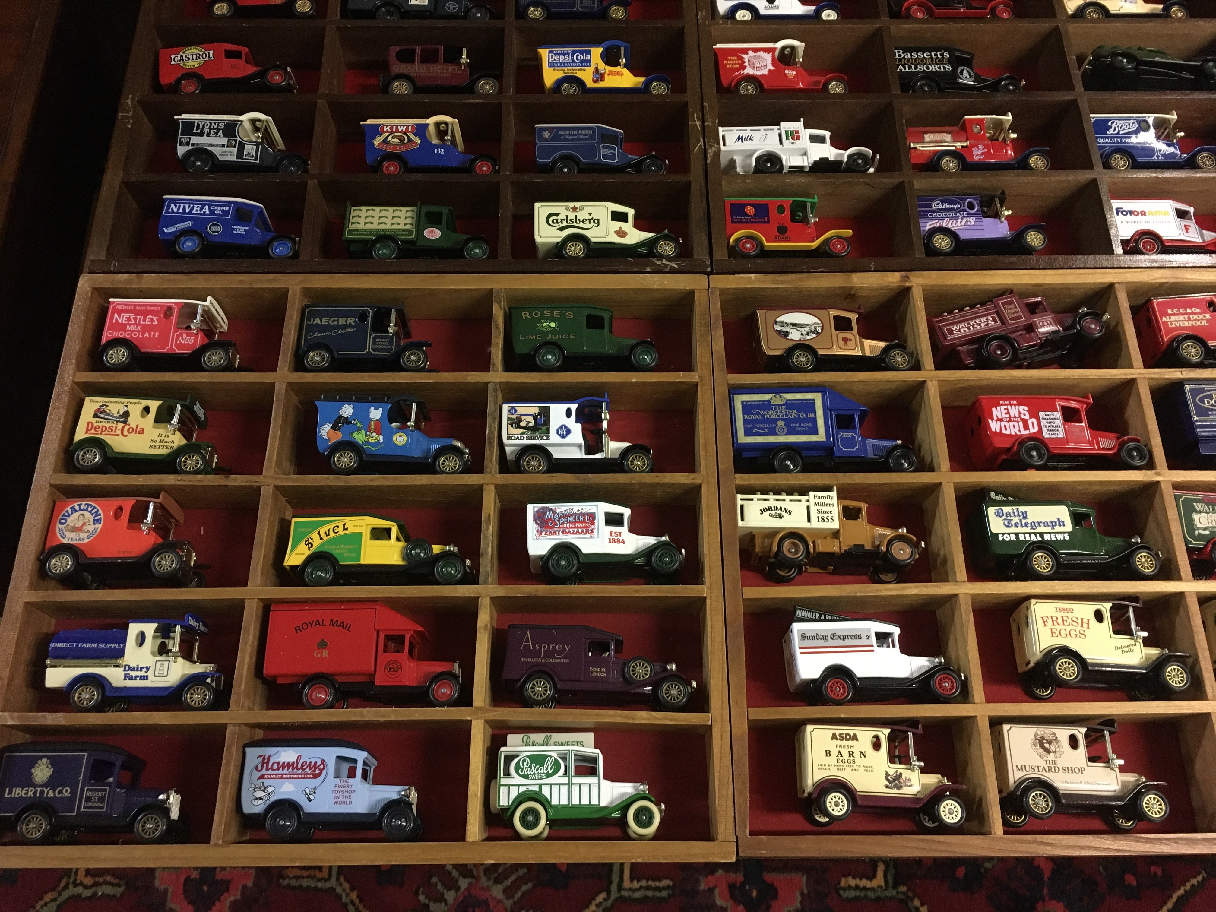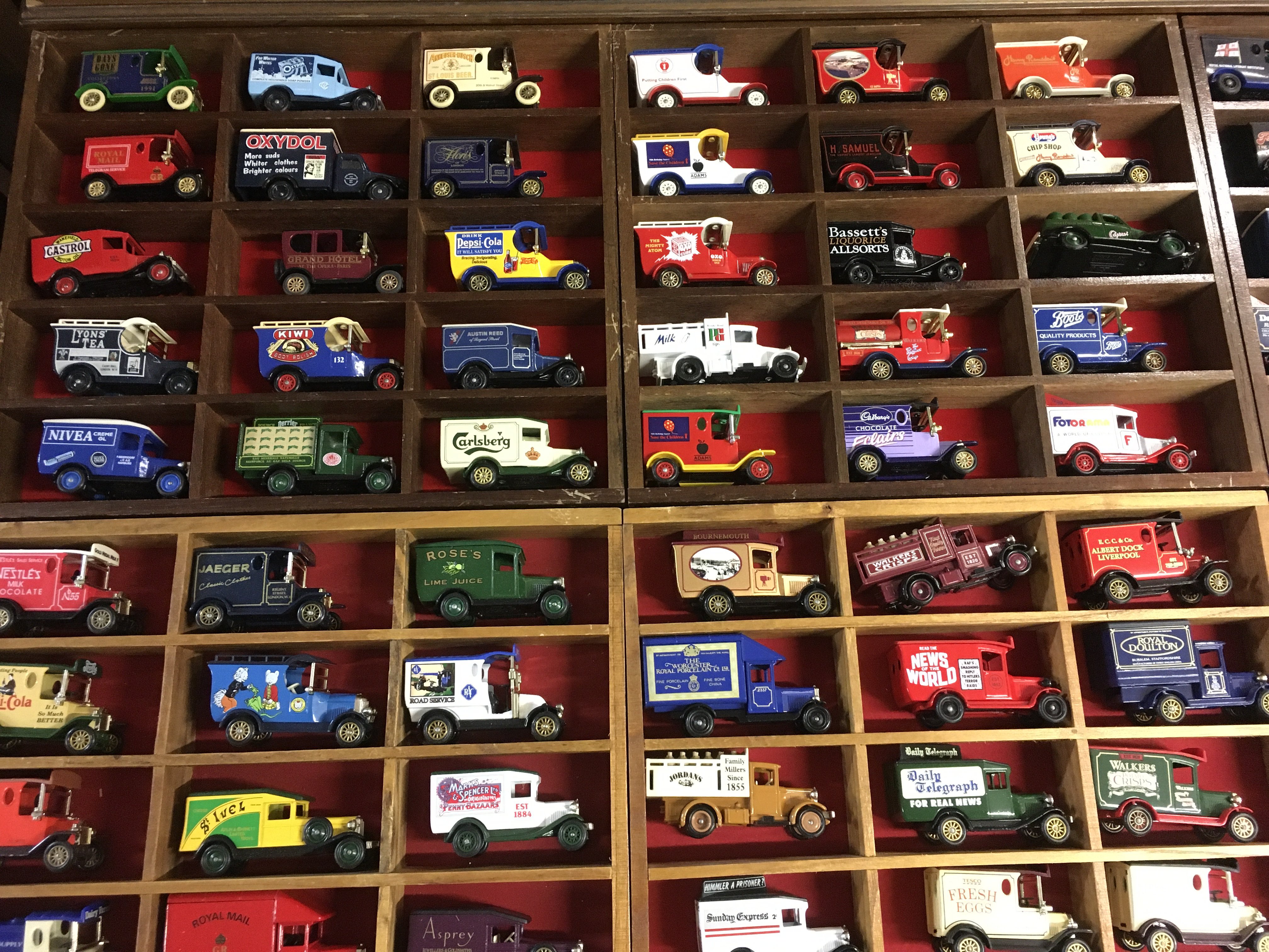 6 display frames with assorted die cast vehicles from days gone. Postage C. NO RESERVE