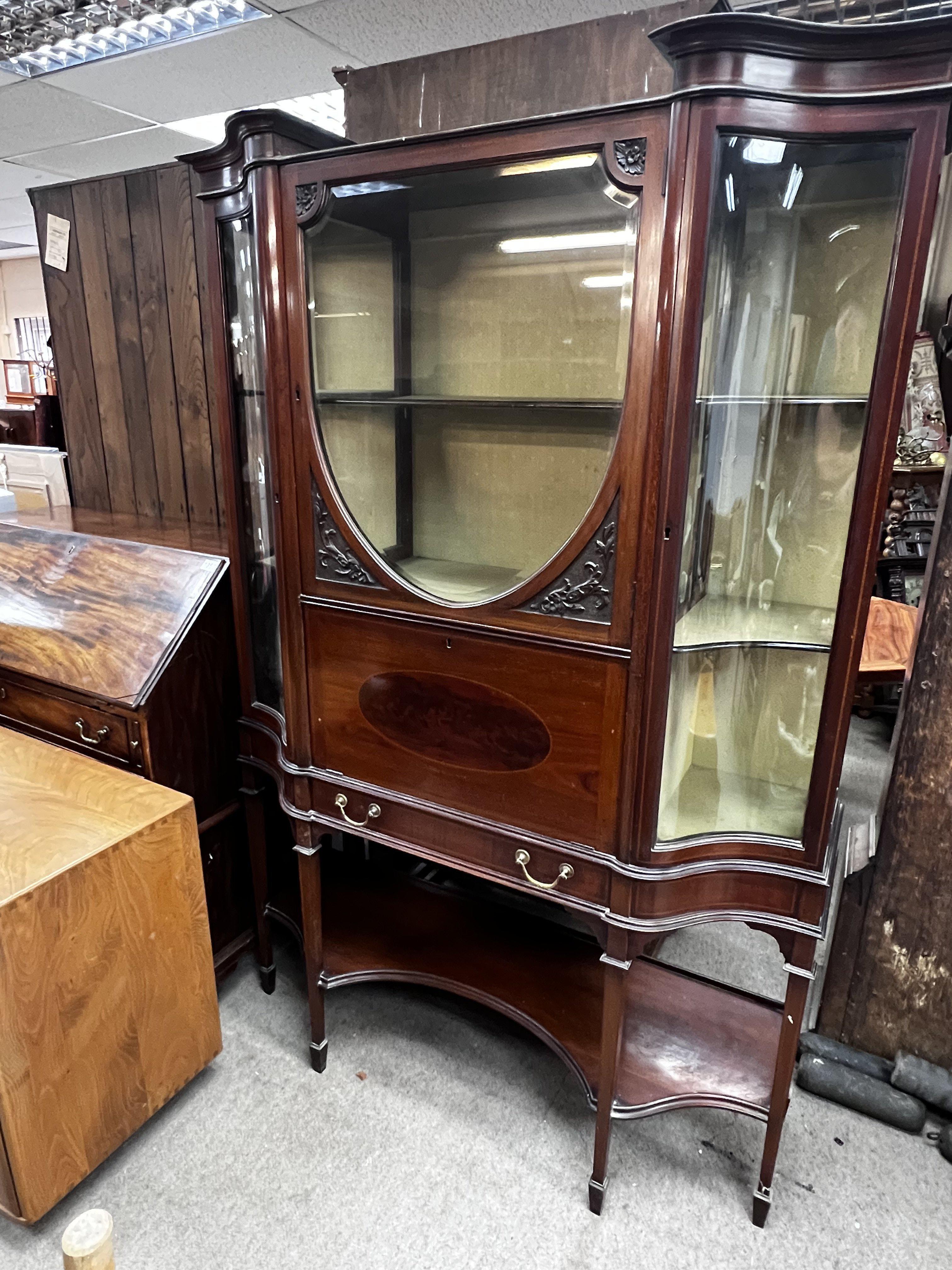 An Edwardian inlaid display cabinet with box wood inlay. 123cm x 181cm x 44cm