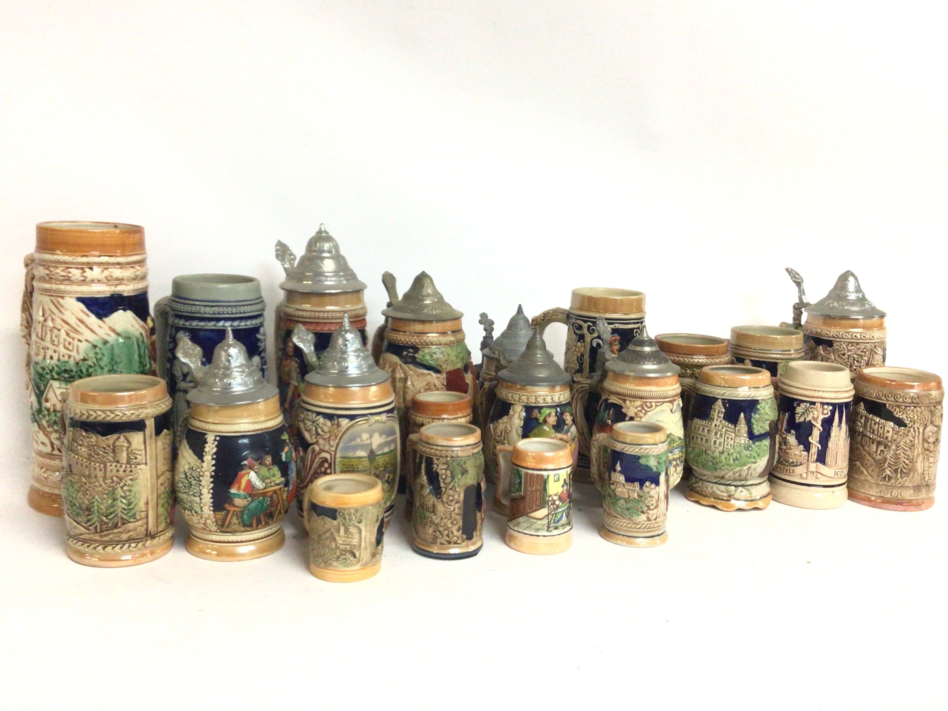 A large collection of German Stein jugs and tankard, this lot cannot be posted. NO RESERVE