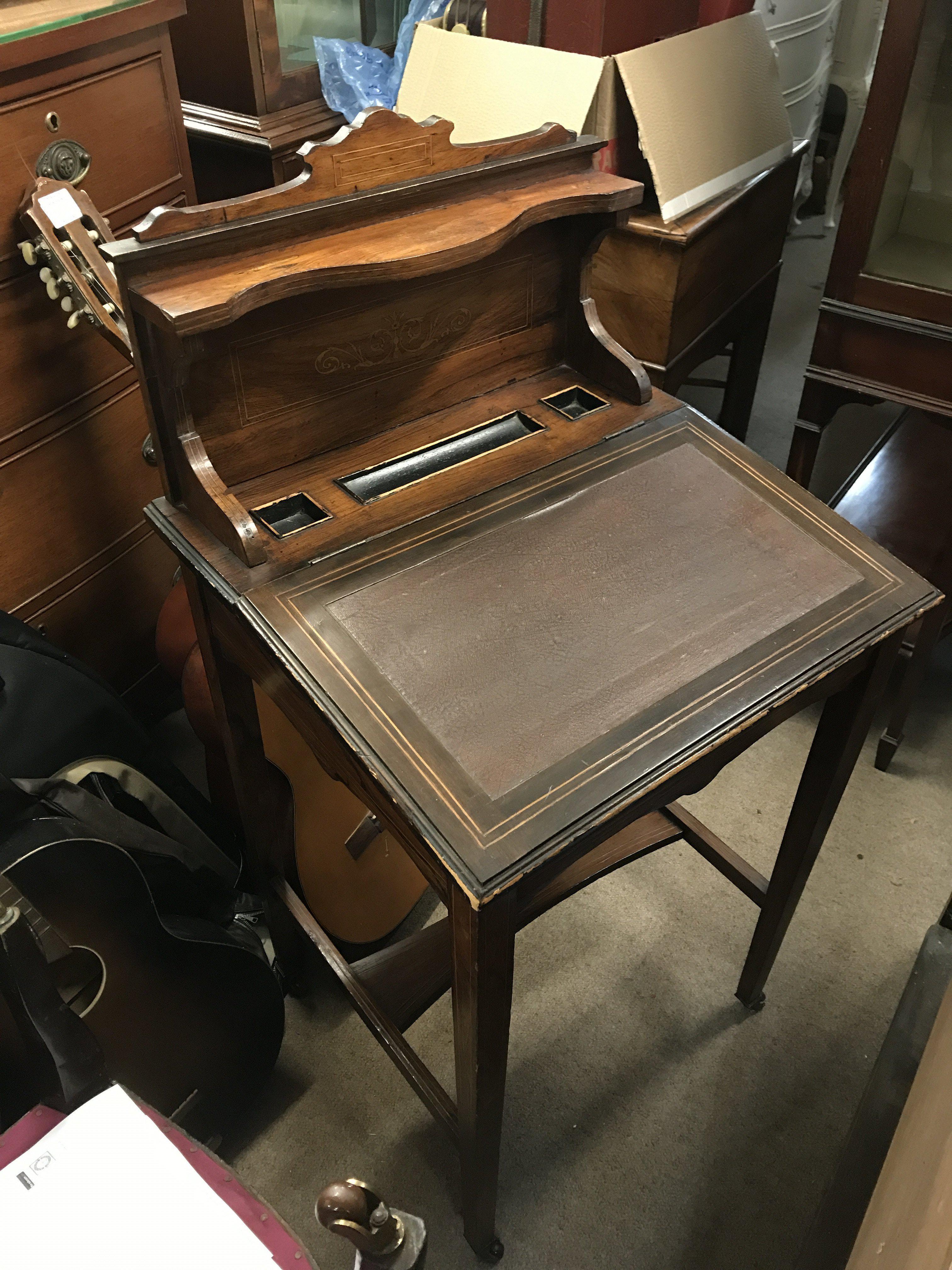 An Edwardian inlaid design rosewood writing desk , dimensions 48x52x98. NO RESERVE