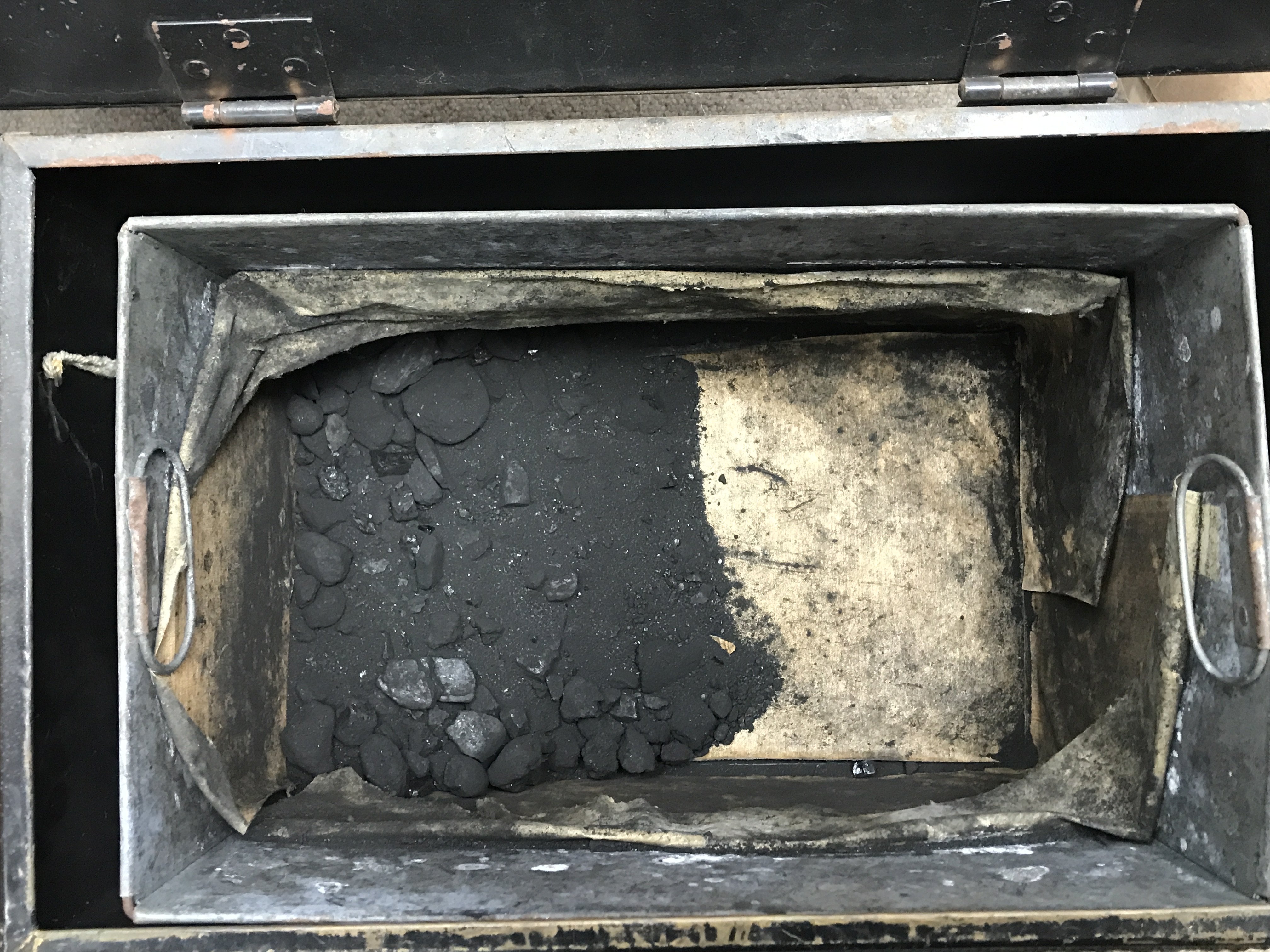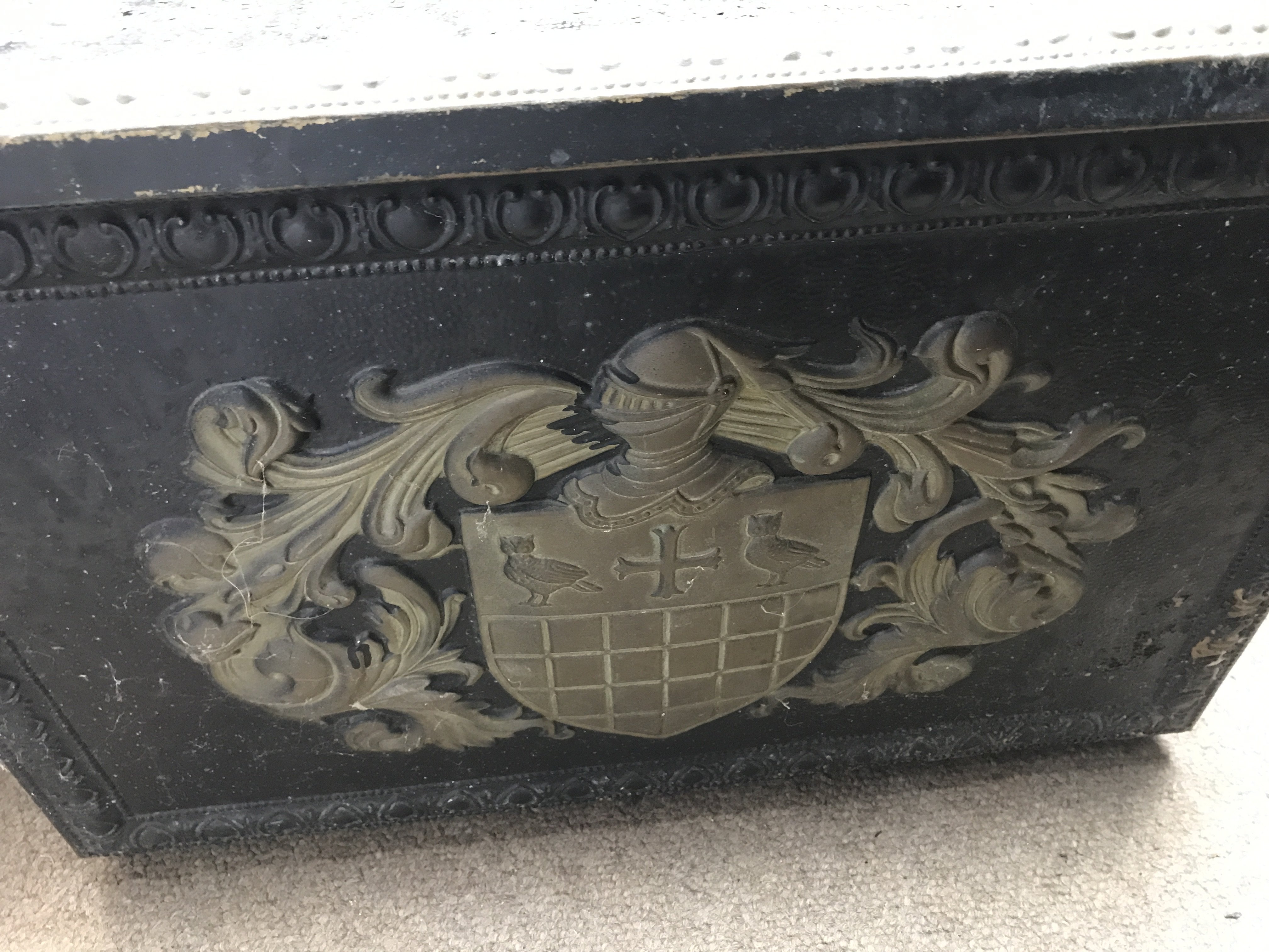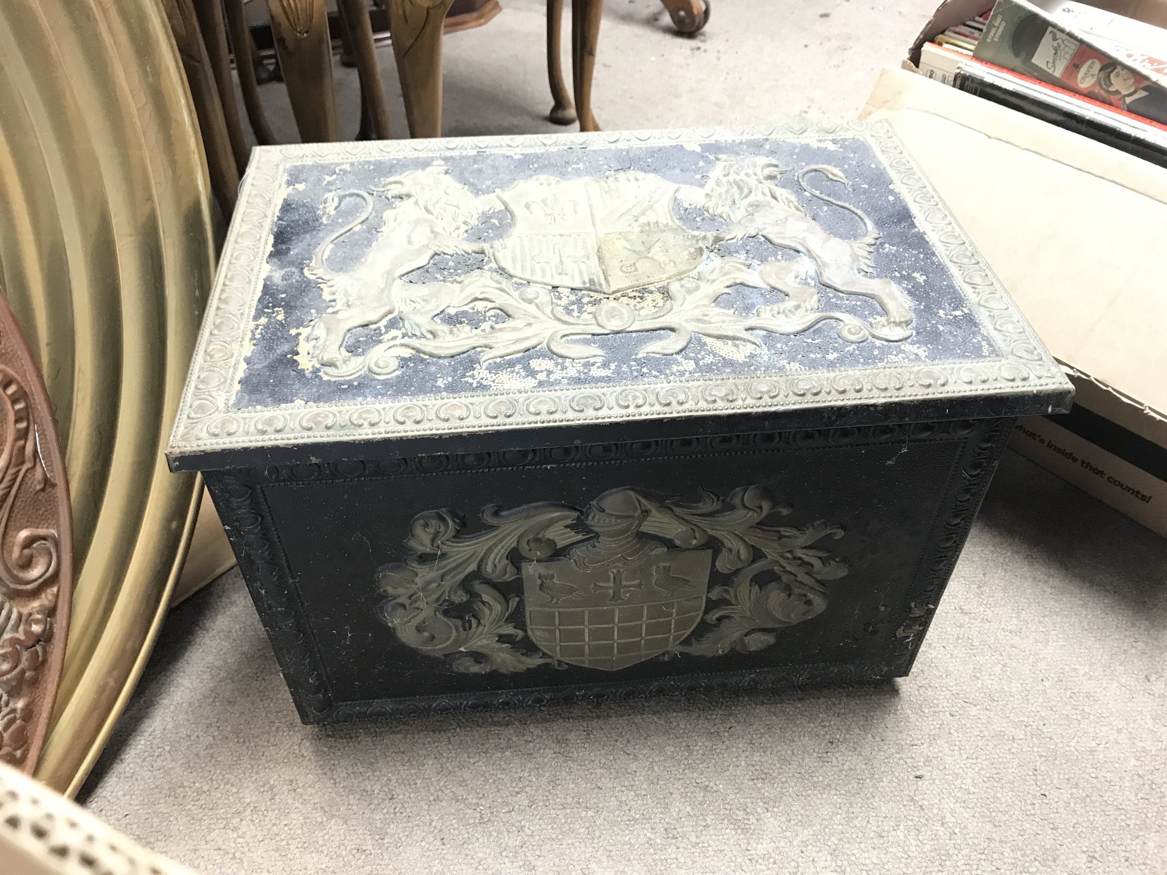 A vintage coal box with crest design, dimensions 30x46x30cm. NO RESERVE