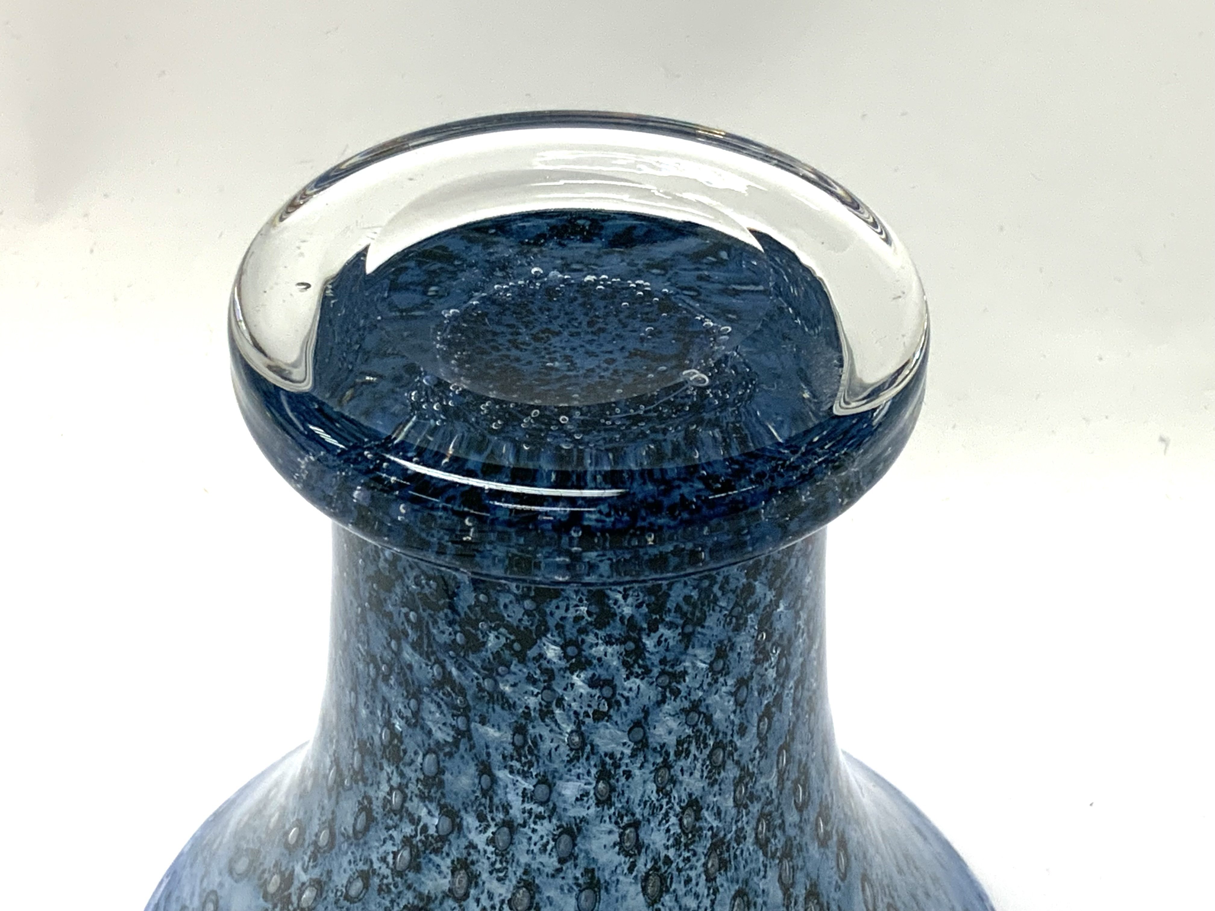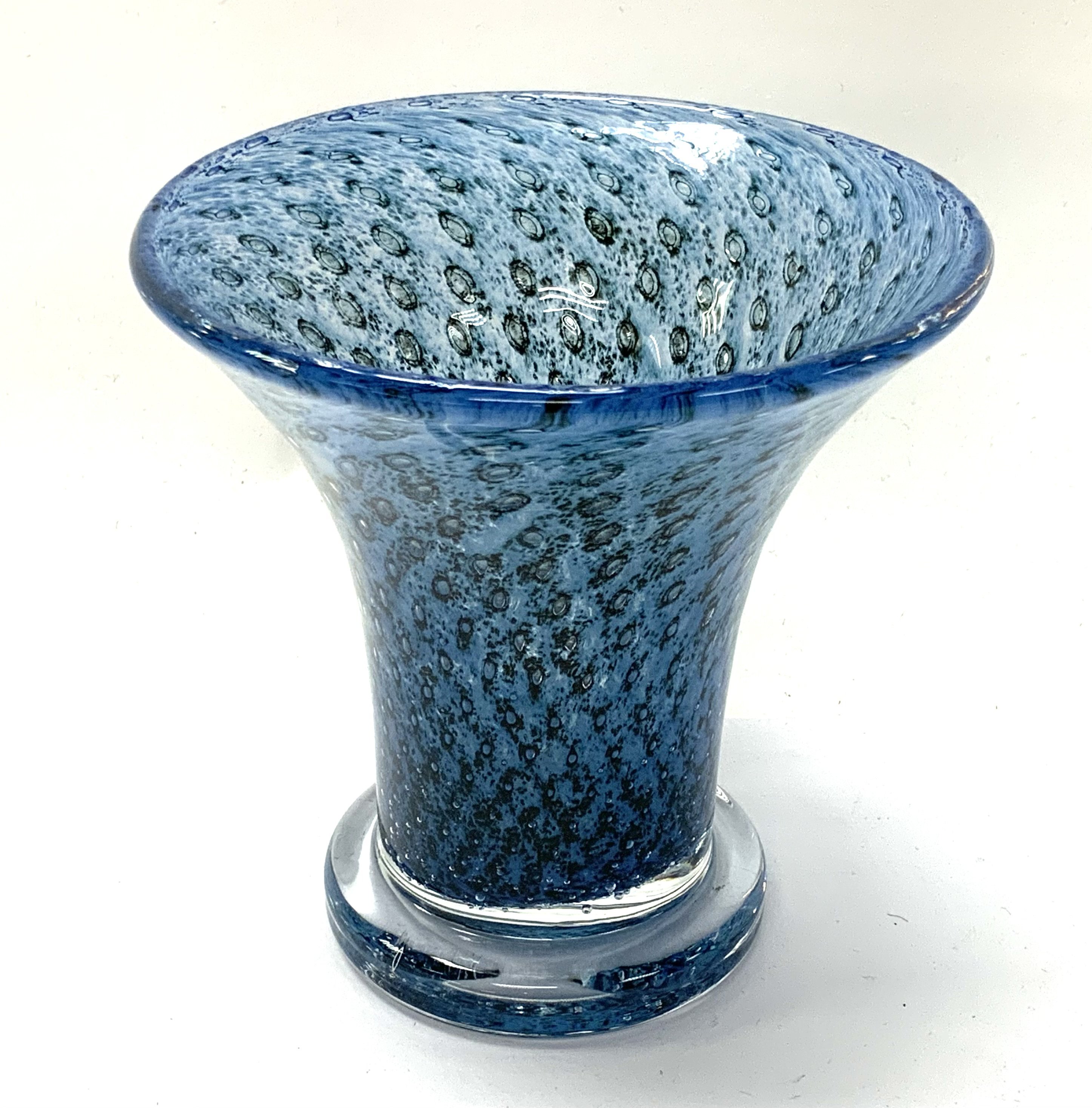A Bertil Valien Kosta Boda blue peacock feather vase, 1975, 10cm. (D)