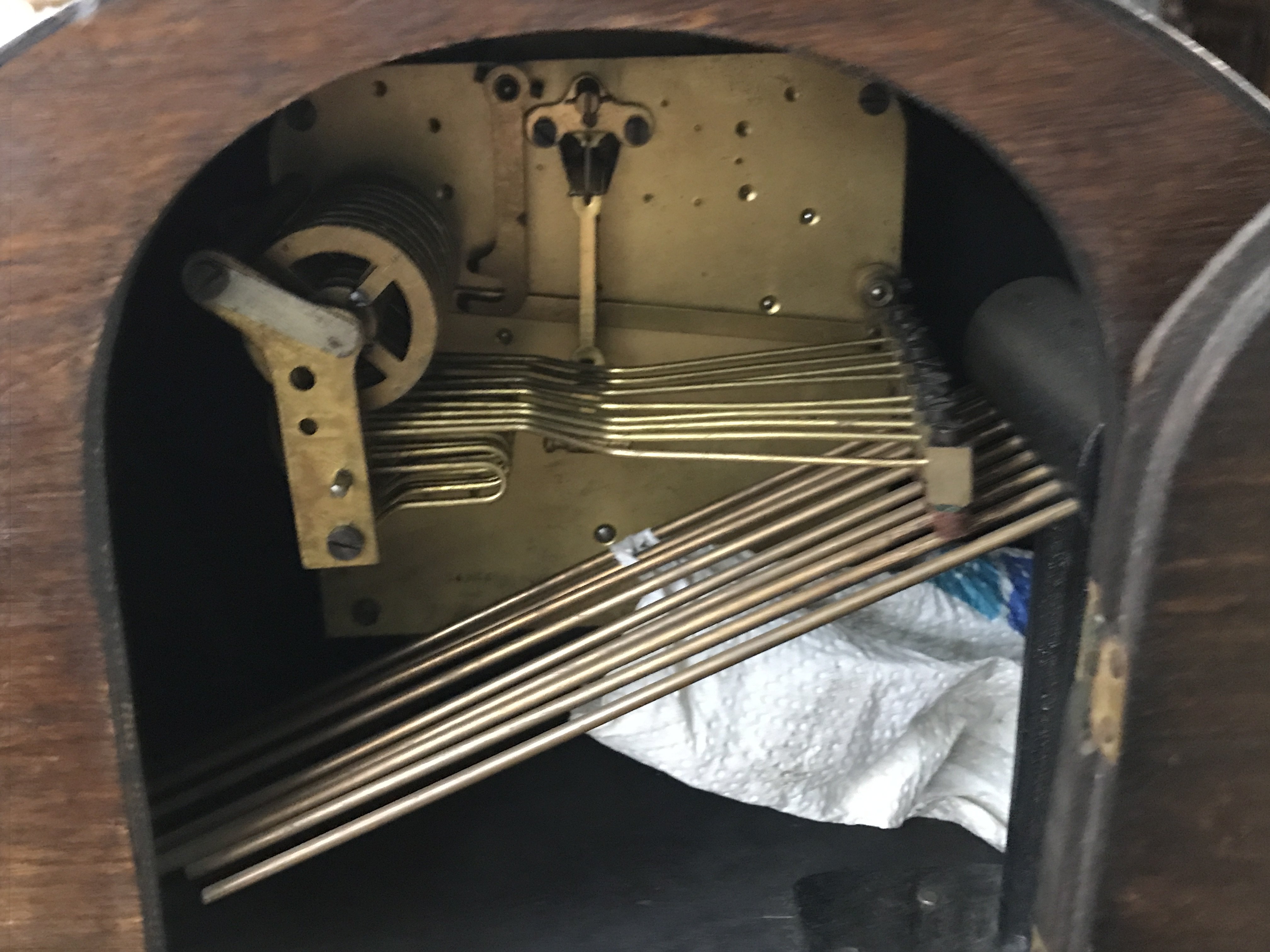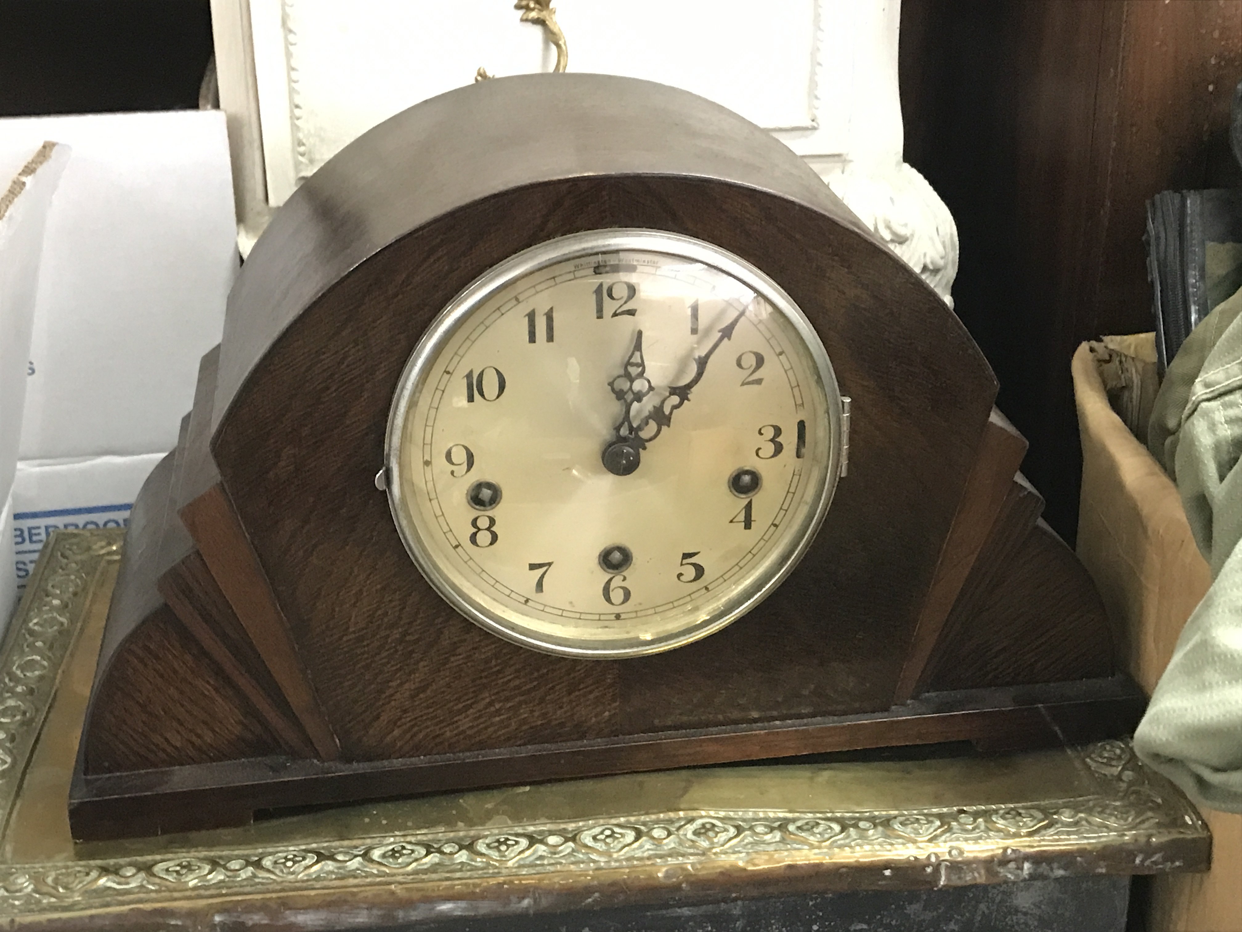 An Oak mantle clock, dimensions 17x40x24cm. This lot cannot be posted. NO RESERVE