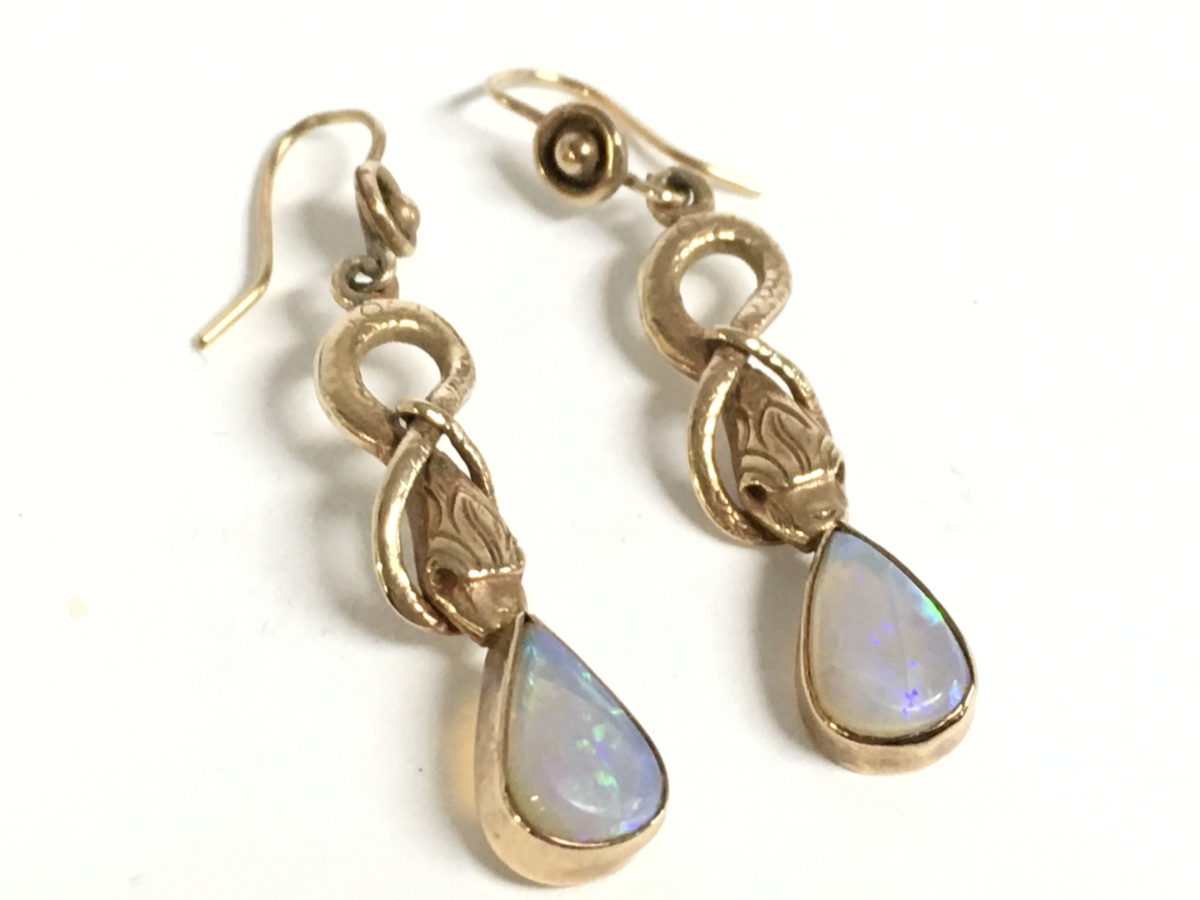 A pair of 9 carat gold opal earrings. Total weight 4.7g Postage category A