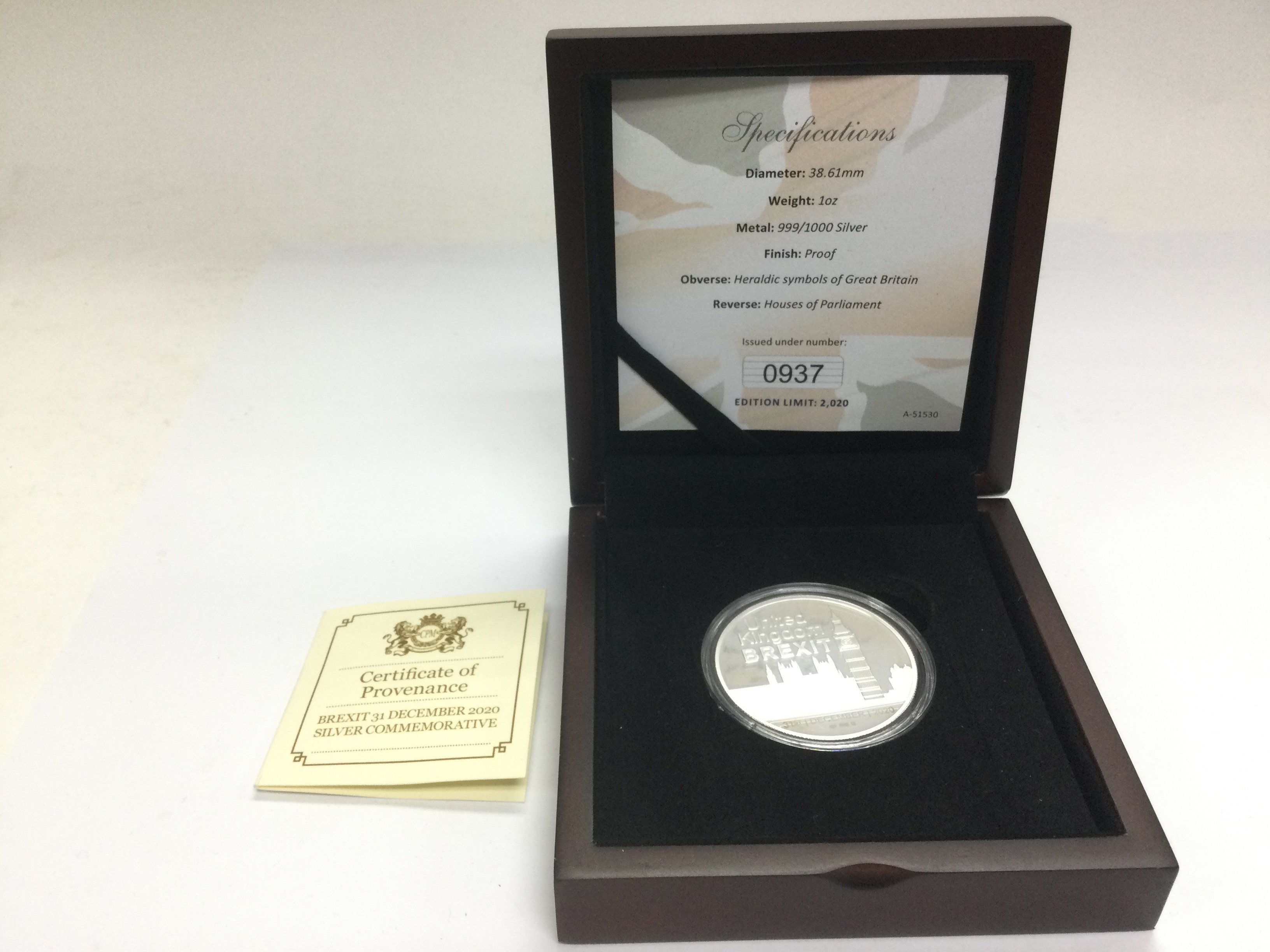 A cased limited edition Brexit transition 1oz silver proof coin, 937/2020. Shipping category A.- NO RESERVE