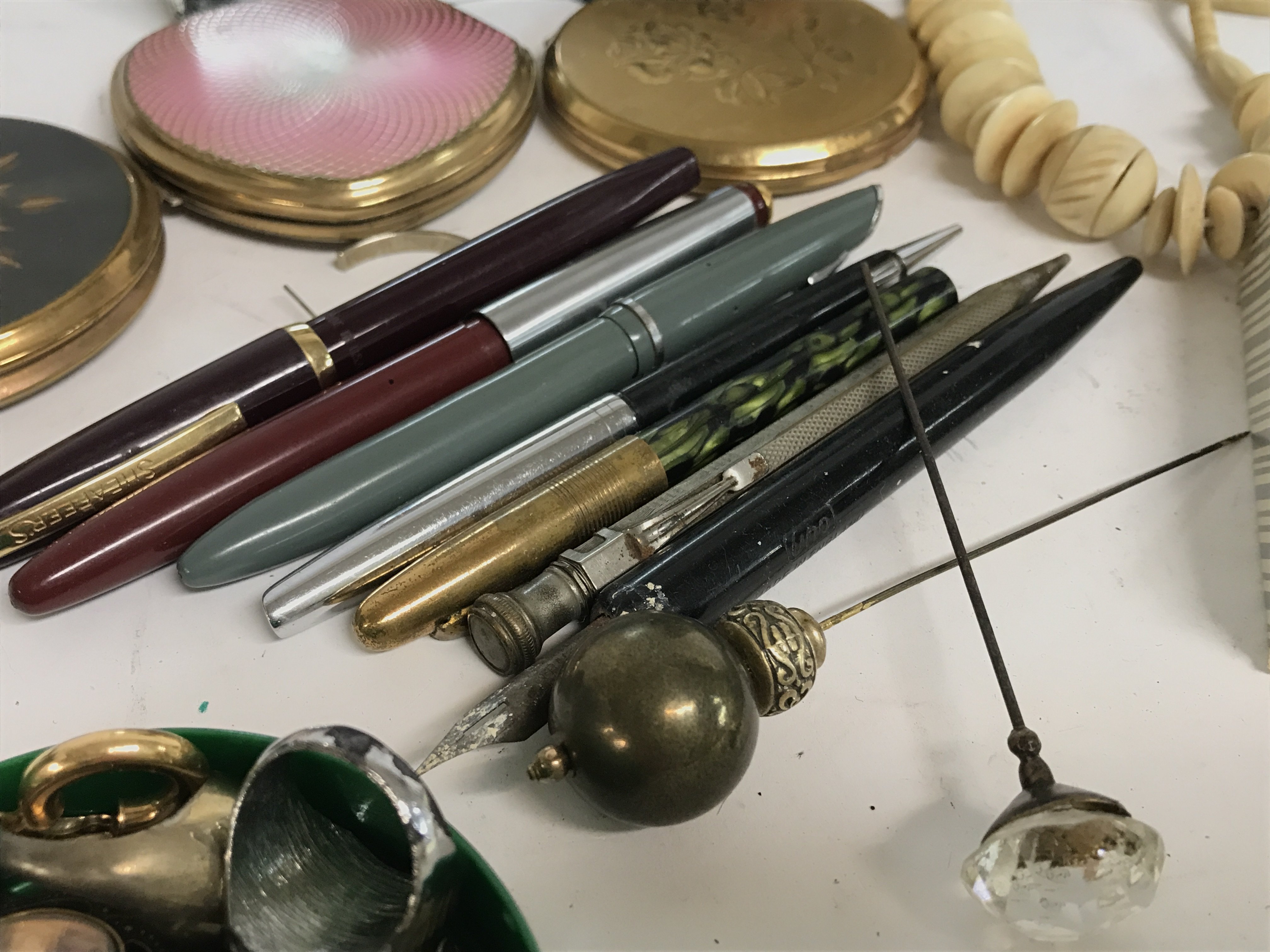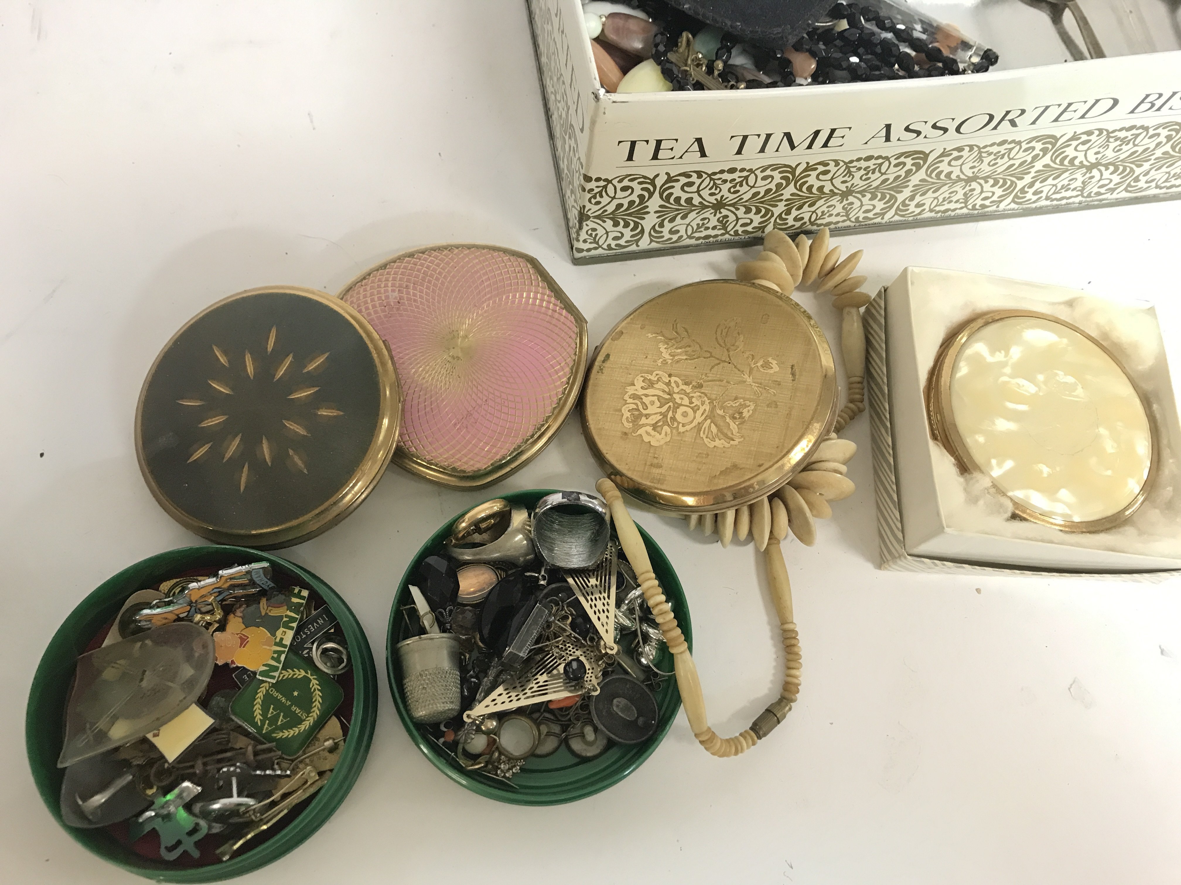 A Collection of costume jewellery including bracelets, compact mirrors, pens, hat pins. Postage category C- NO RESERVE