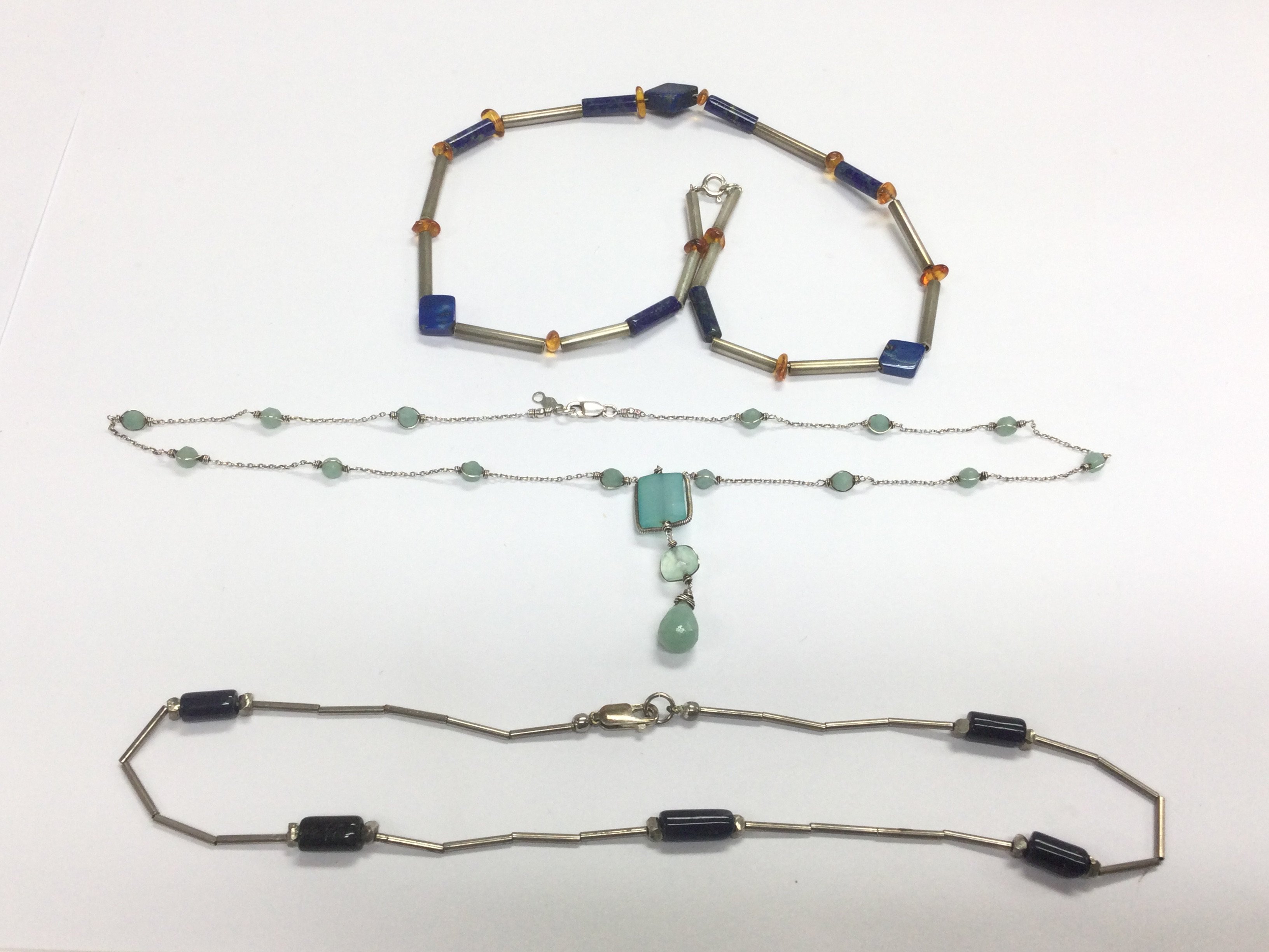 Three silver necklaces set with semi precious stones. Shipping category A.- NO RESERVE