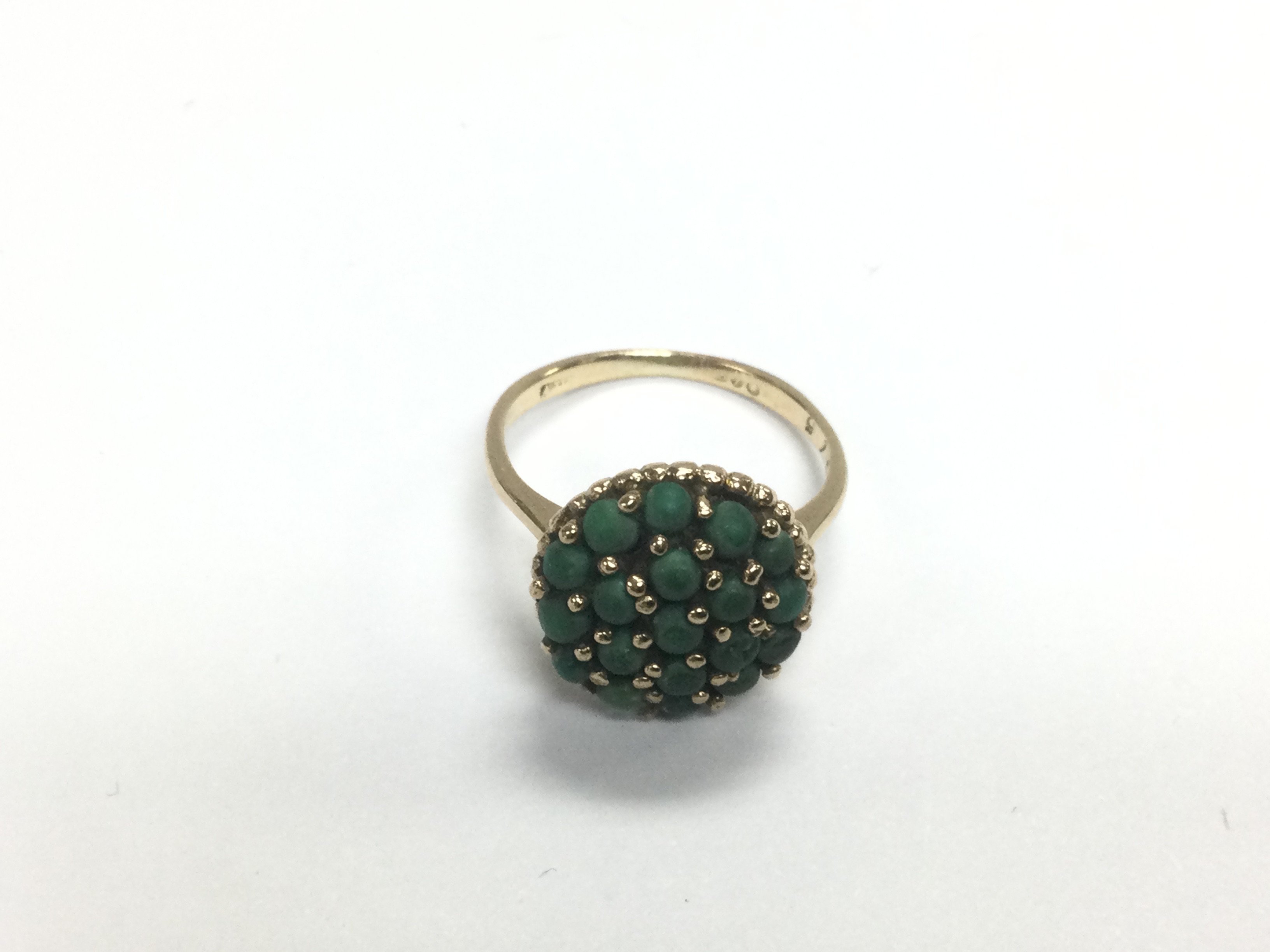 A gold ring set with green stones, approx 3g and approx size J-K. Shipping category A.- NO RESERVE