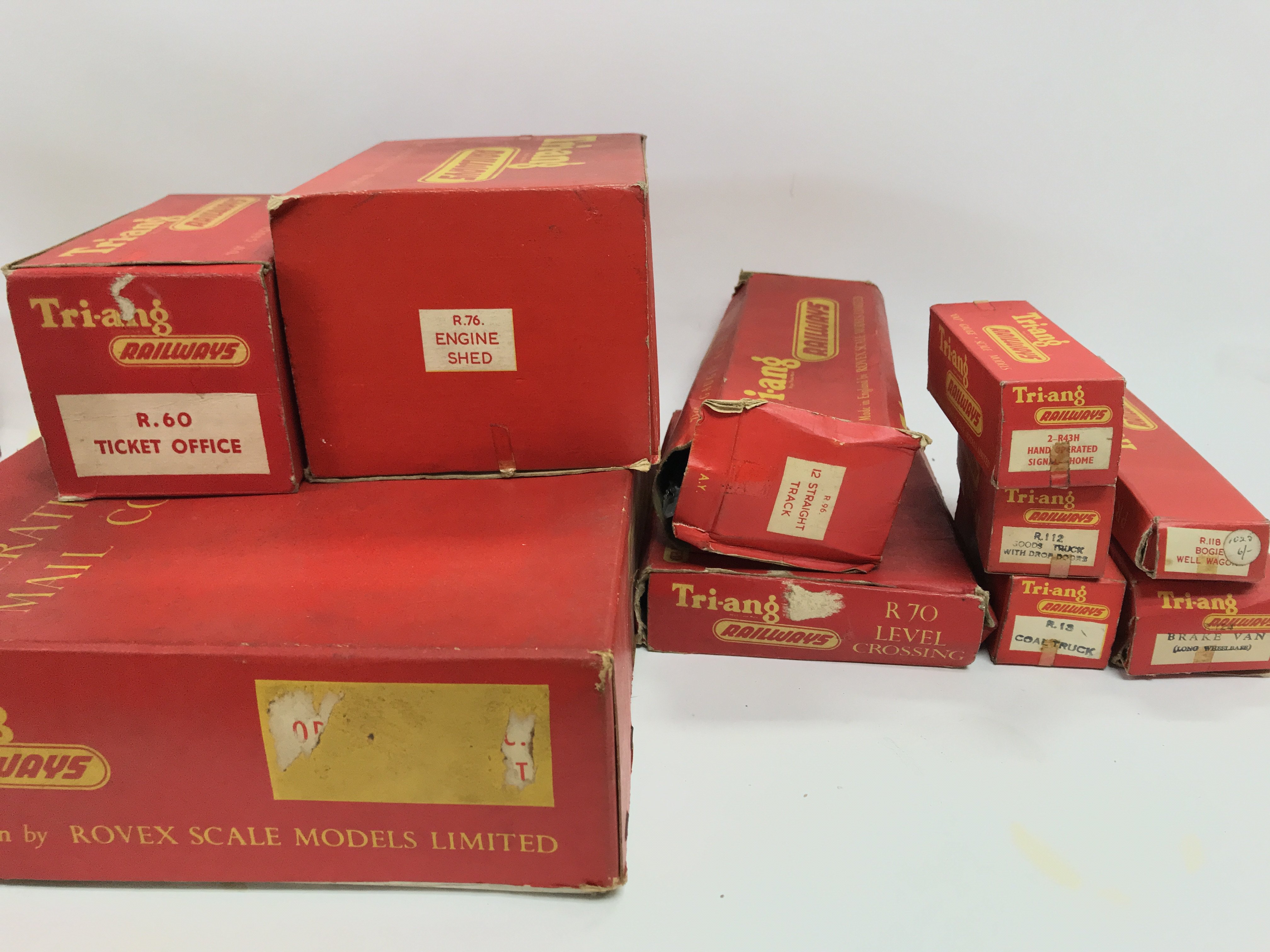 A Case containing boxed 00 Gauge Tri-Ang. Including set RAX.