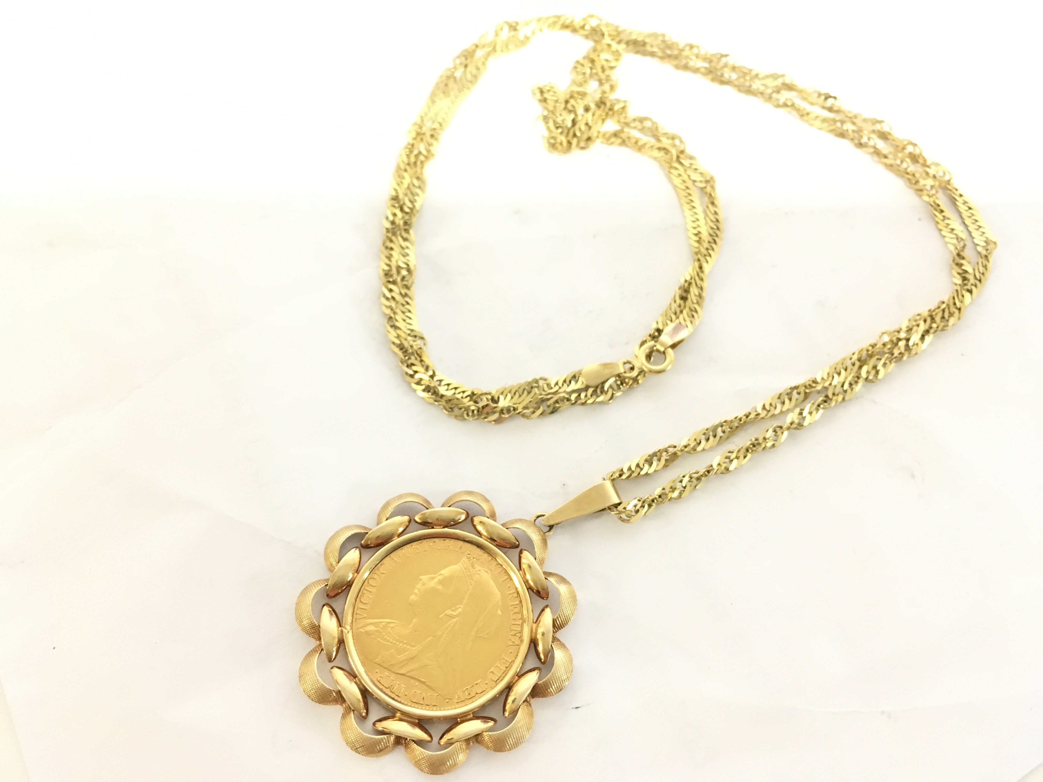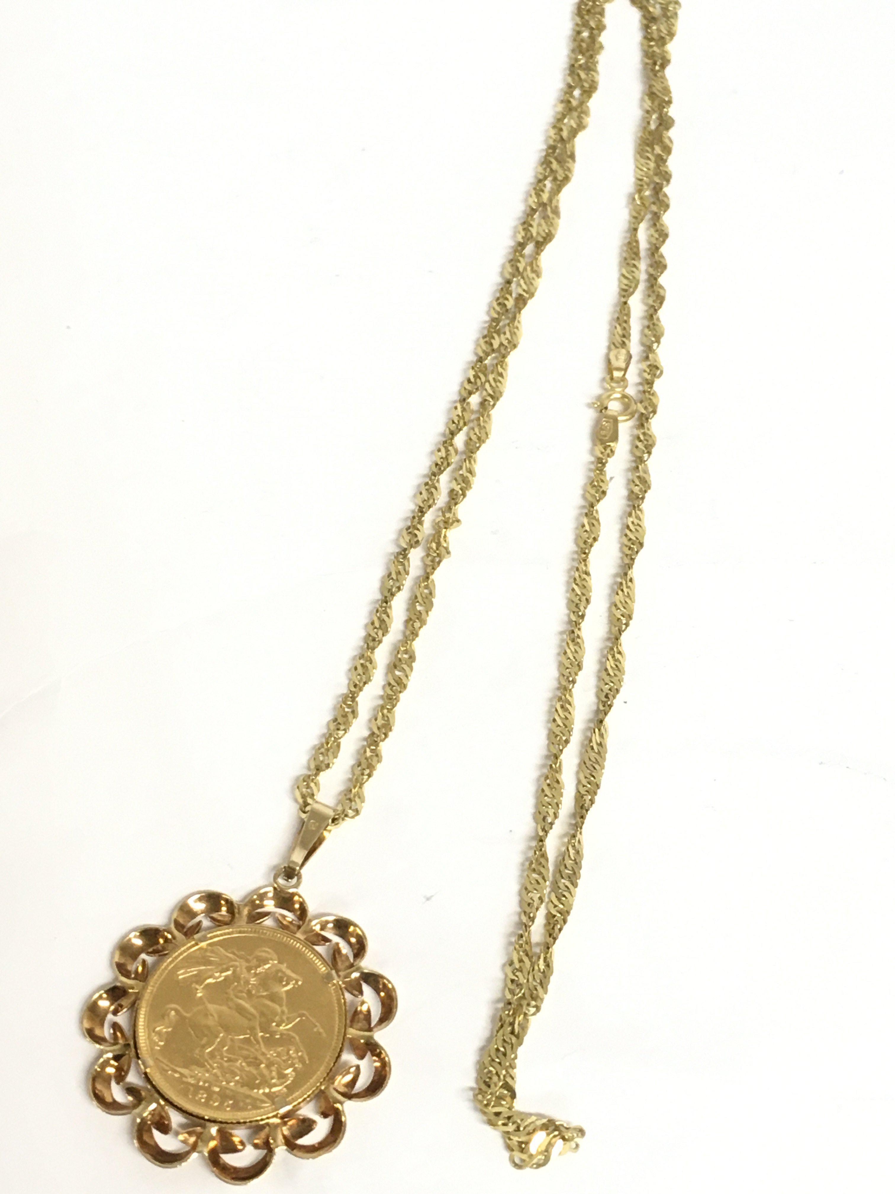 A 1895 gold sovereign with chain. 10.6g Postage category A