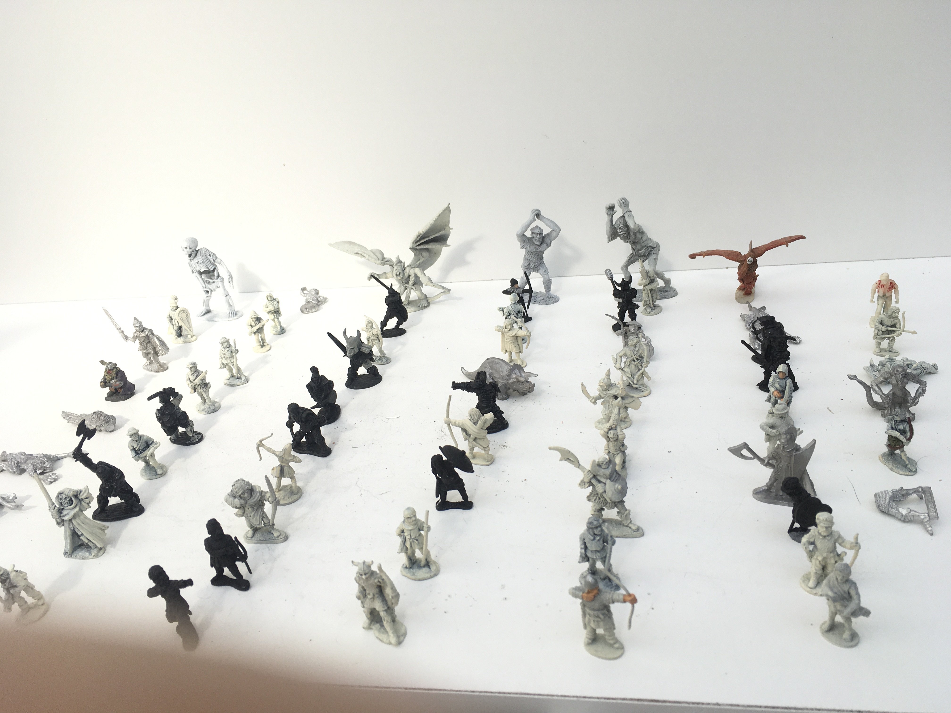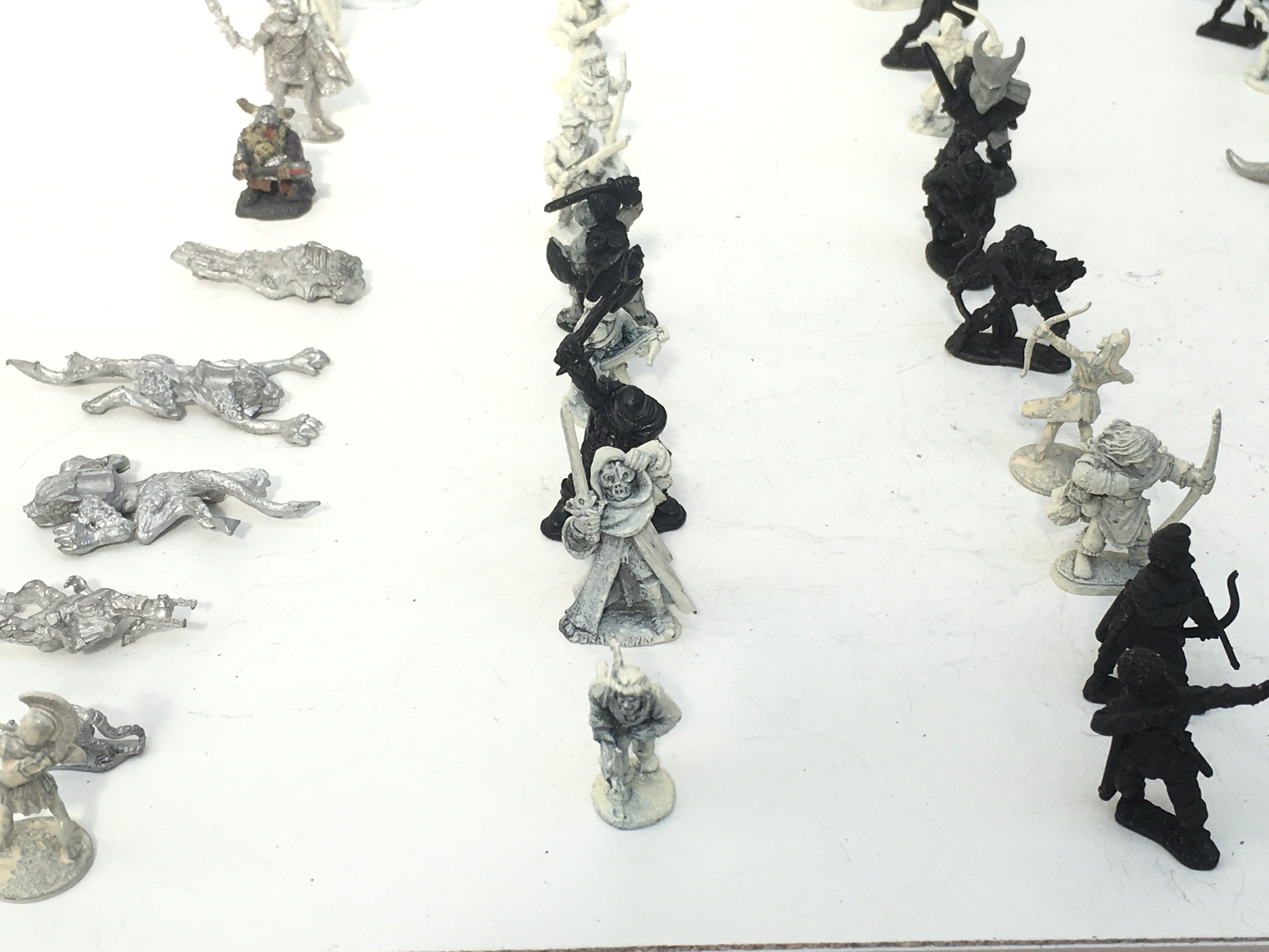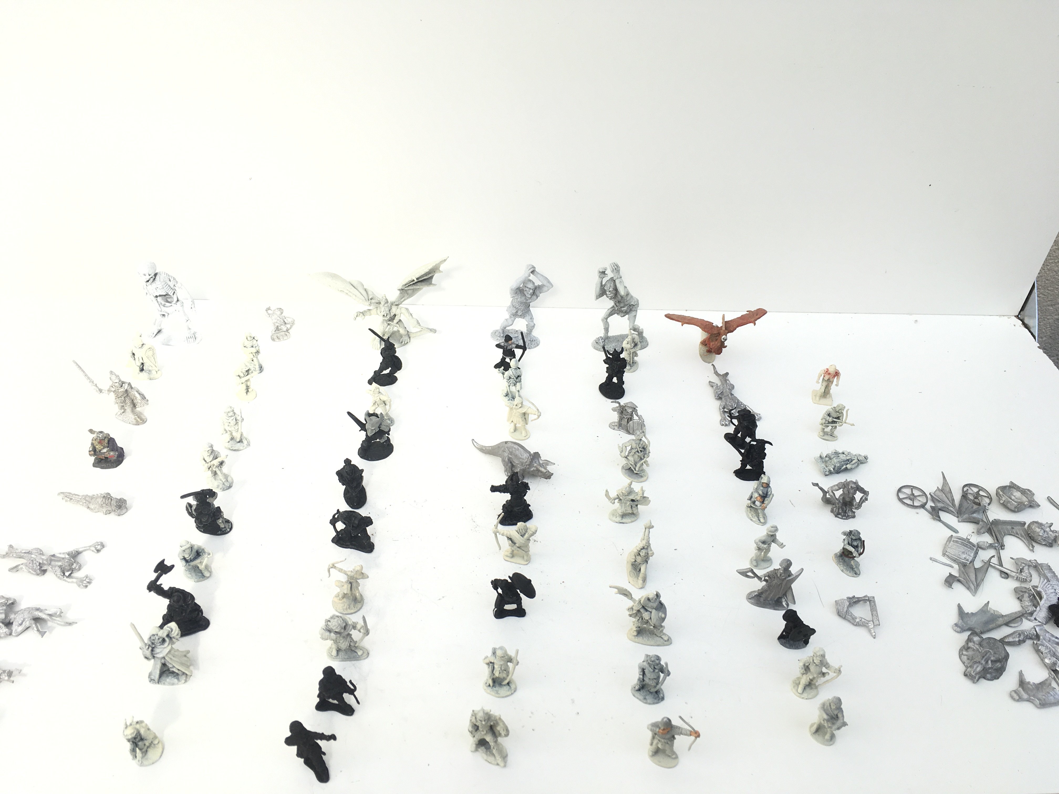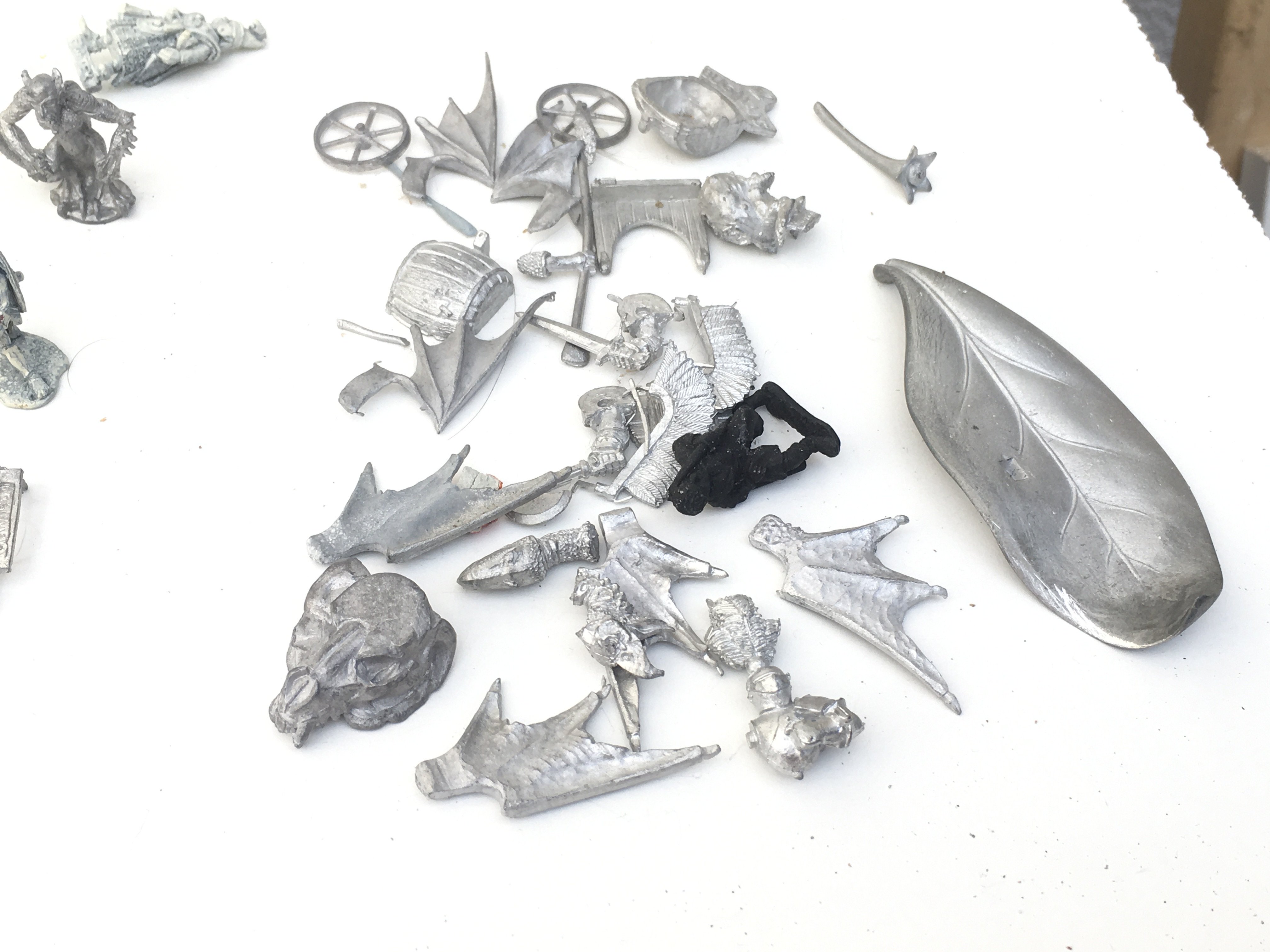 A collection in excess of 60 metal figures and additional accessories from Warhammer . Mostly unpainted.