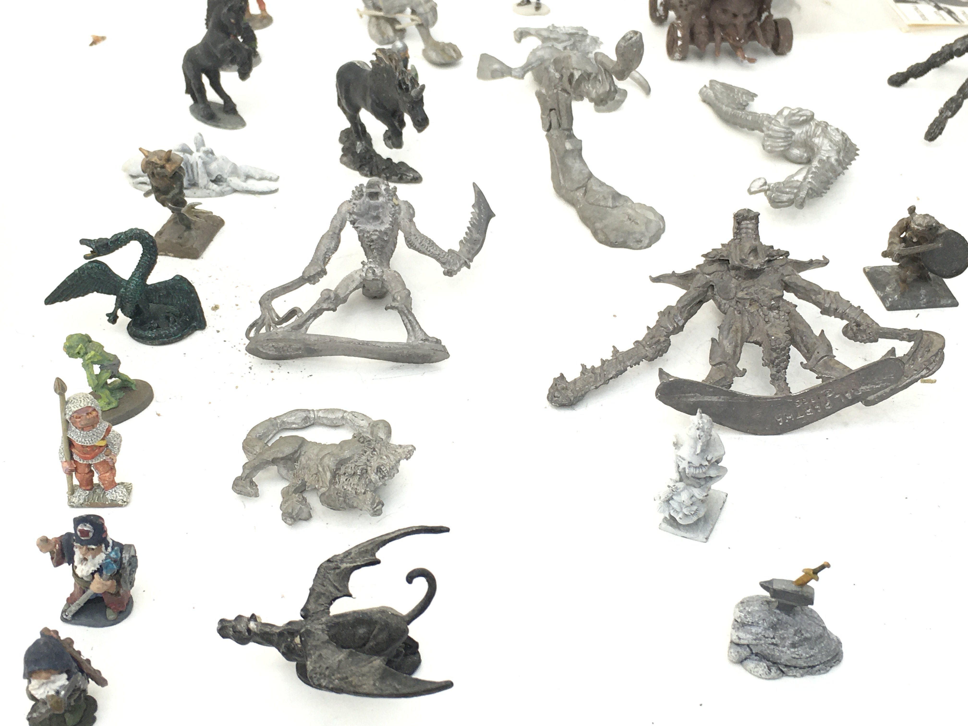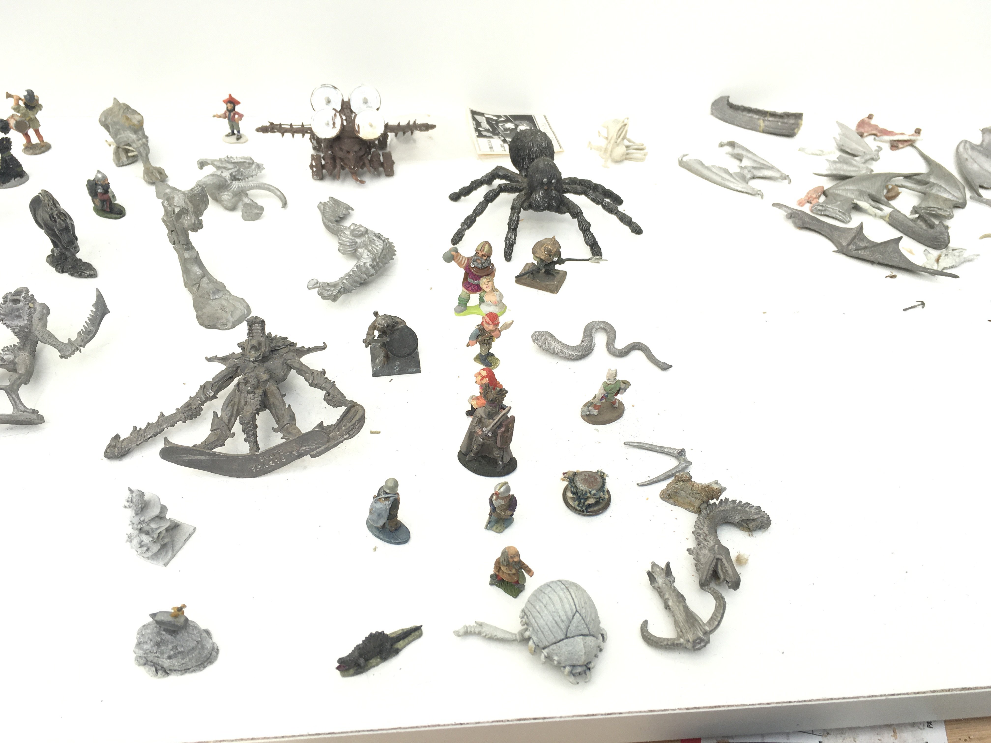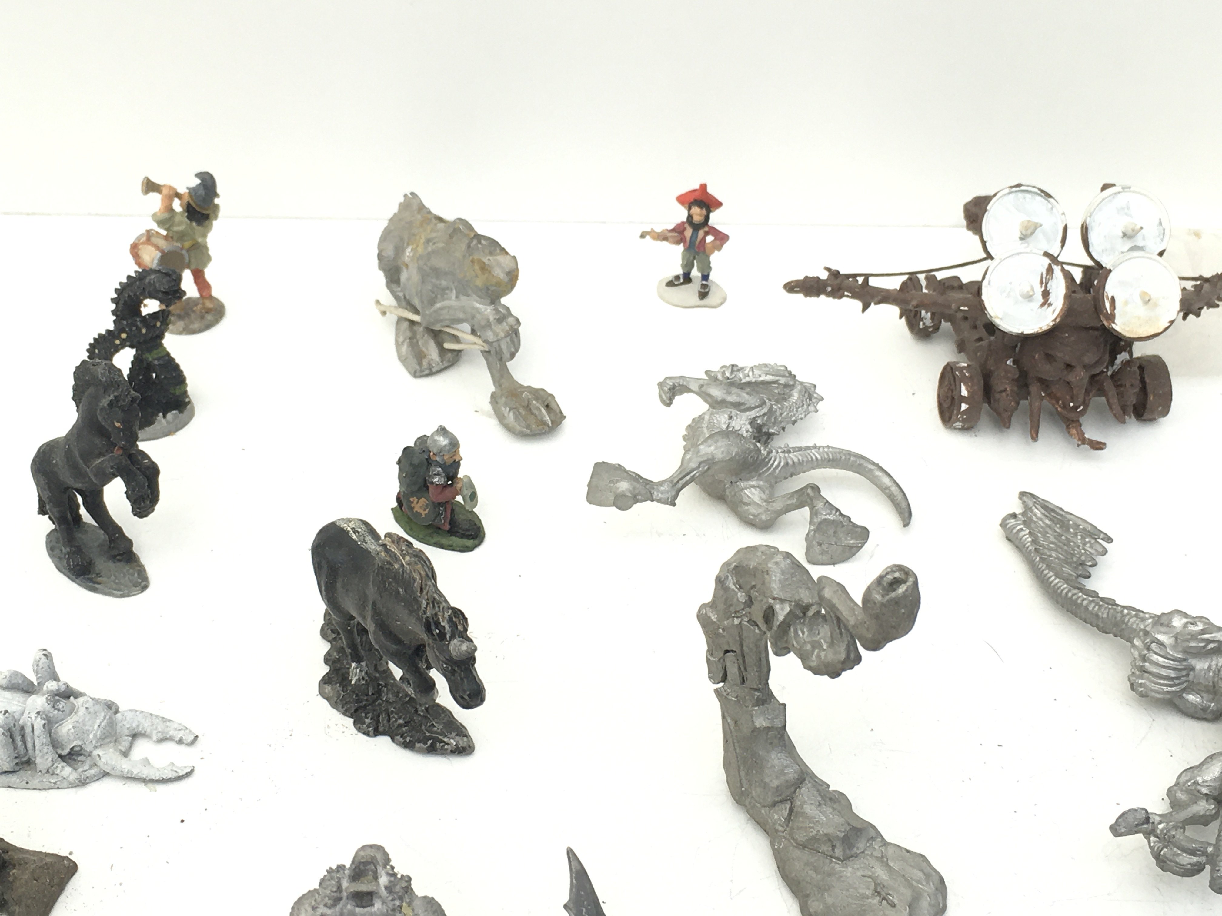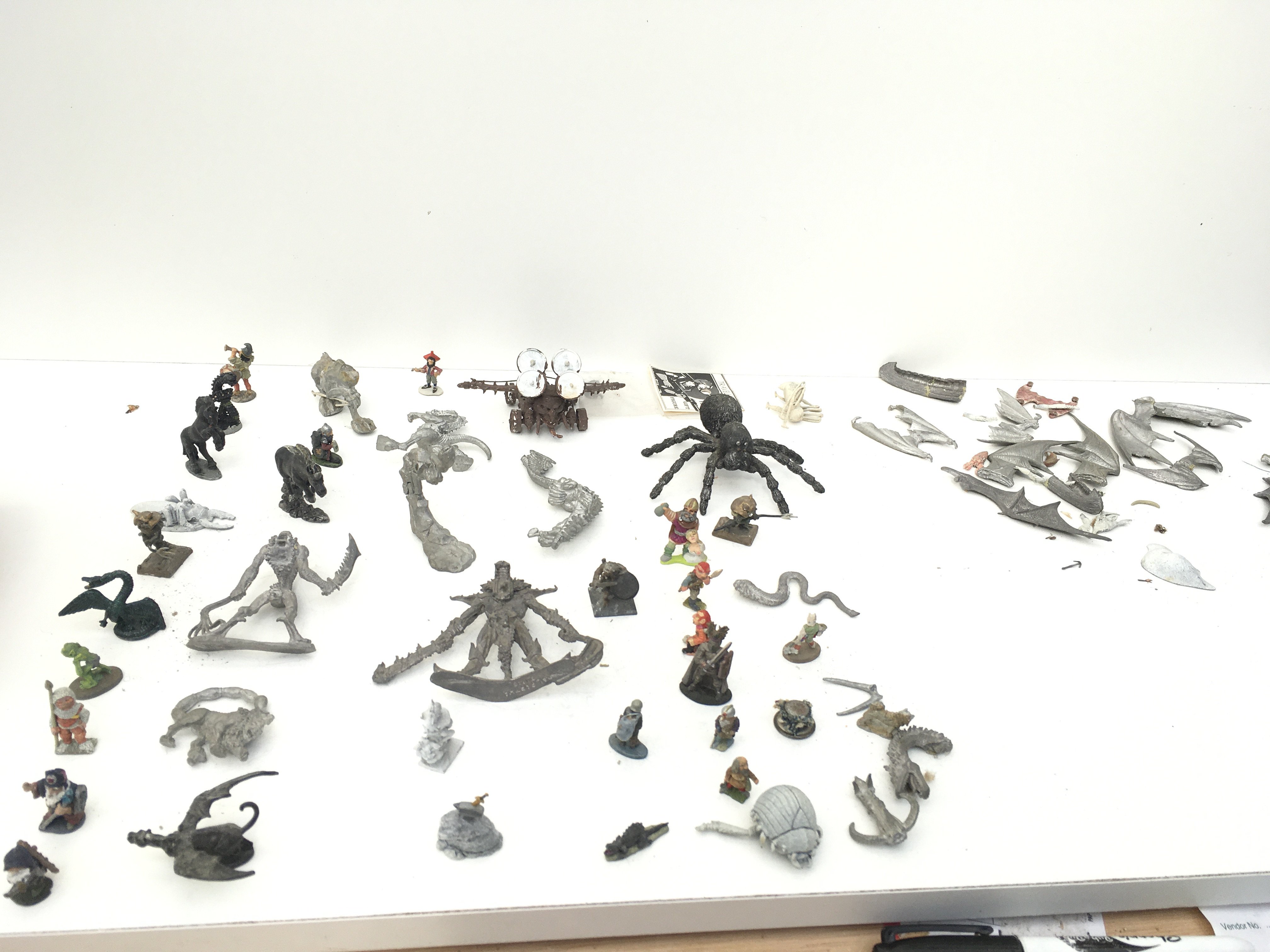 A collection in excess of 50 pieces of metal figures and accessories from Warhammer. Mostly unpainted.