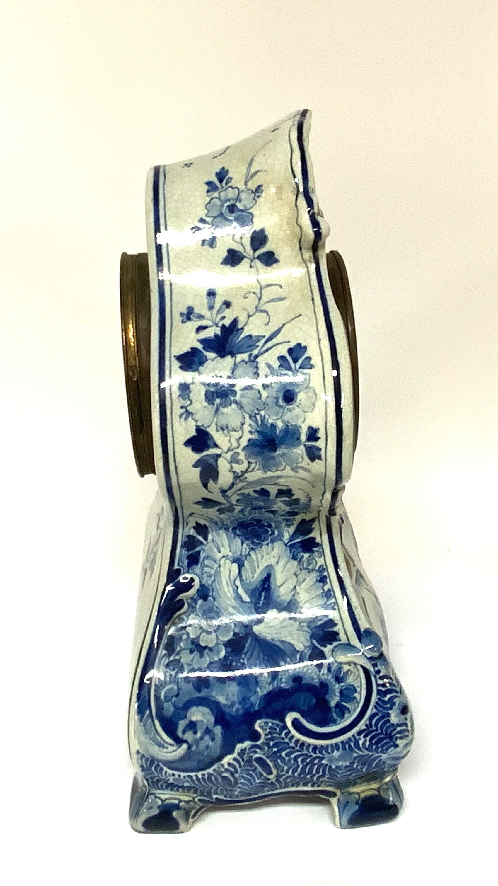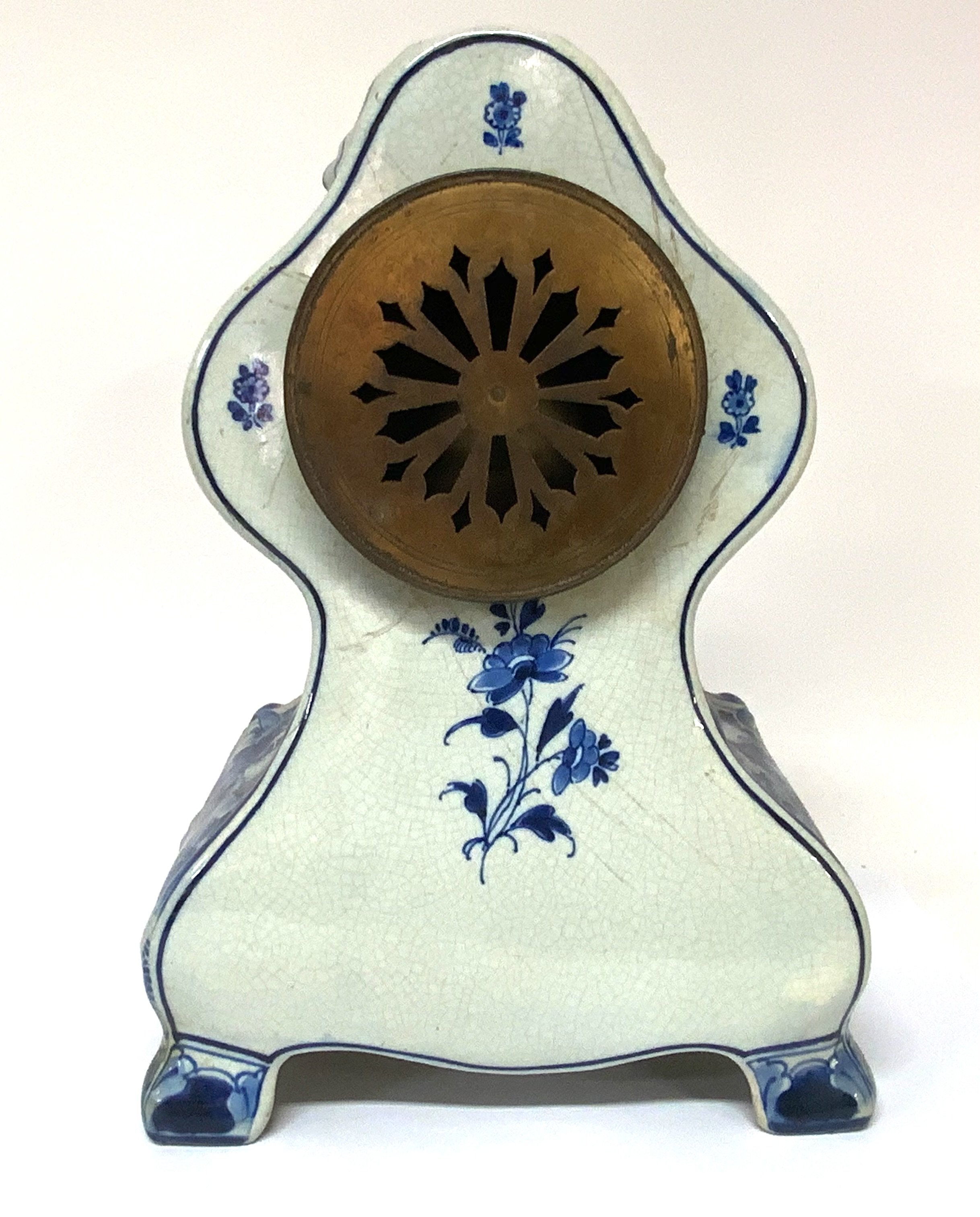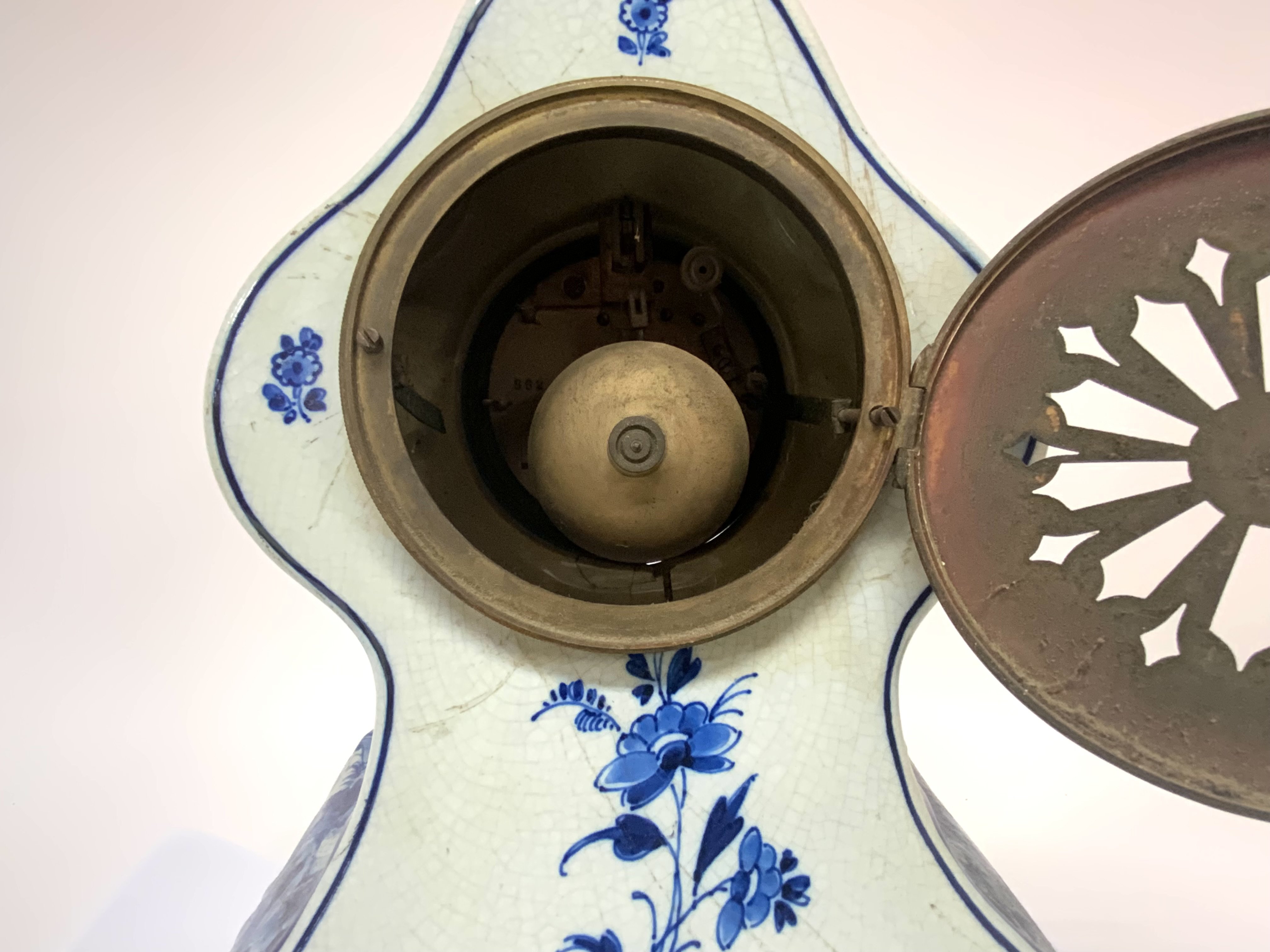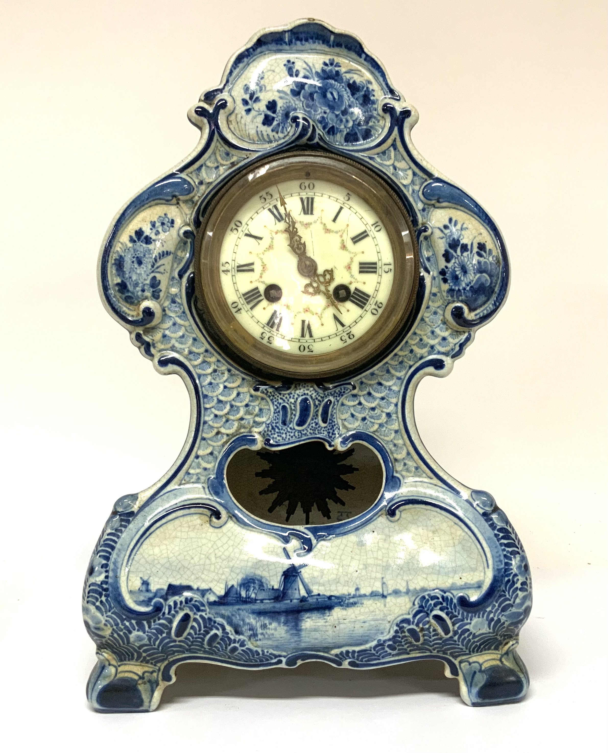 Delft Blue And White Ceramic Mantle Clock. 37cm. (Catagory D.Postage no avaliable).