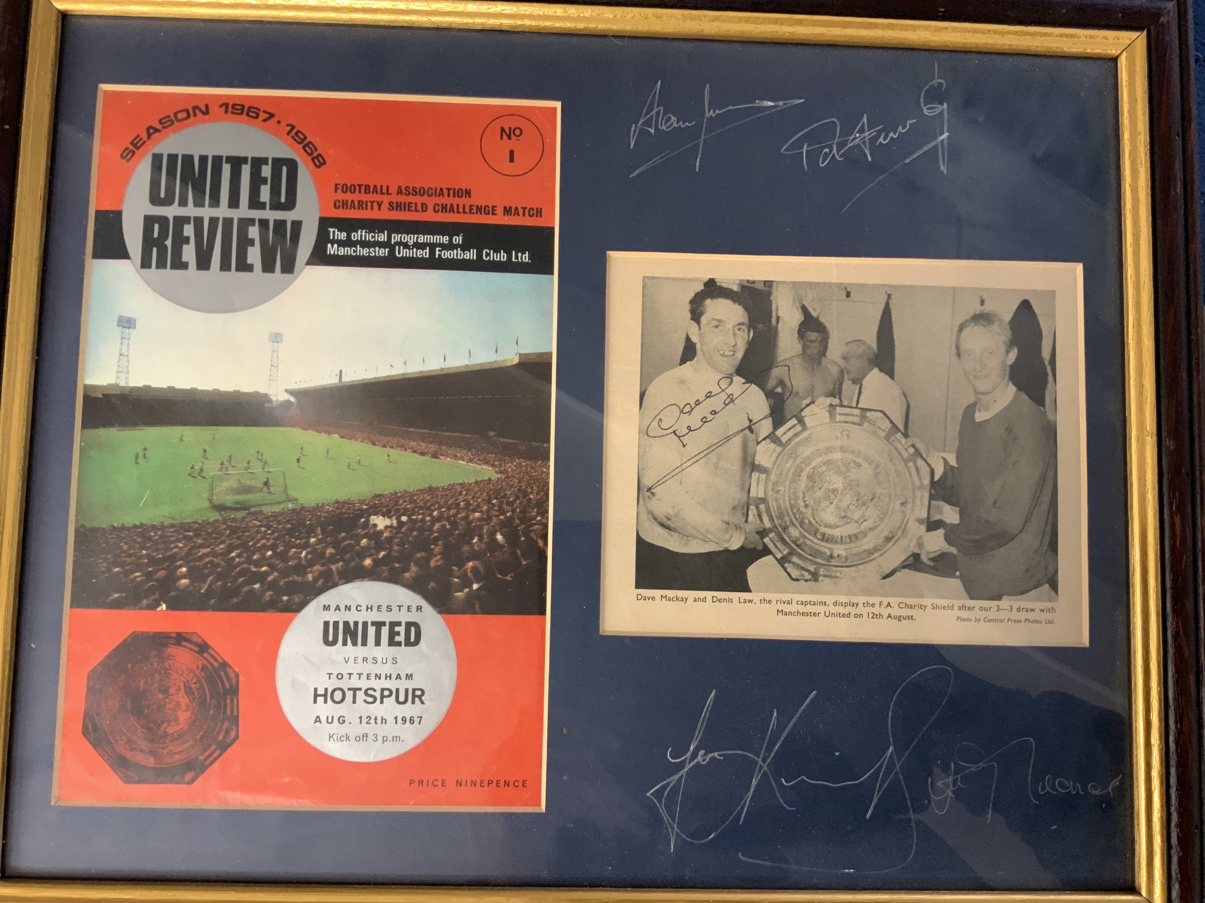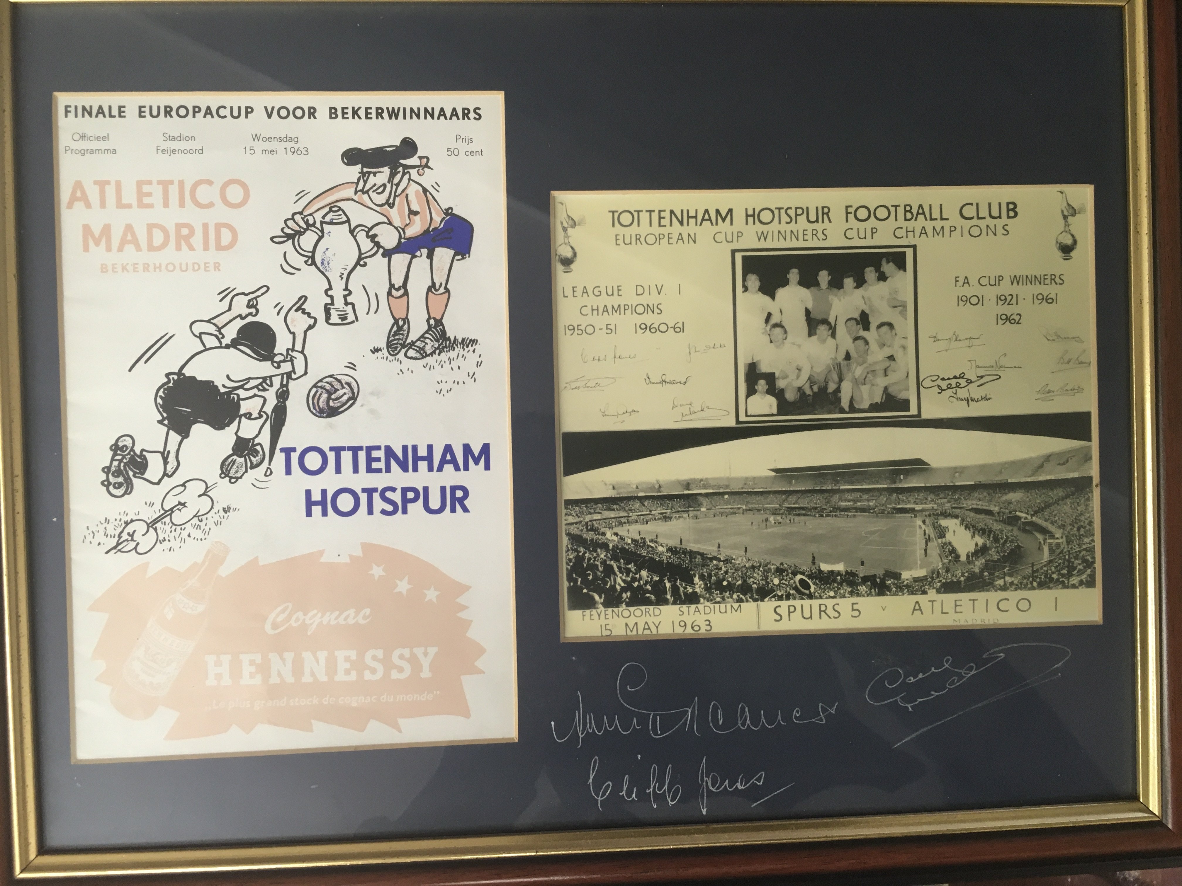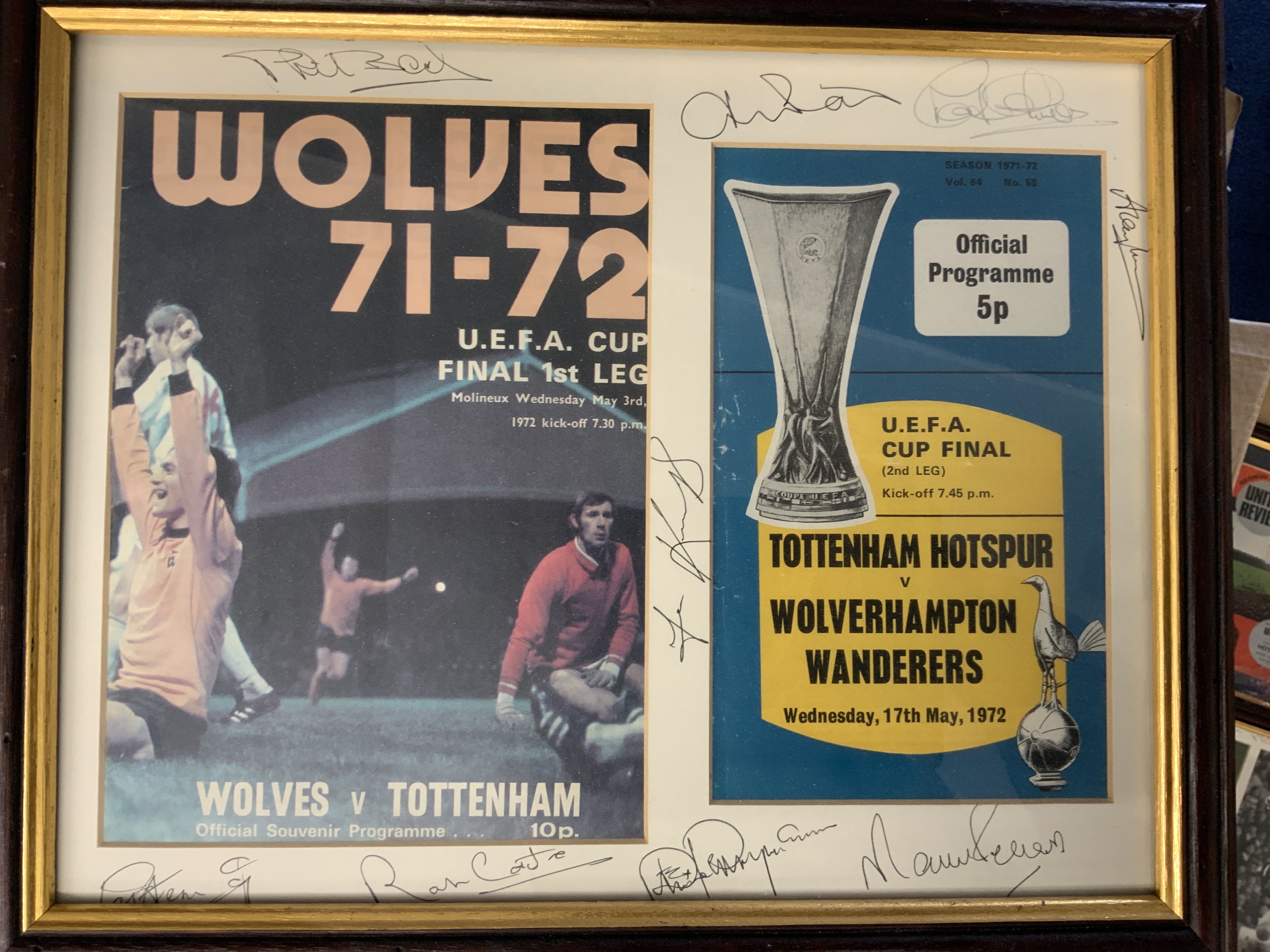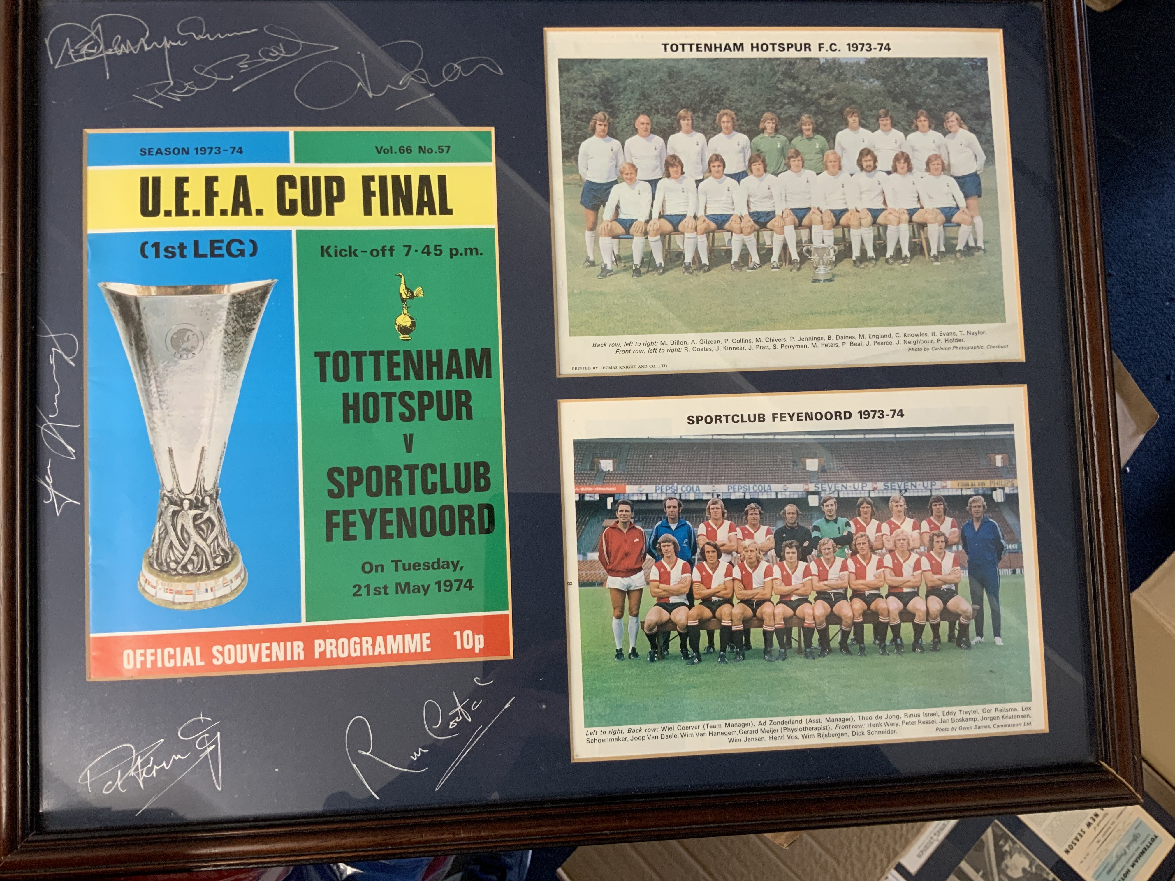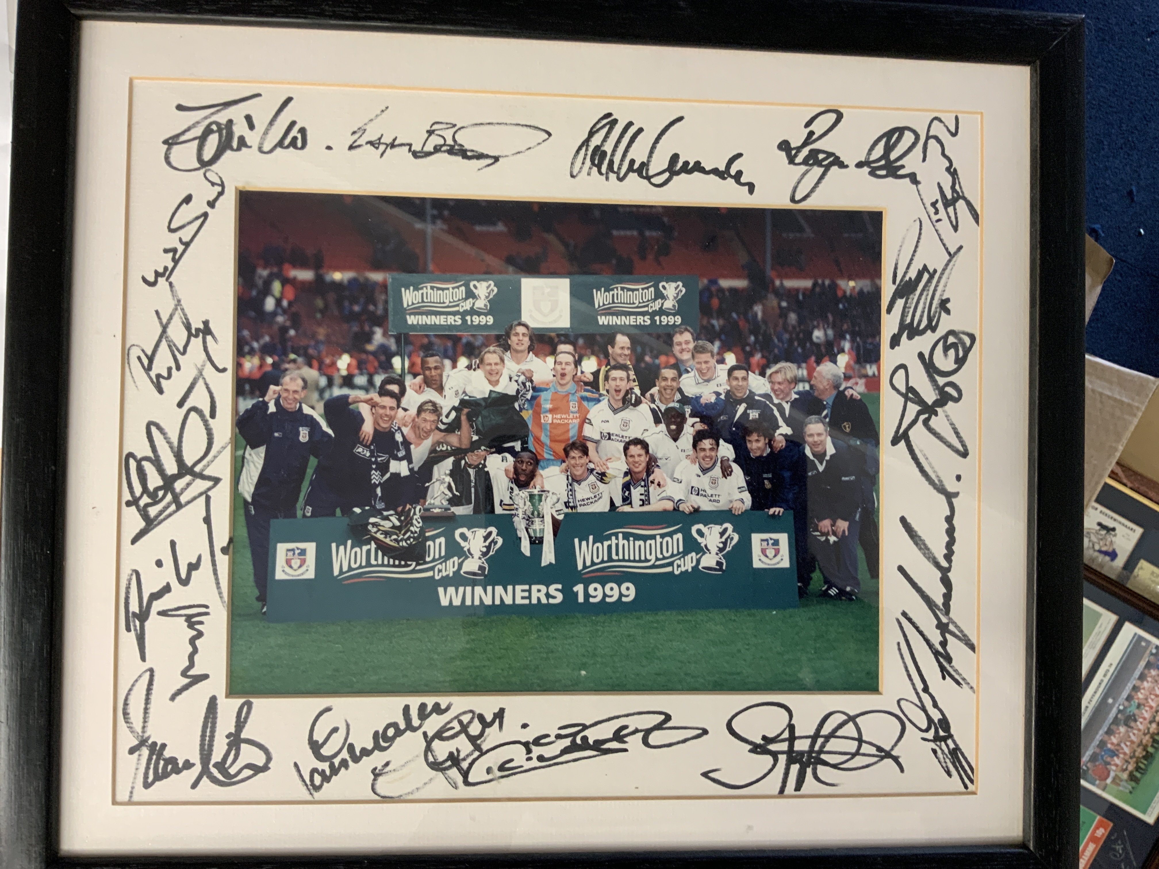 Tottenham Big Match Signed Framed Displays: Just about everything covered in these nice displays of famous moments in their history. 1961 has 9 autographs, 1963 slight fading signed by 3, 1991 FA Cup Final with original programme + ticket, 1974 UEFA Cup final x 5, Two different 1999 Worthington Cup one fully signed, 1967 Charity Shield x 4, 1971 League Cup Final x 5, 1967 FA Cup x 7, 1973 League Cup Final x 8, 1972 UEFA Cup final x 9. Other displays with original ticket and programme include 1991 Charity Shield, 2002 Worthington Cup and 1991 FA Cup Final. Nice lot.