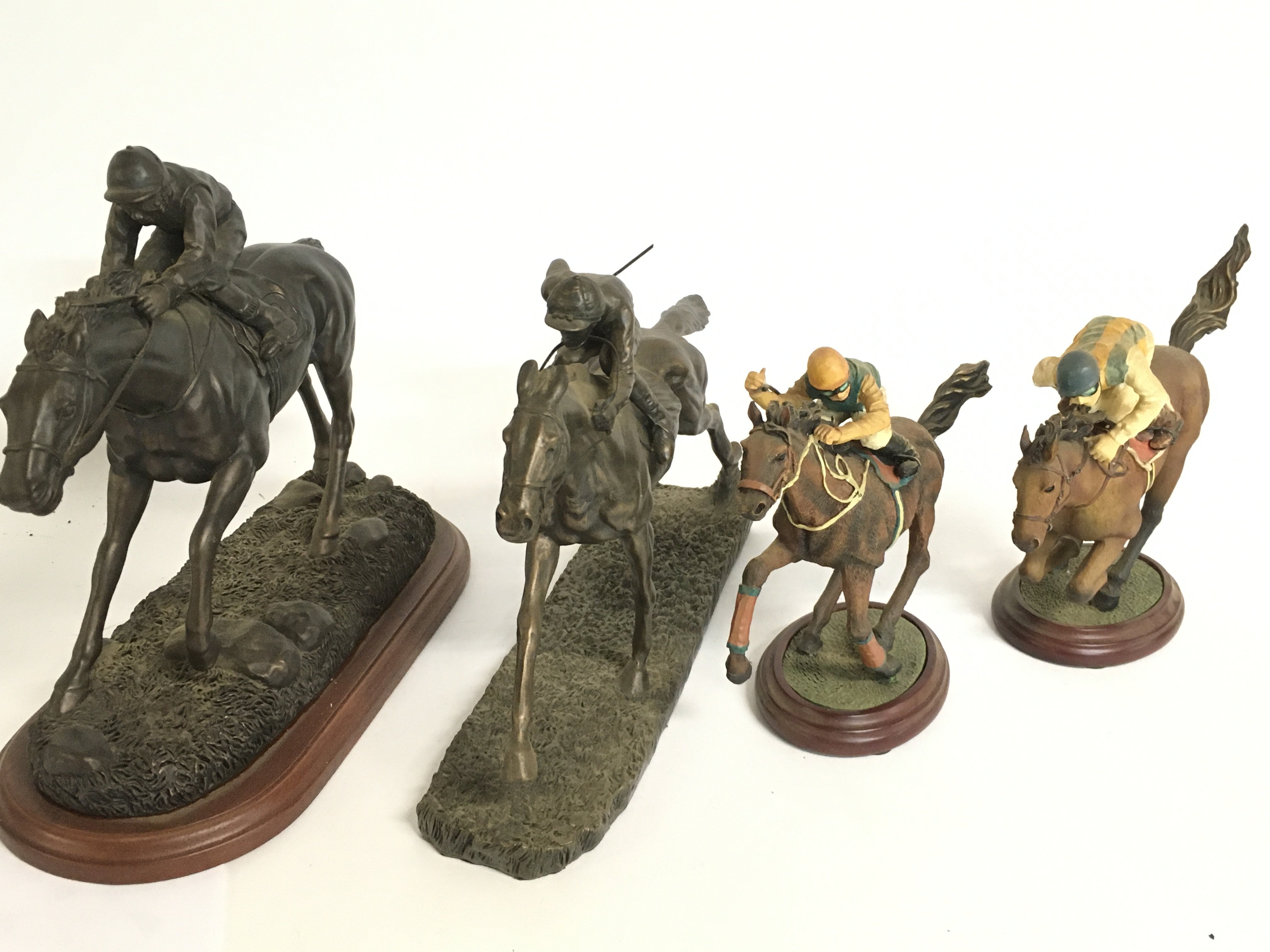 Race horse resin and emulated bronze figures. This lot cannot be posted