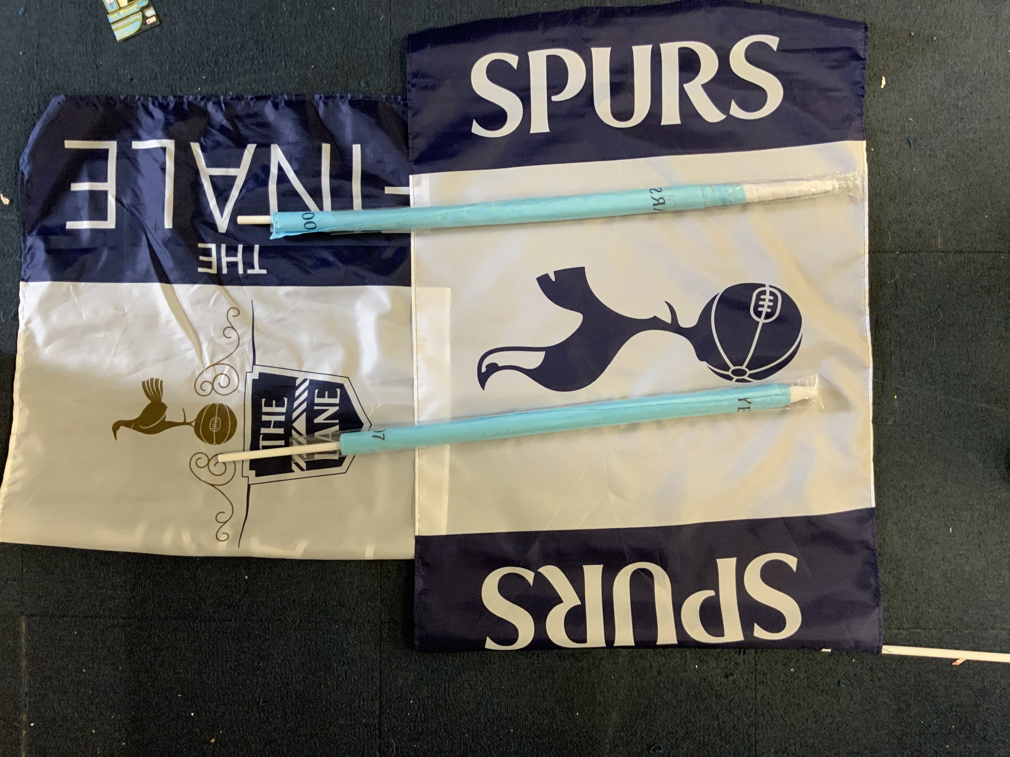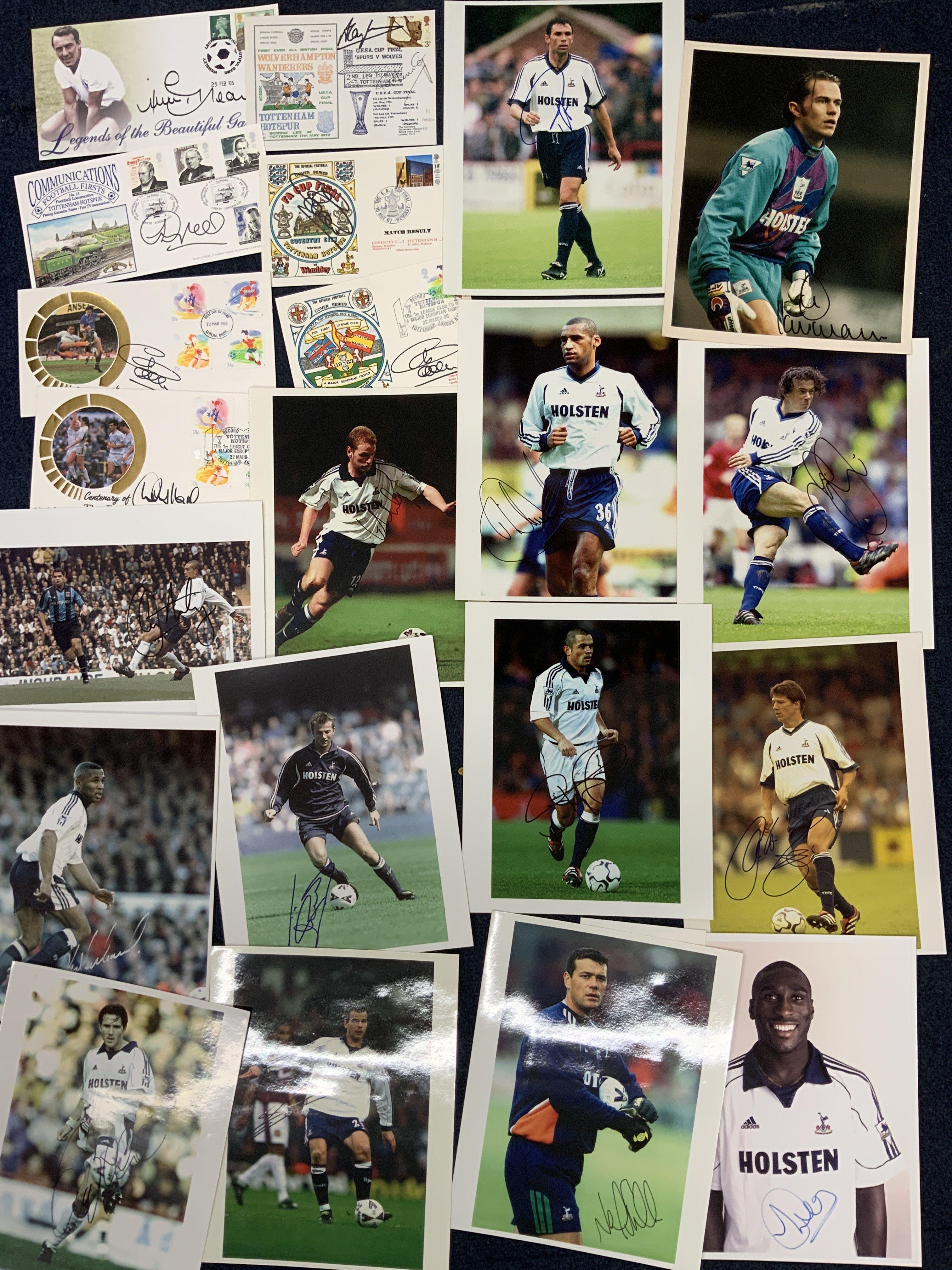 Tottenham Football Memorabilia Box: Includes flags, Nice One Cyril record, share prospectuses, programmes, tickets, tie, scarf, shop catalogues, signed photos, signed first day covers, last ever Roy of the Rovers and more.