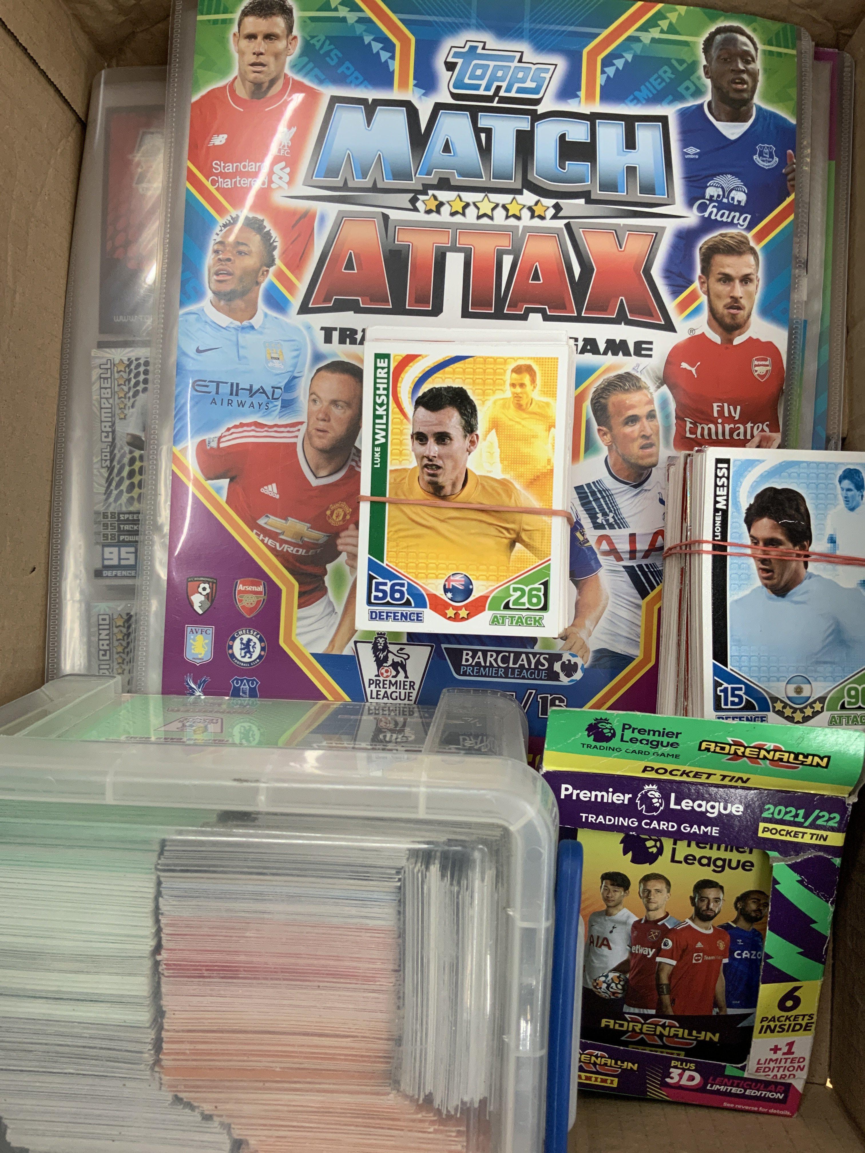 Match Attax Football Cards: Almost 1000 cards and a few albums in a box with instructions to sell.