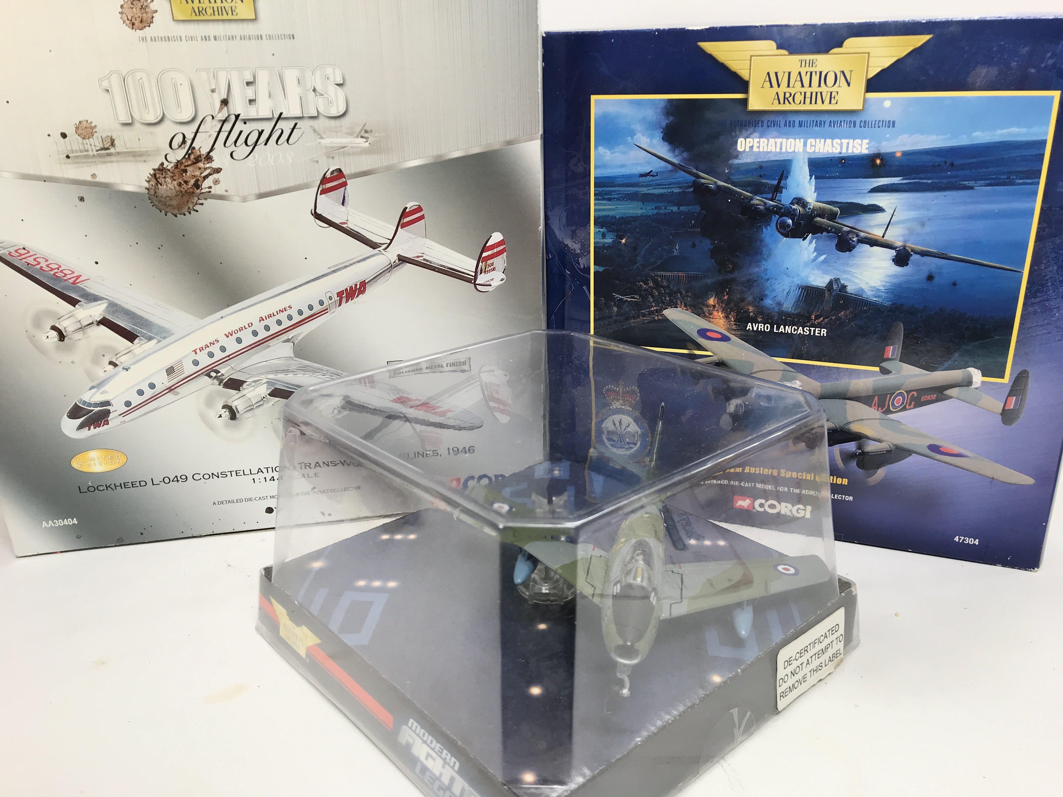 3 x Boxed Corgi Aviation Archive Models. A Avro Lancaster #47304. A Canadair CL-13A Sabre #AA3805. And a Lockheed L-049 #AA30404