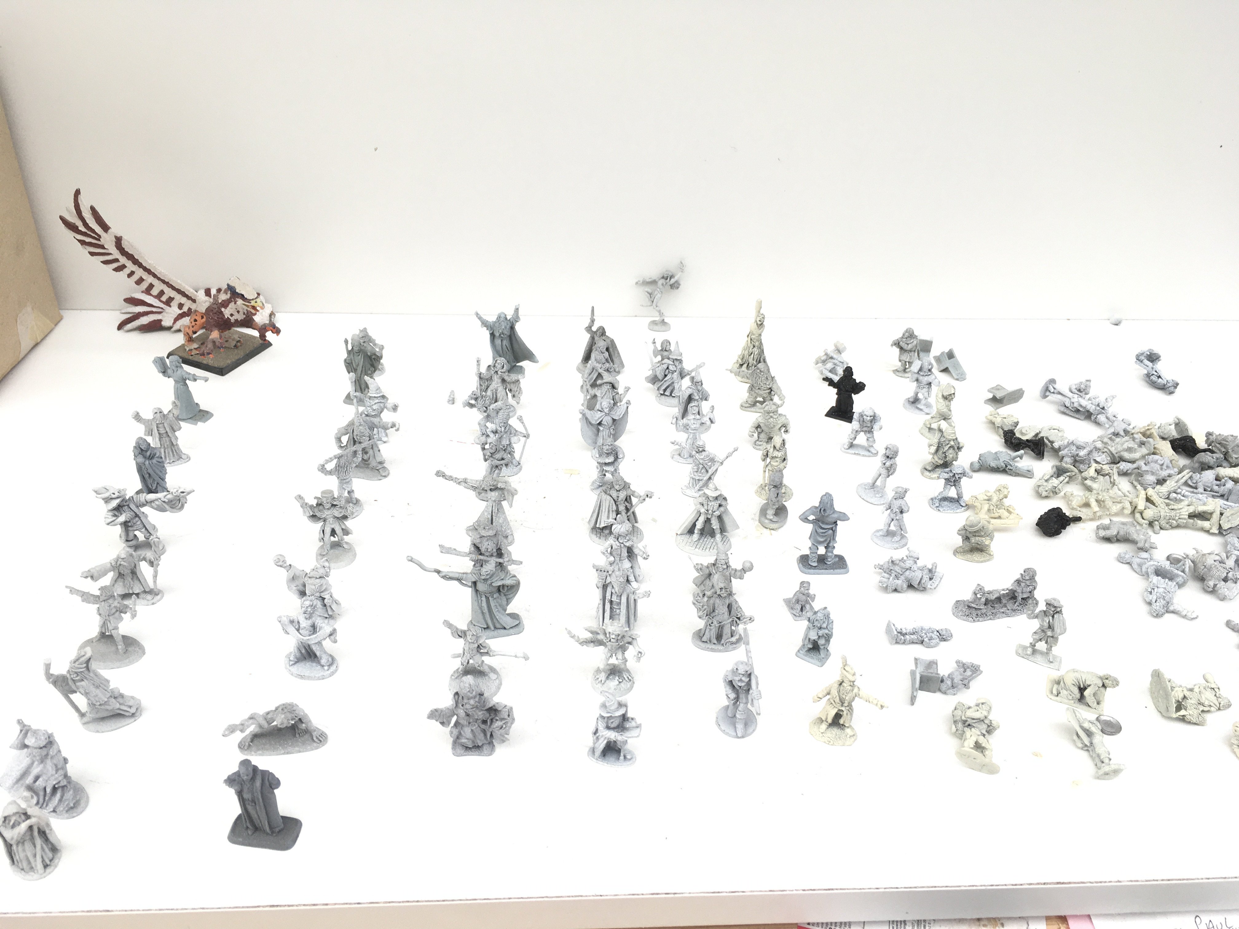 A collection in excess of 100 metal figures mainly Warhammer and unpainted.