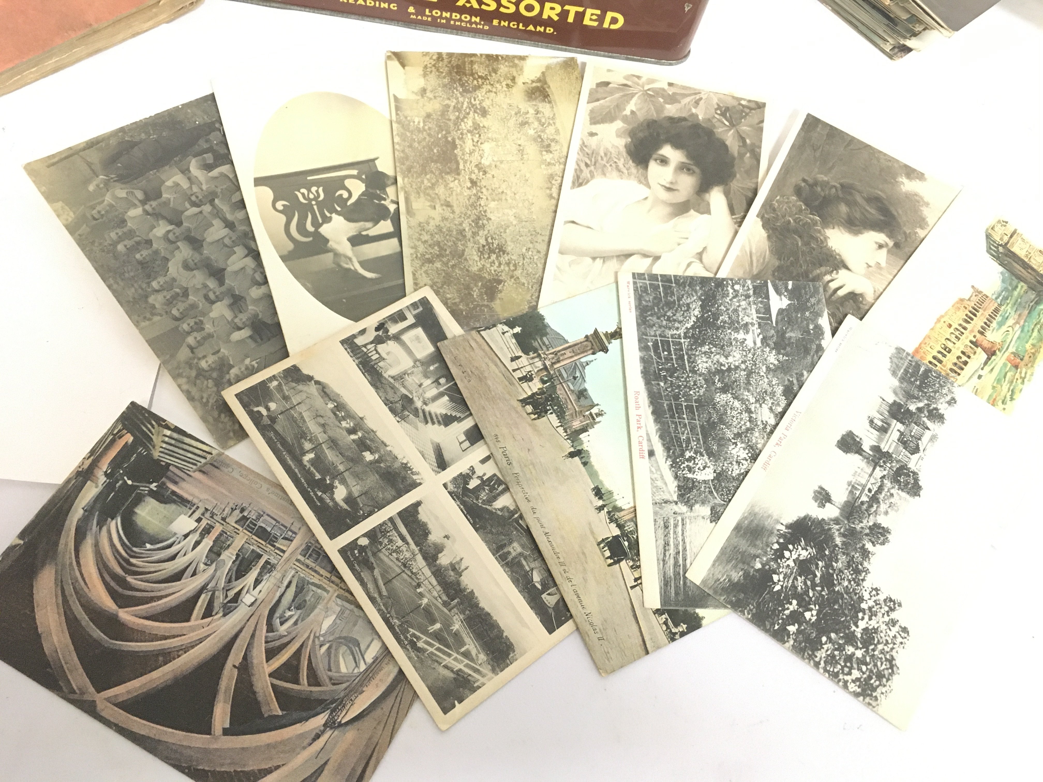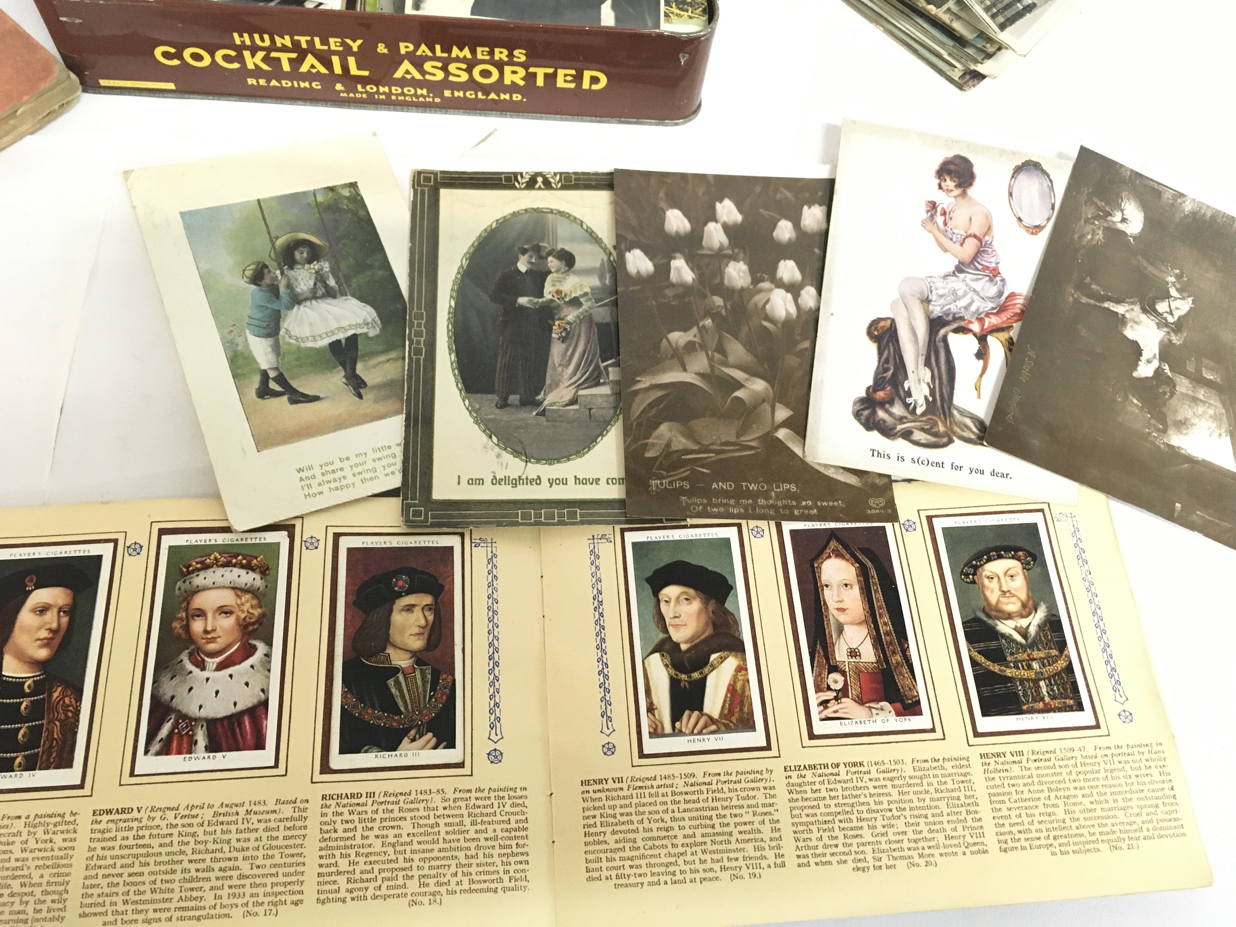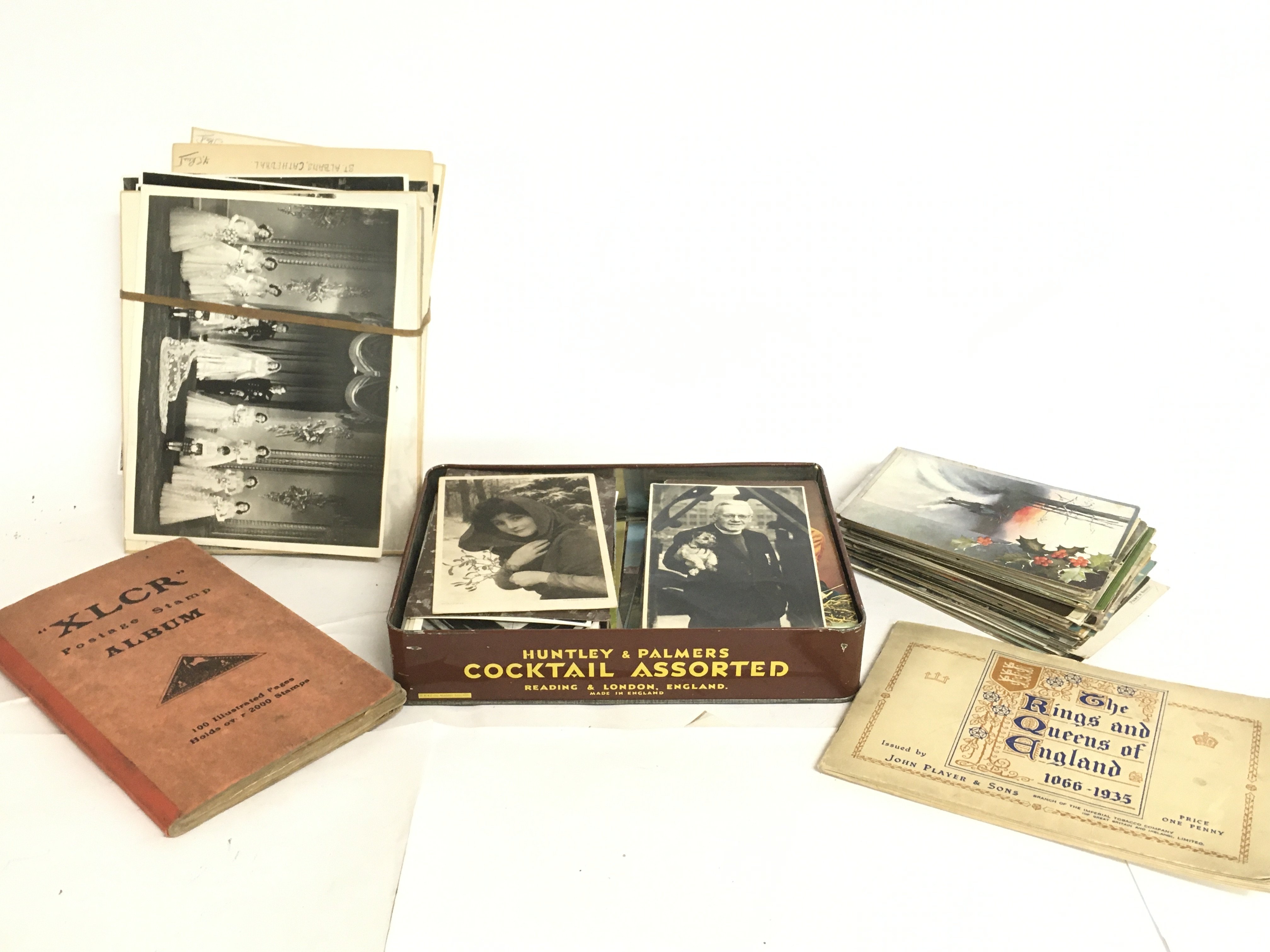 A collection of vintage postcards, cigarette cards, stamps, photographs. Postage category C- NO RESERVE
