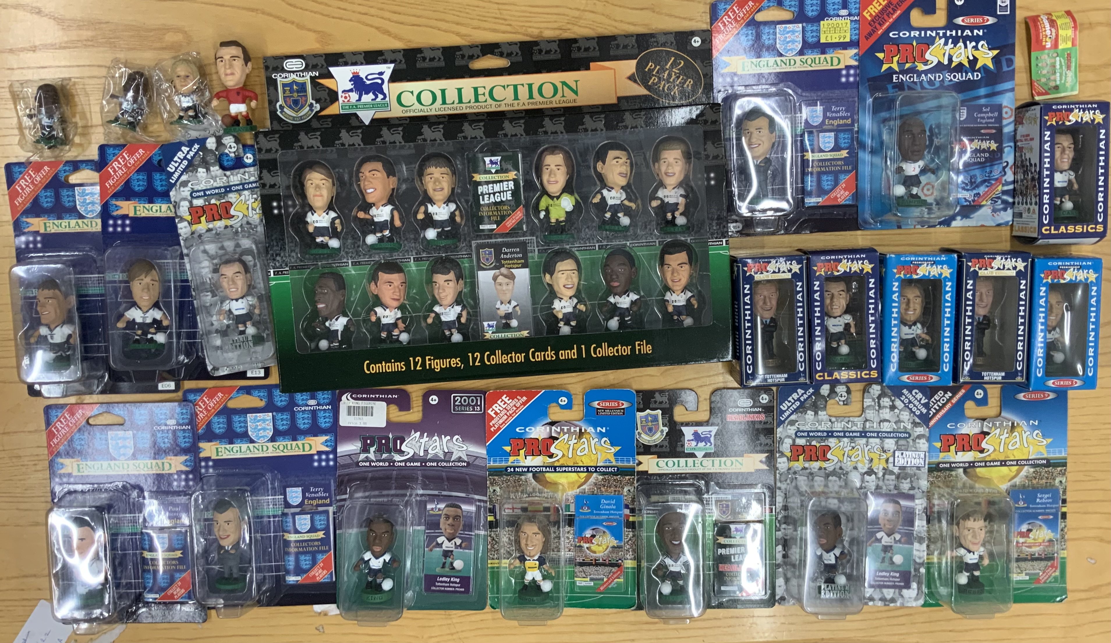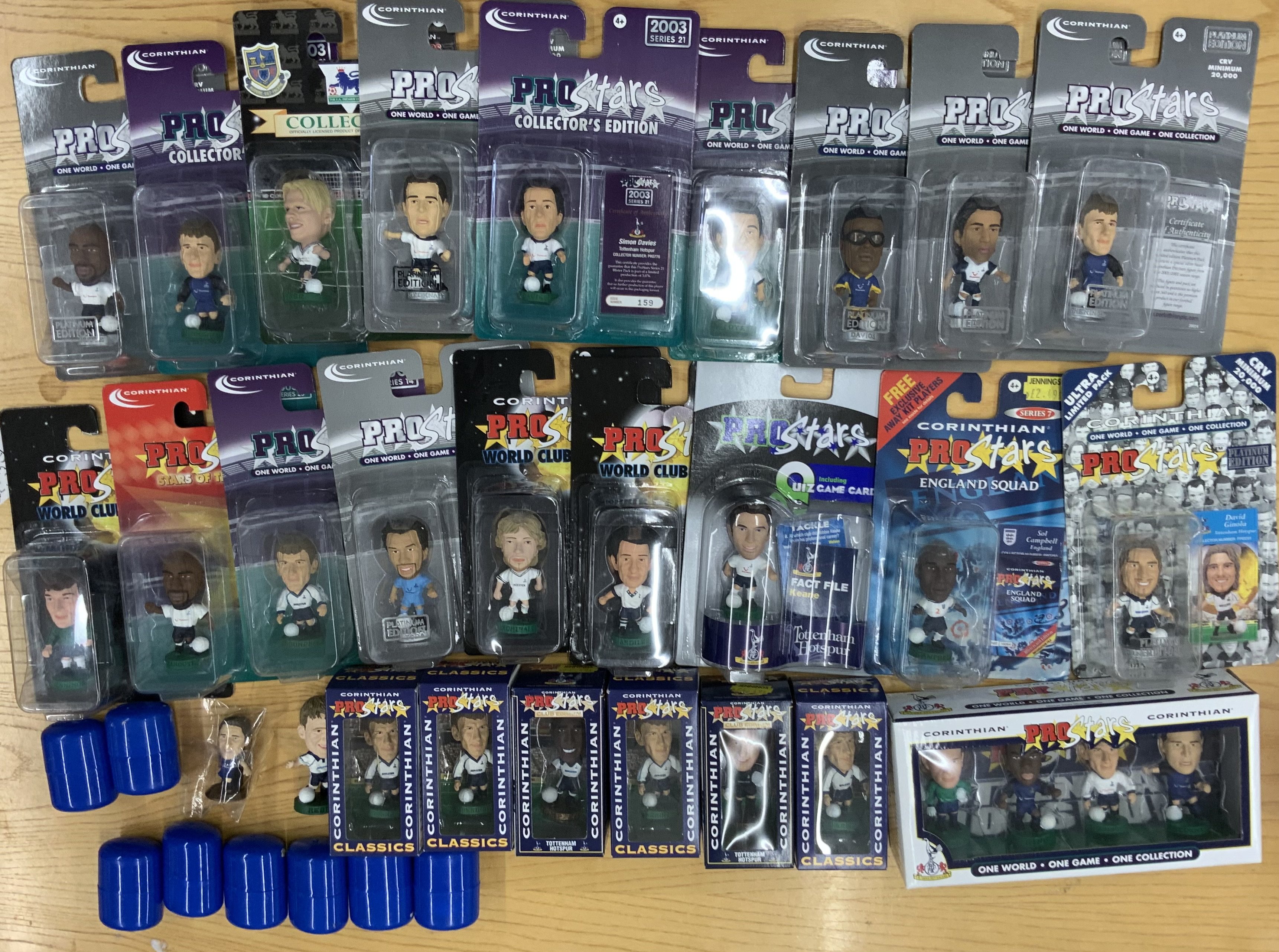 Tottenham Corinthian Football Figures: Vast collection to include 109 loose or bagged players plus 75 in sealed boxes. Also a boxed set of 12 and 4 players. 200 figures. (3 boxes)