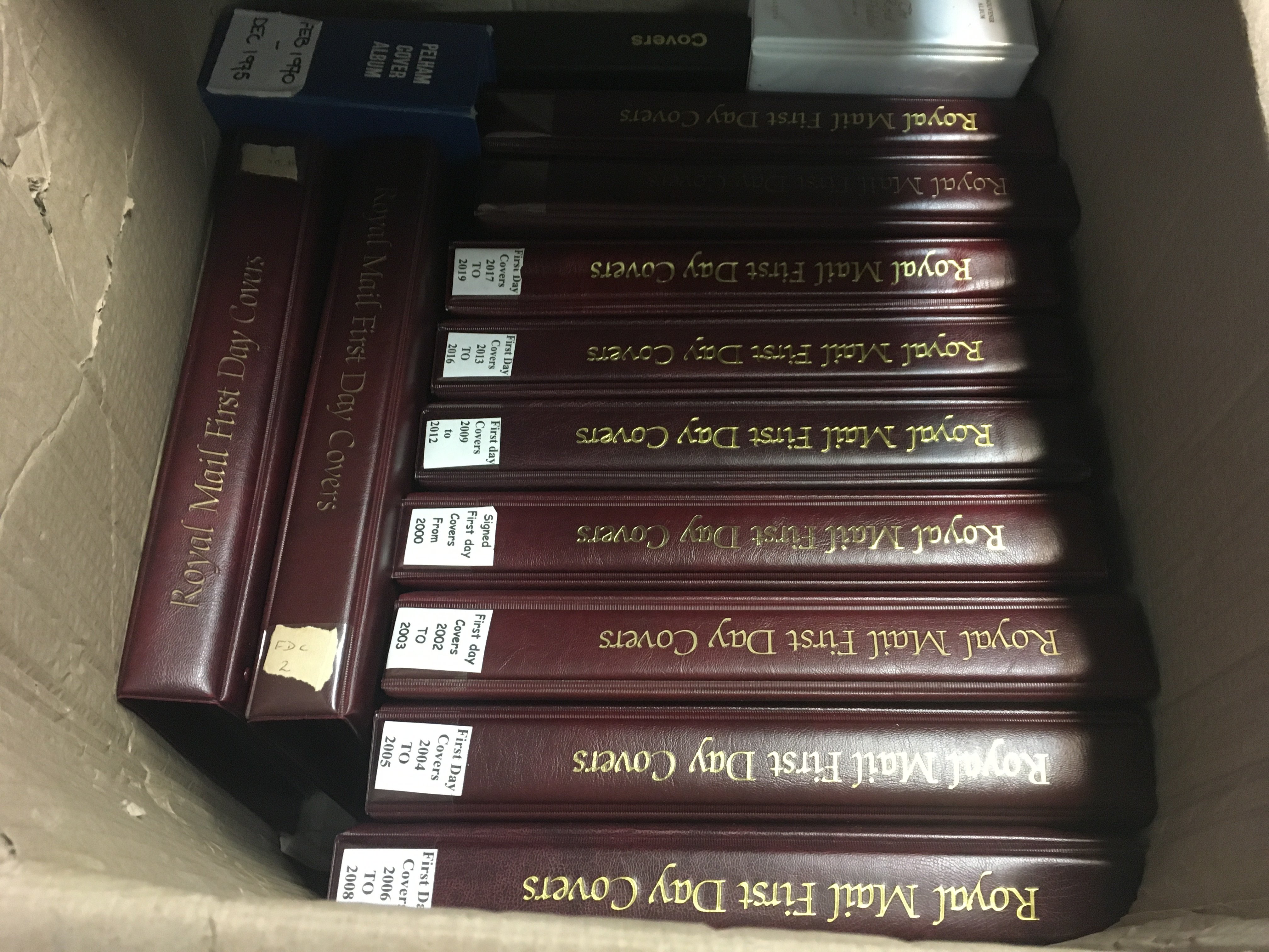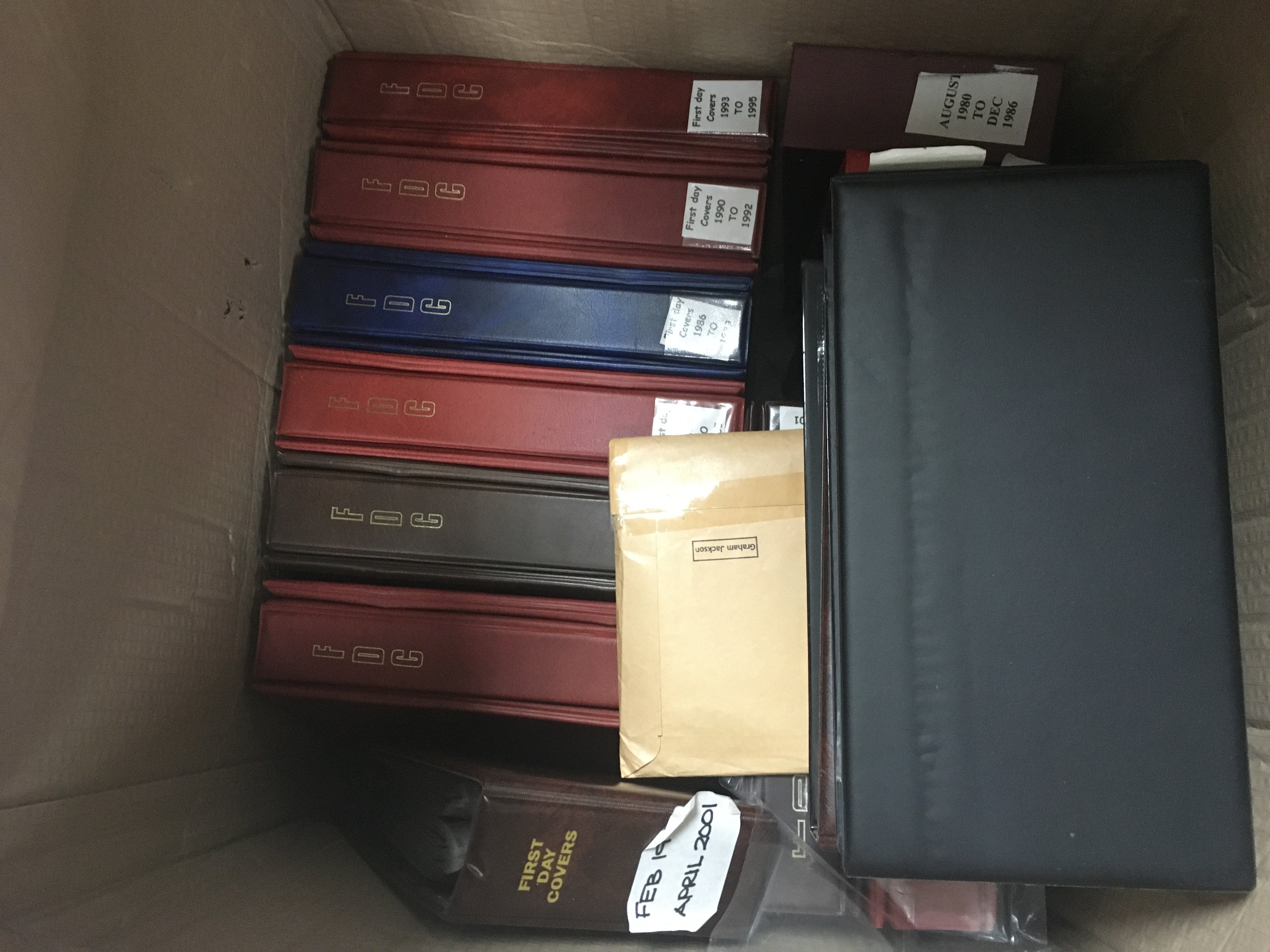 An extensive collection of great Britain first day covers, many with special hand stamps, housed in three large boxes, approx 53 albums in total.