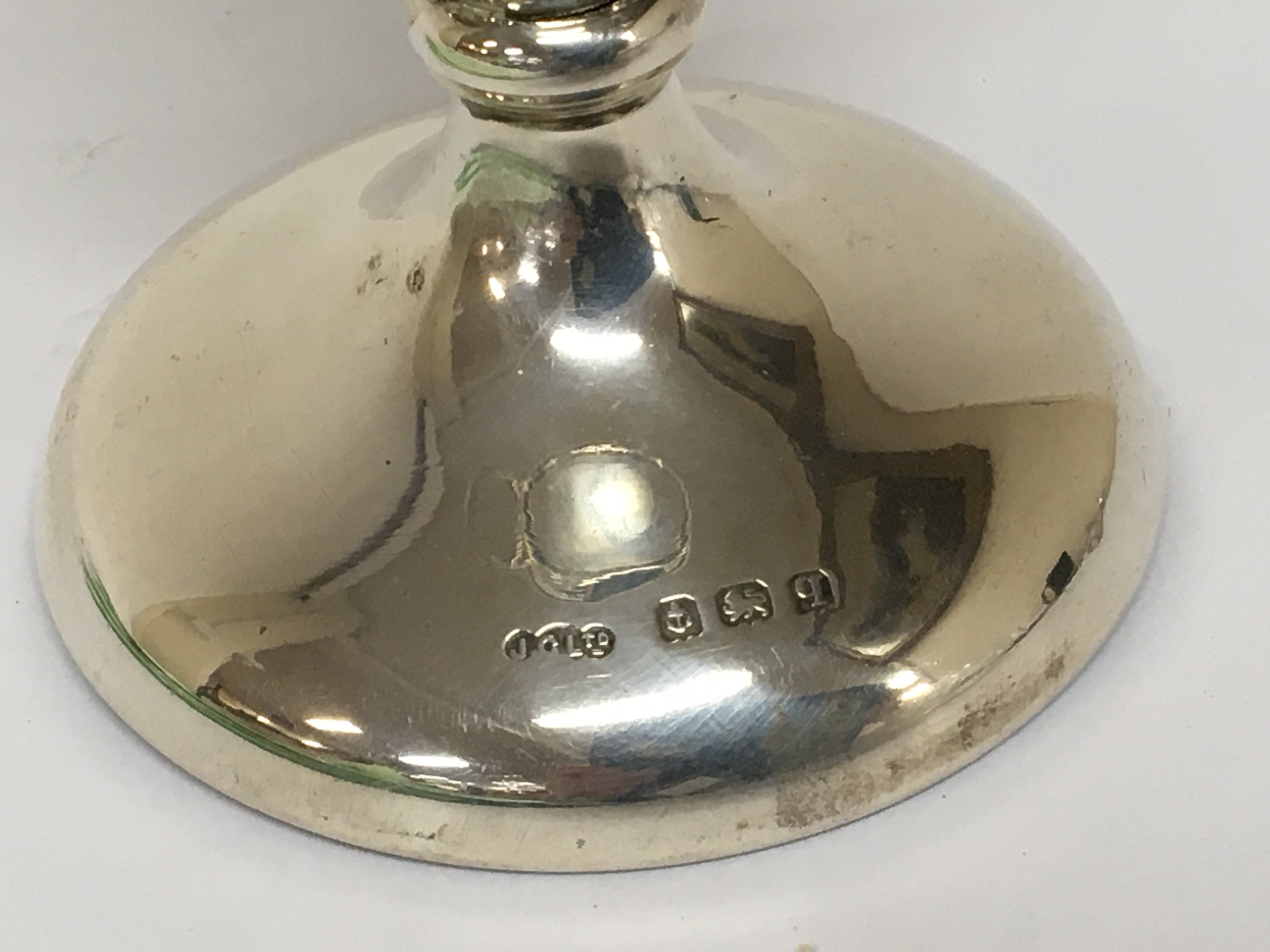 A modern design silver vase loaded base with raised handles Birmingham hallmarks. Height 18cm