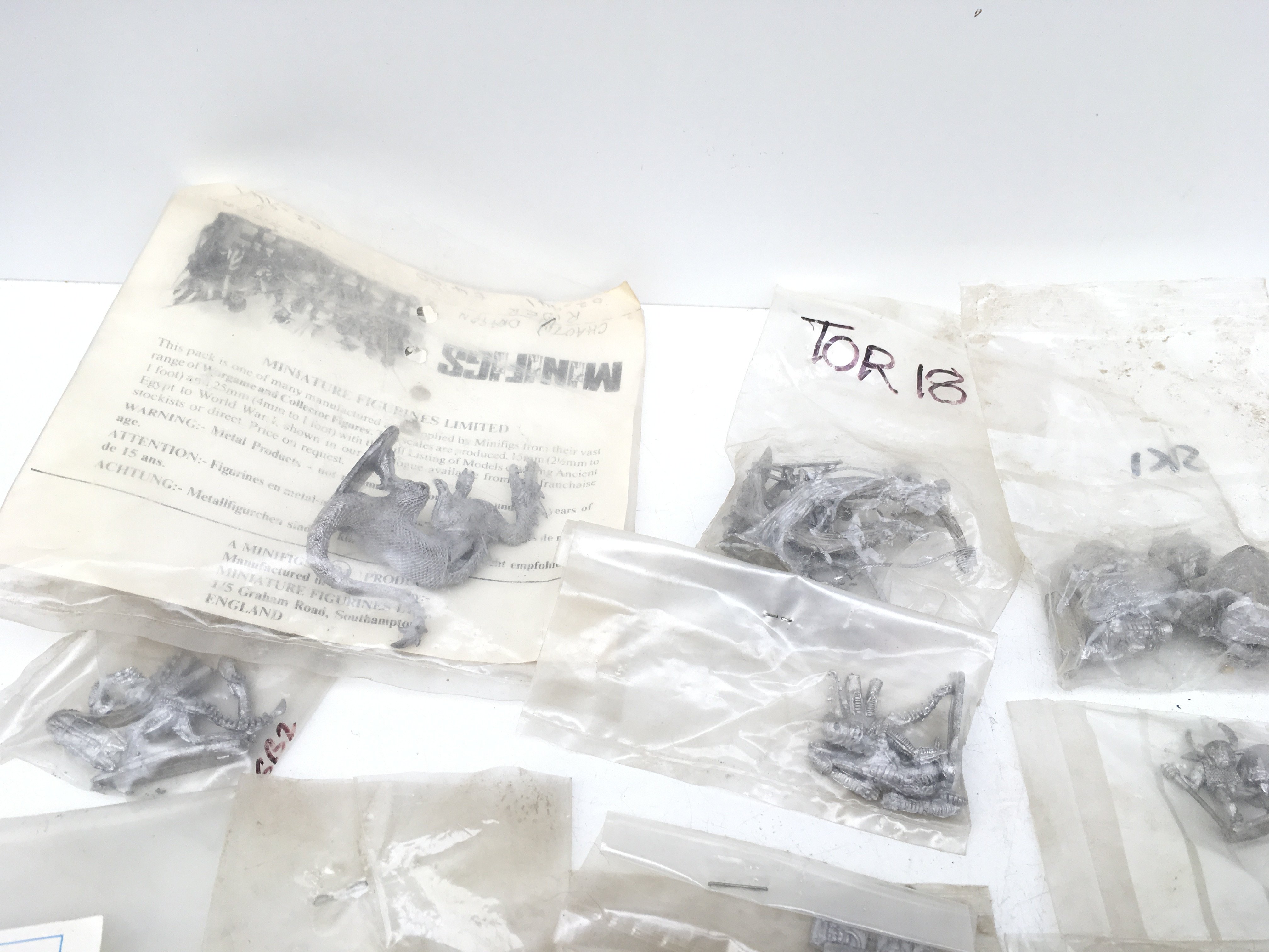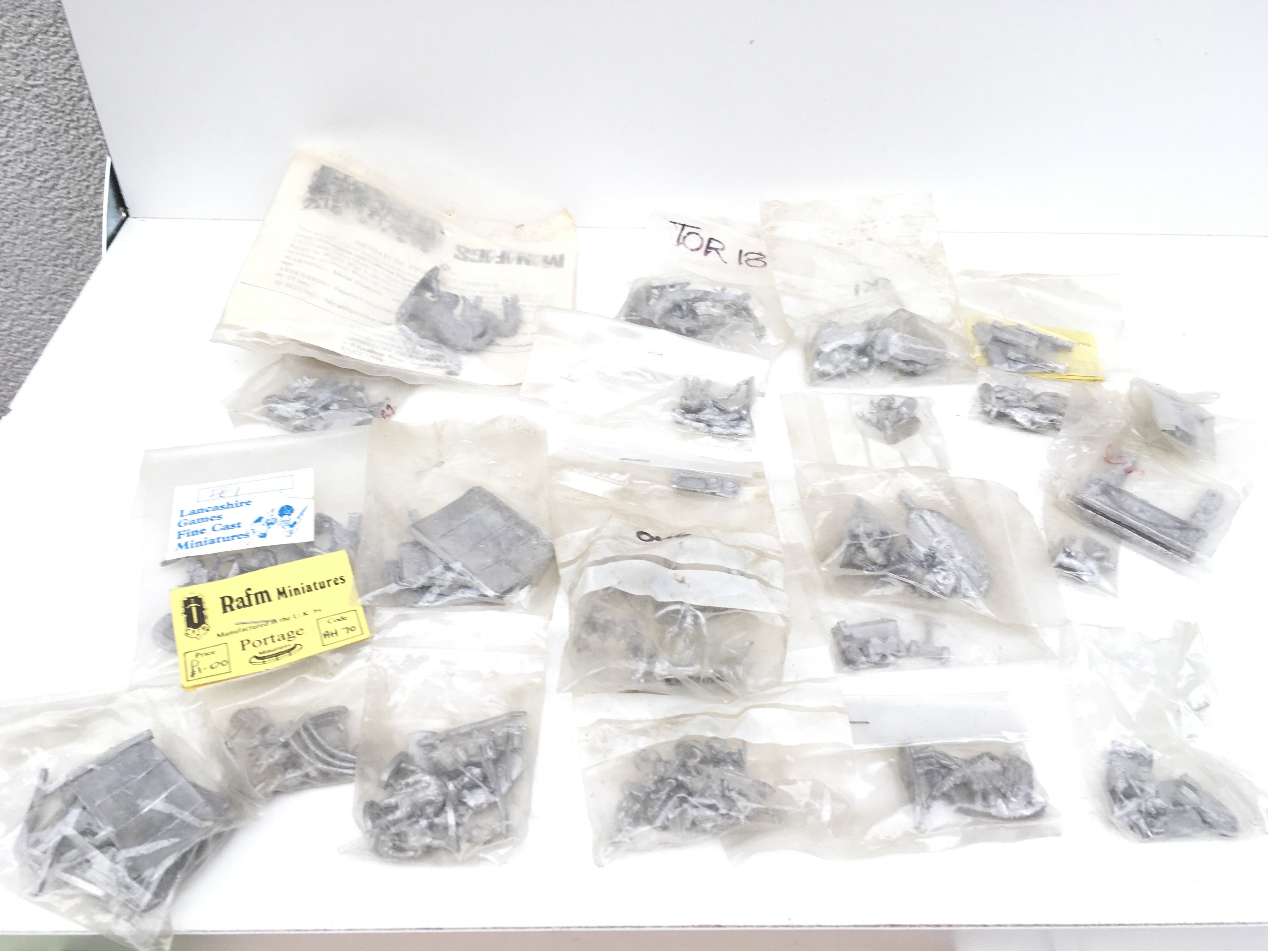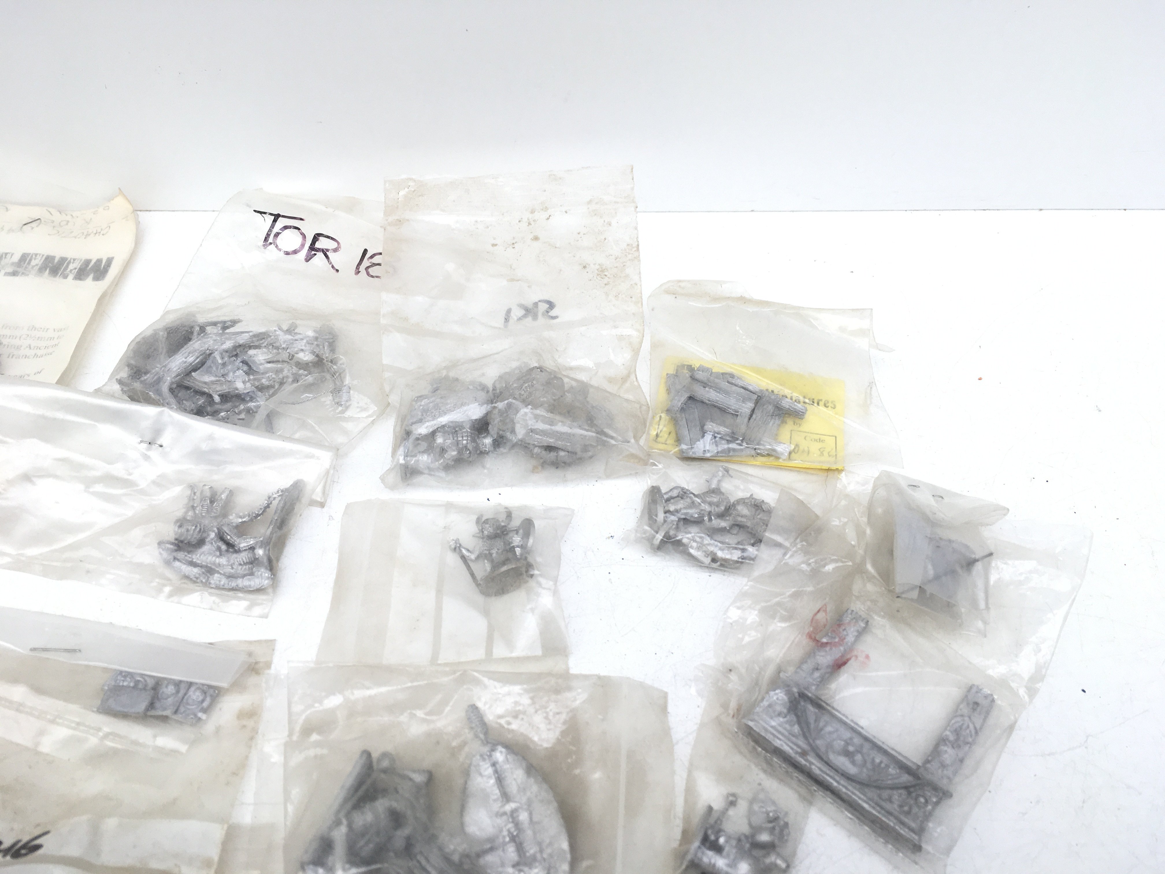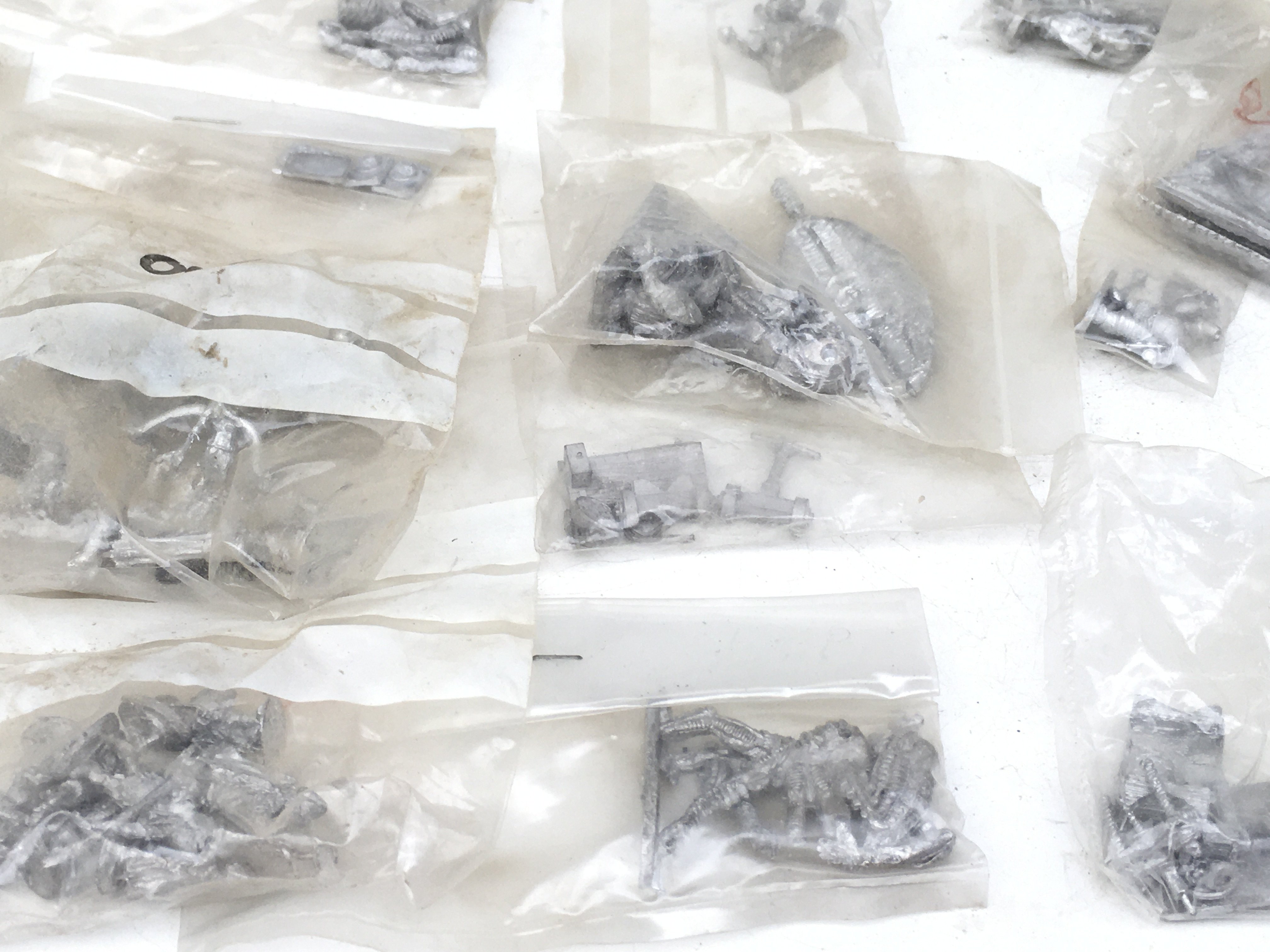 A collection in excess of 20 bags containing metal miniature models and accessories from a Warhammer collection all are unpainted