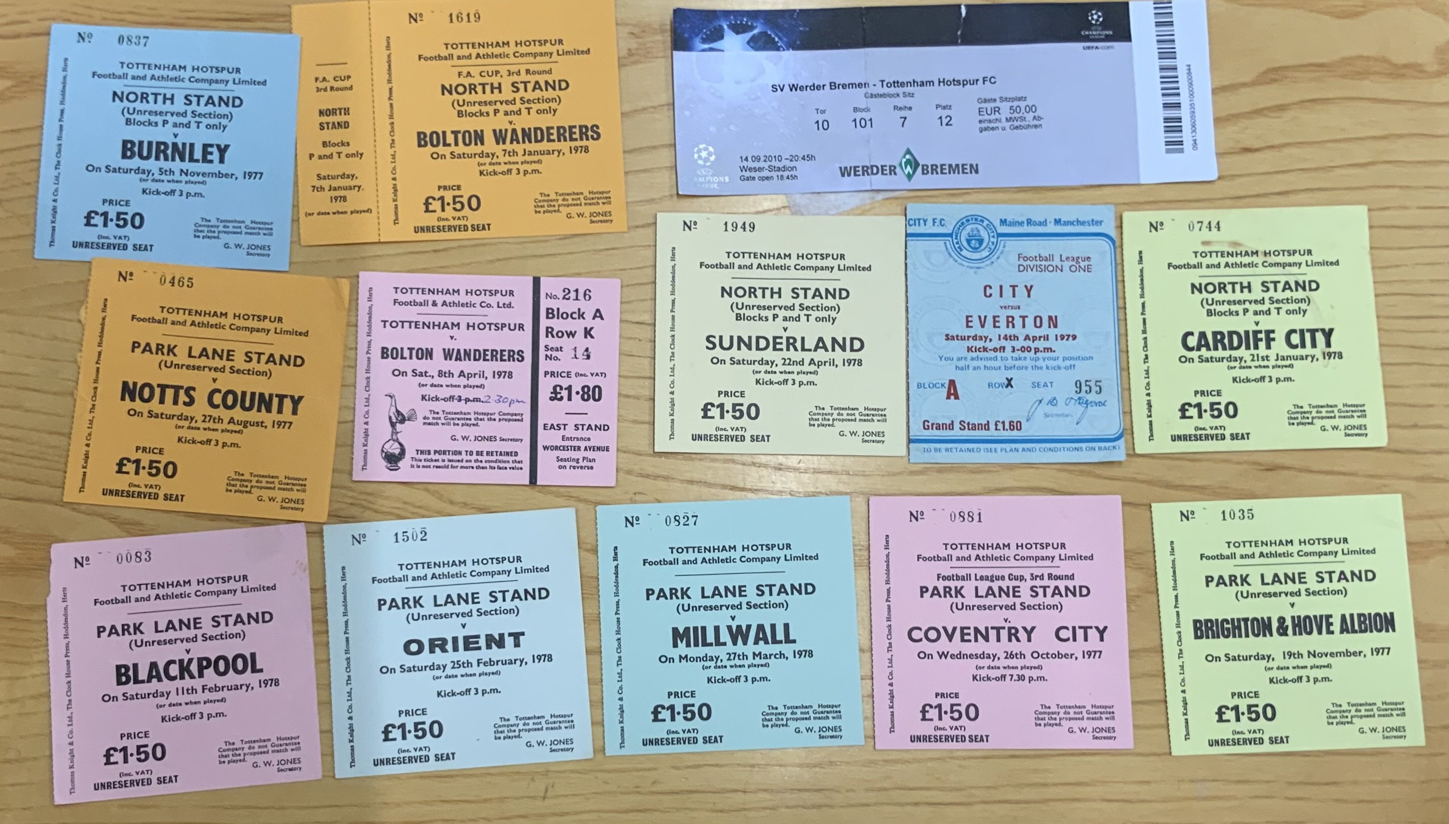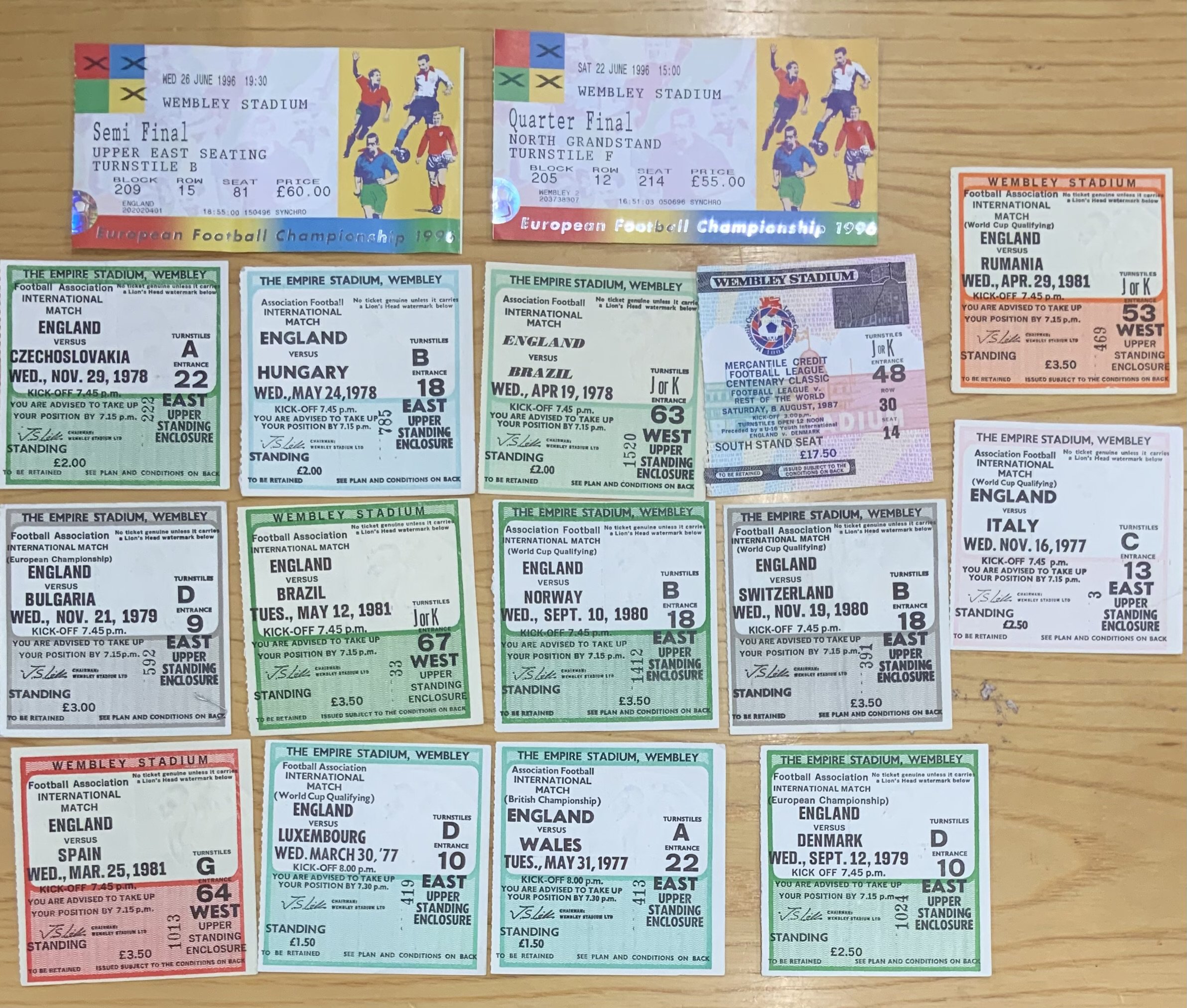 Tottenham 77/78 + England Football Tickets: 11 home tickets for Spurs in their 2nd division season plus 2 others. C/W 16 England home tickets from a similar era plus 2 from Euro 96. Good. (29)