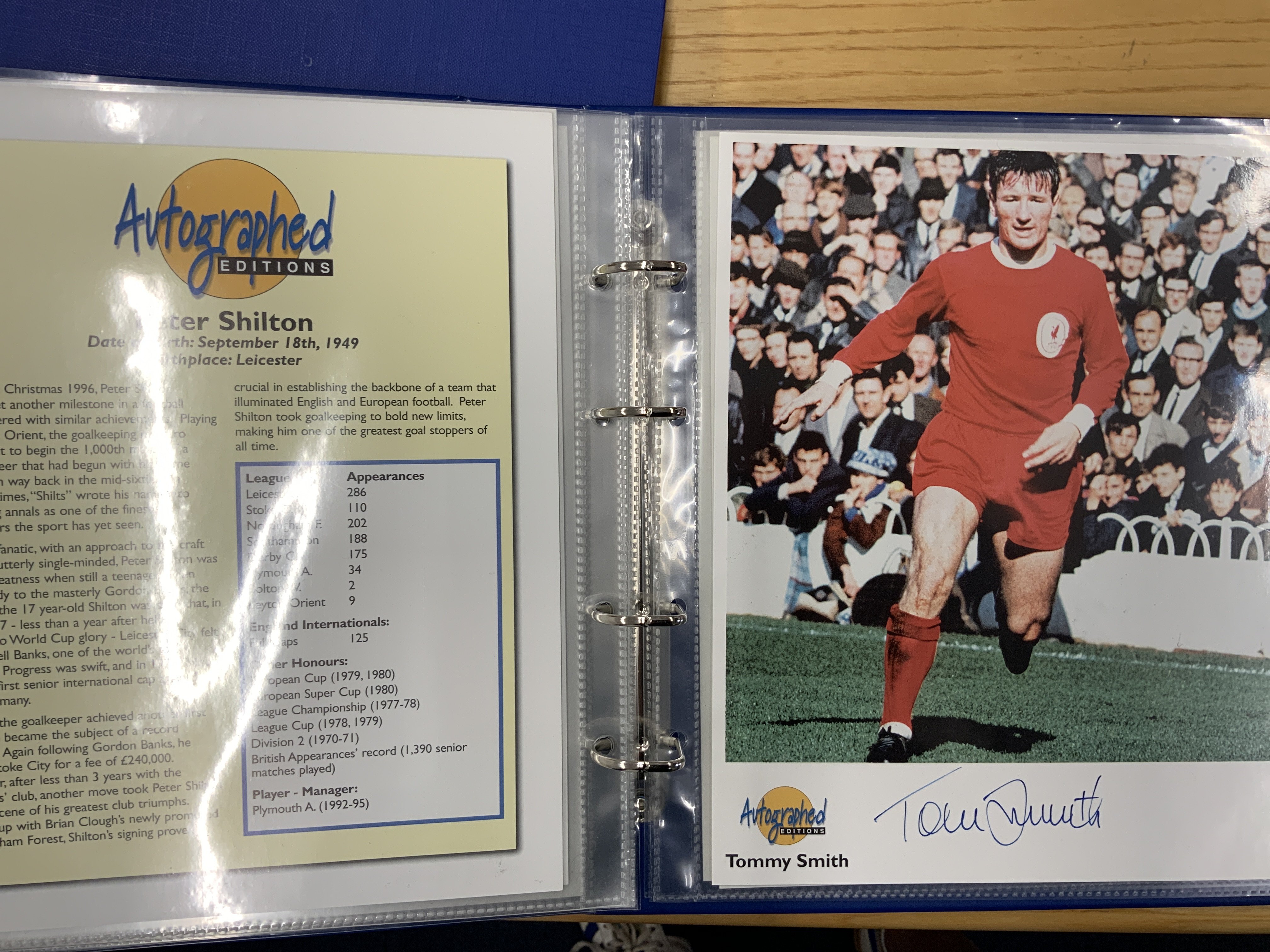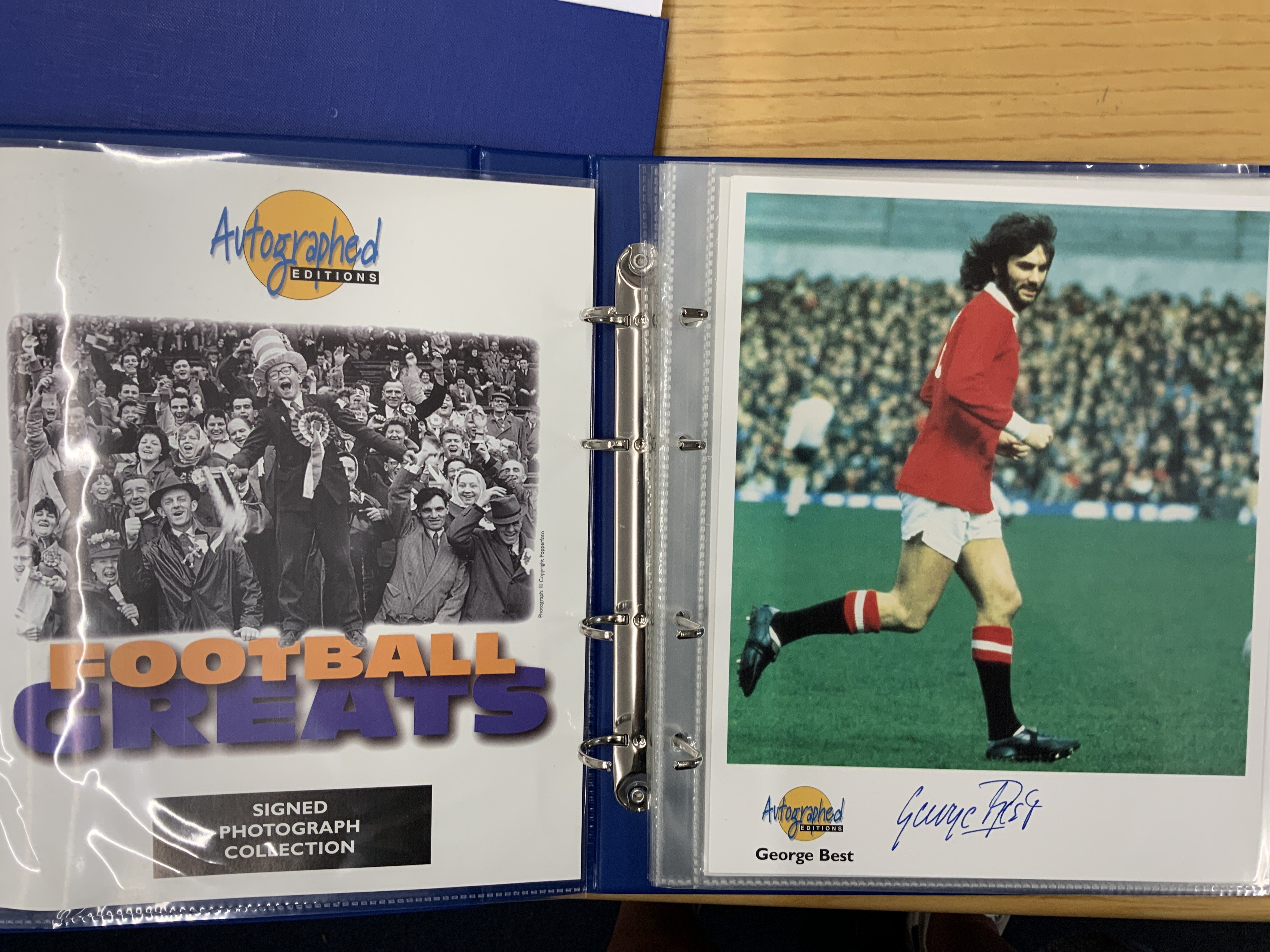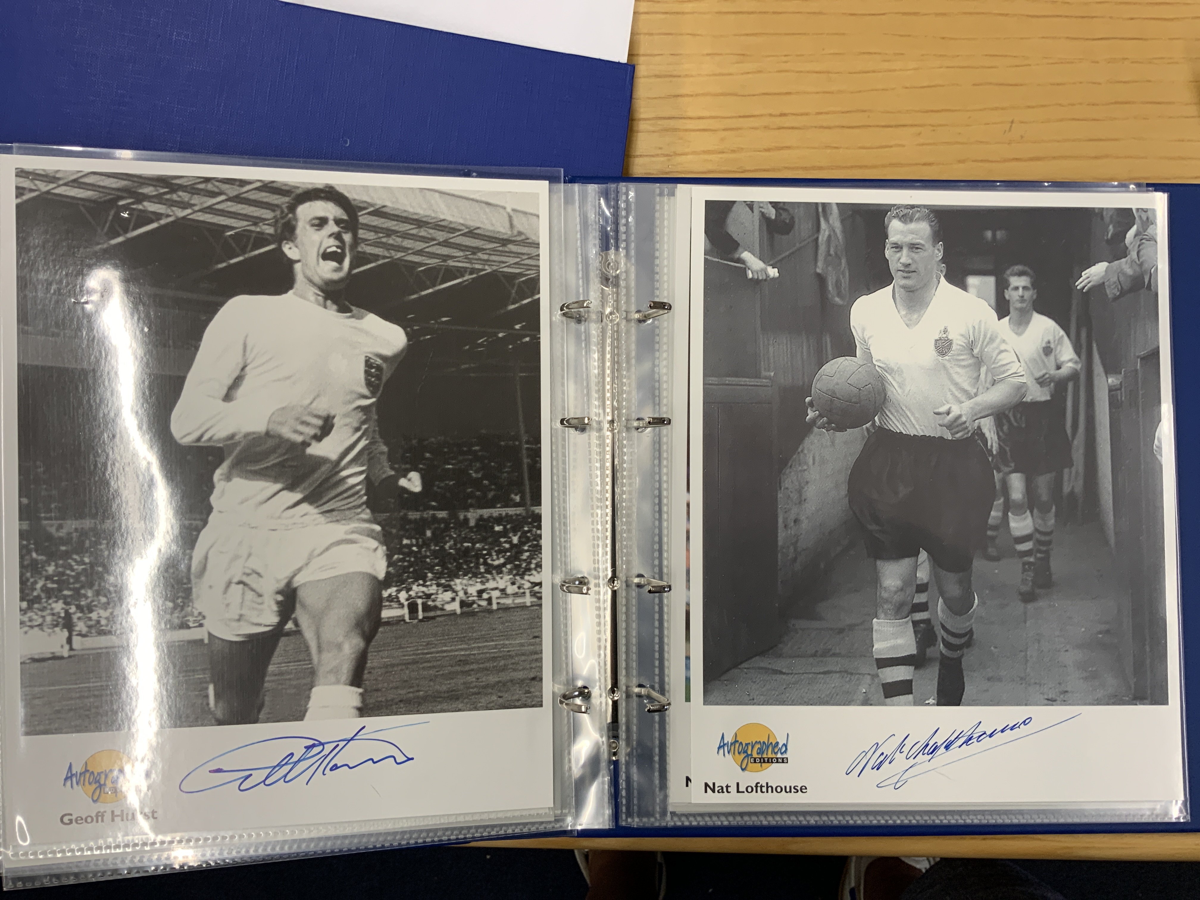 Autographed Editions Signed Football Cards: Large cards in original folder with COA covering all photos. Includes the hard to obtain George Best plus Banks Bonetti Chivers Cohen Hunt Hurst Lofthouse MacDonald Shilton T Smith Stiles and Wilson. (13)