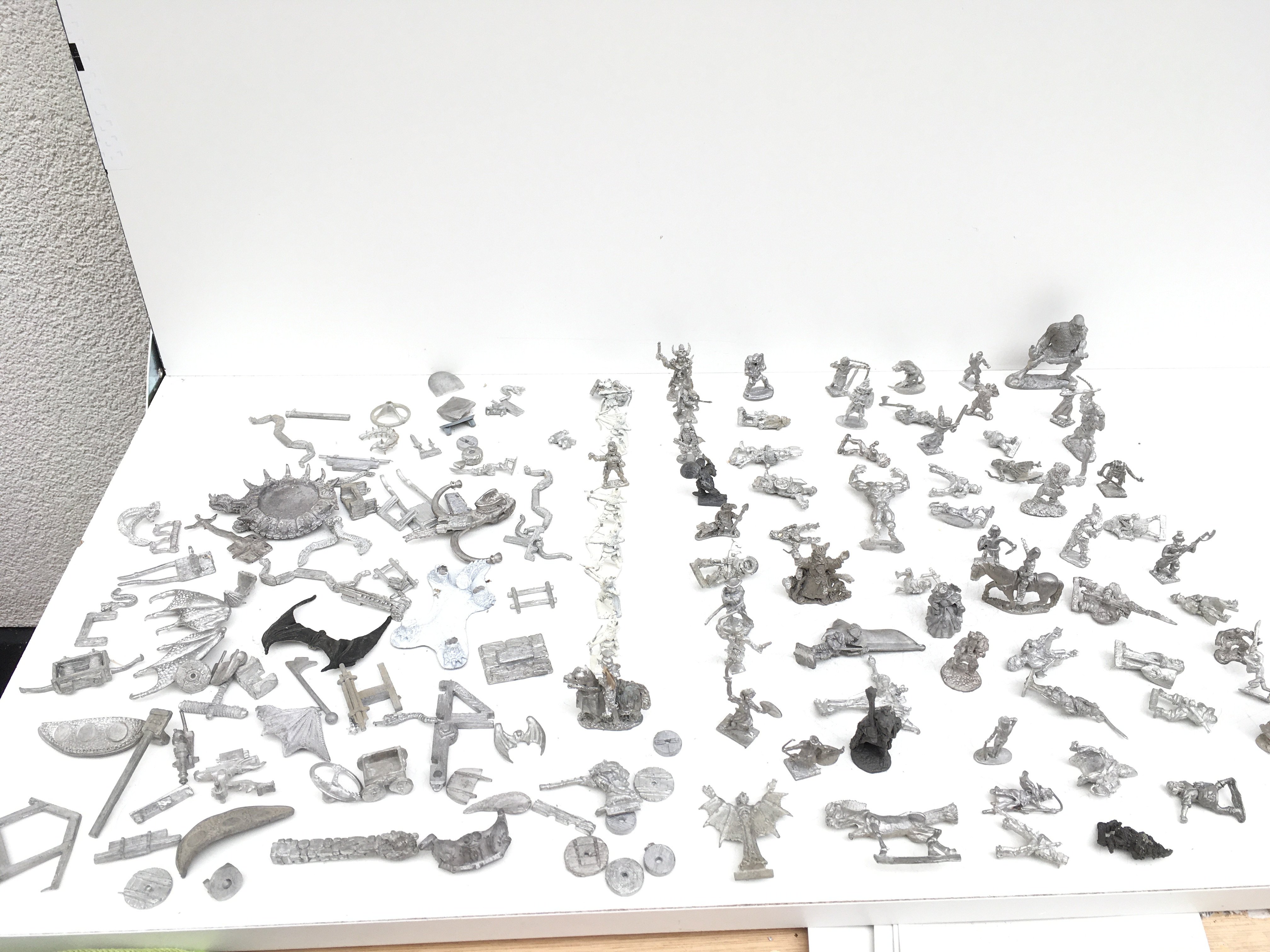 A group in excess of 100 metal figures and accessories from a Warhammer collection all unpainted