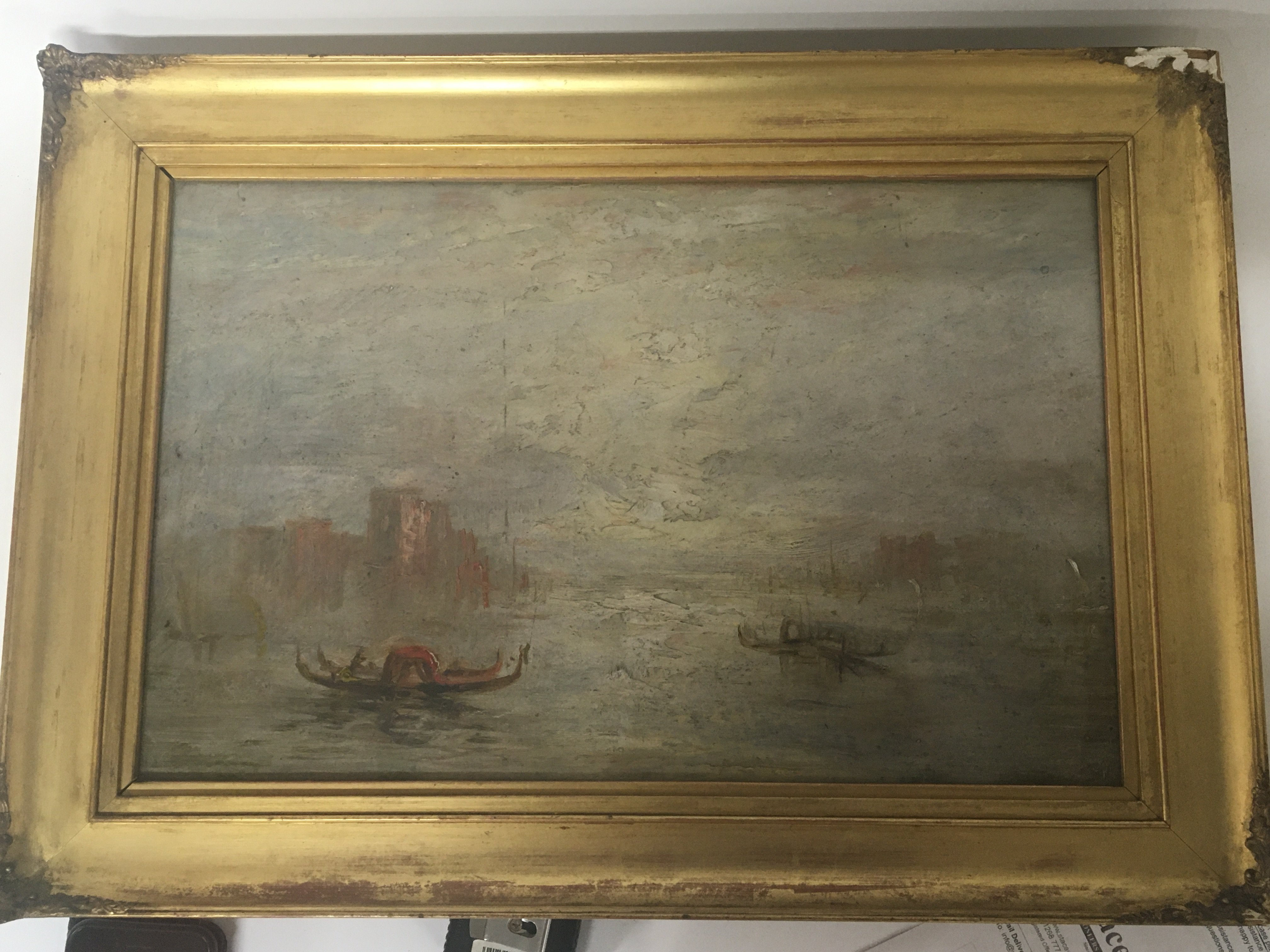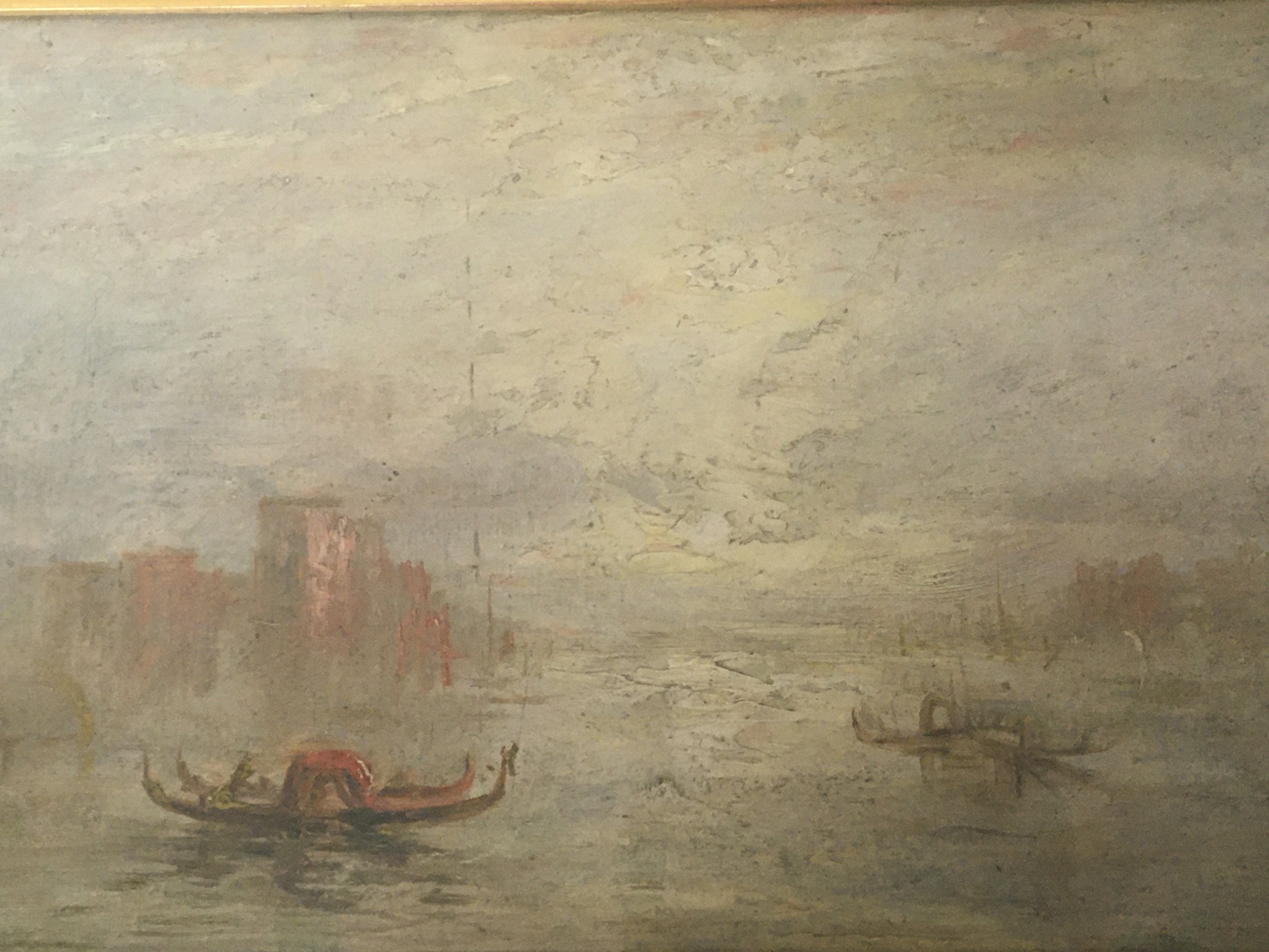 A framed oil painting A View of Venice in the manor of Edward Pritchett 1828-1898 the reverse with label and Sothebys stock number B.11987. 55cmx40cm