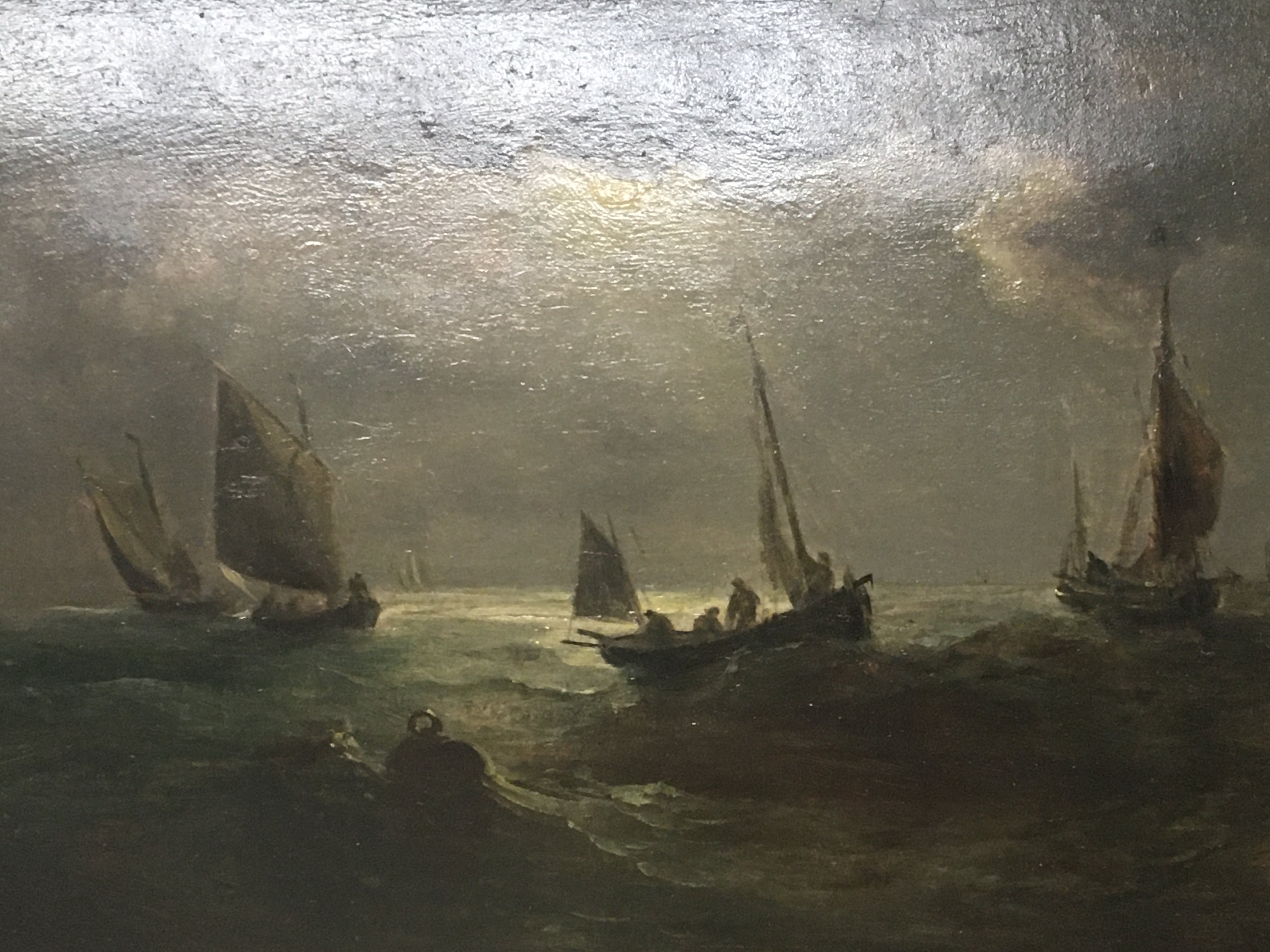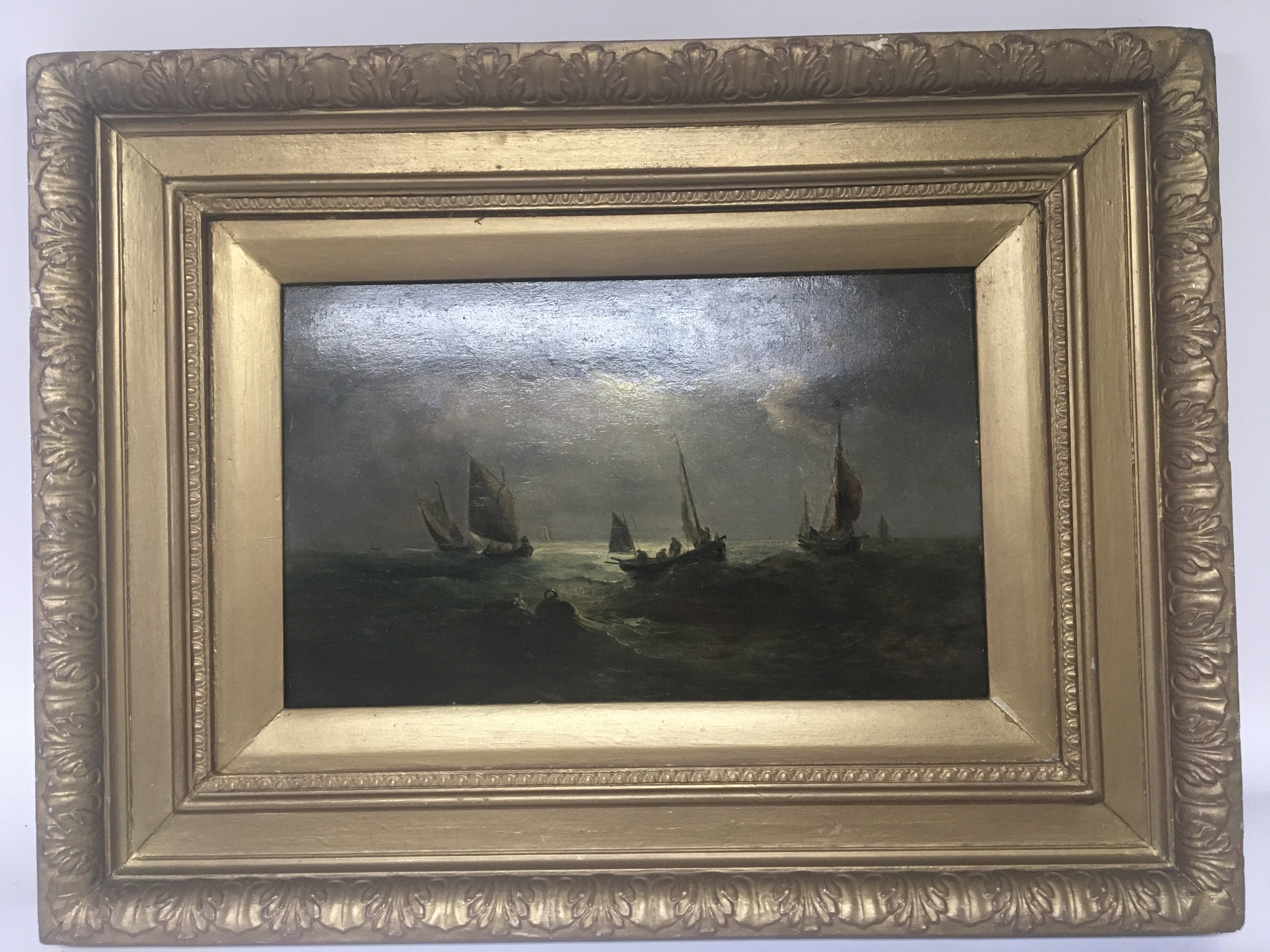 A 19th century oil painting on panel Marine scene. The Fishing Fleet Moonlight attributed to John Moore 1820-1902. 59x45cm