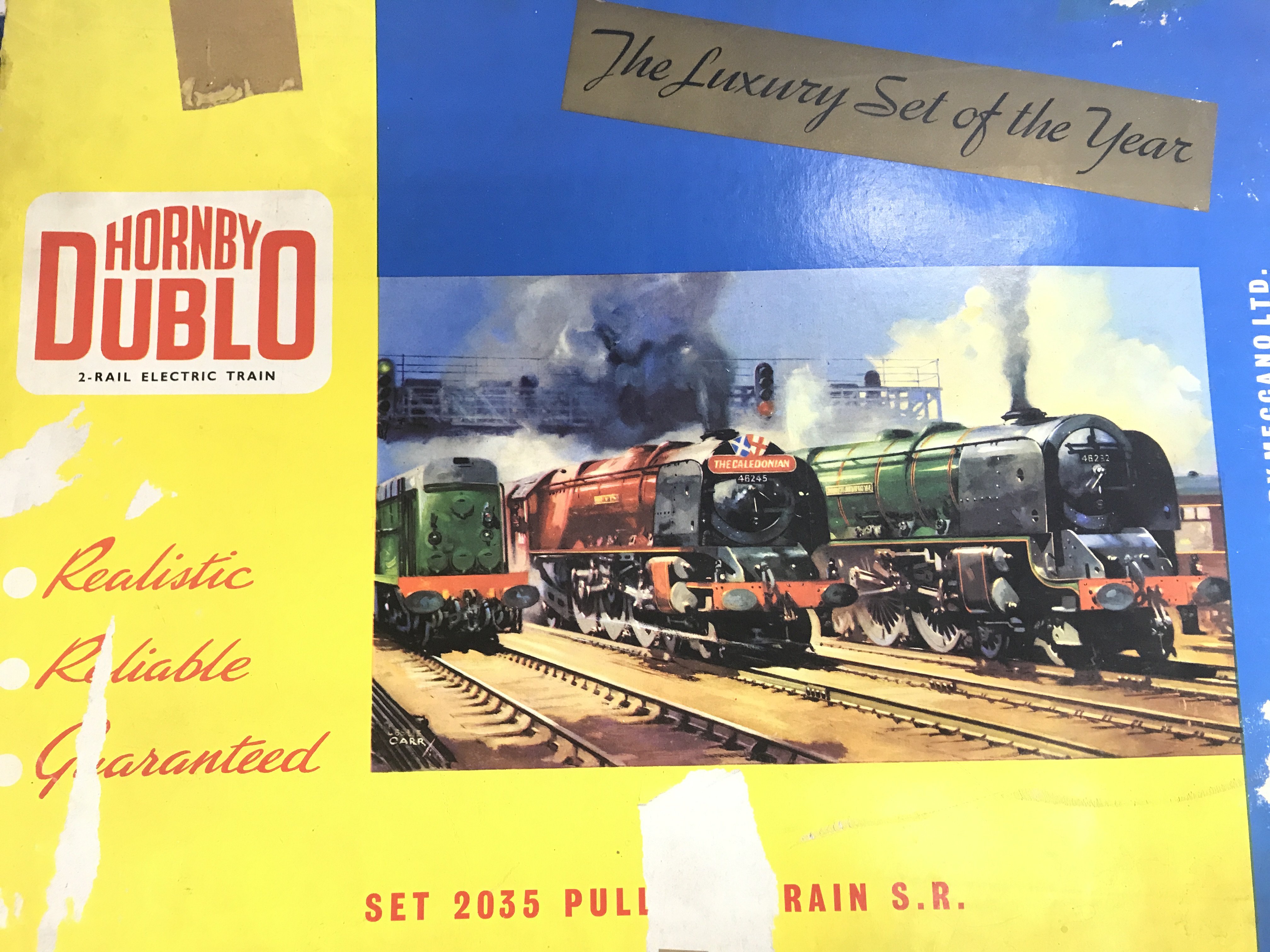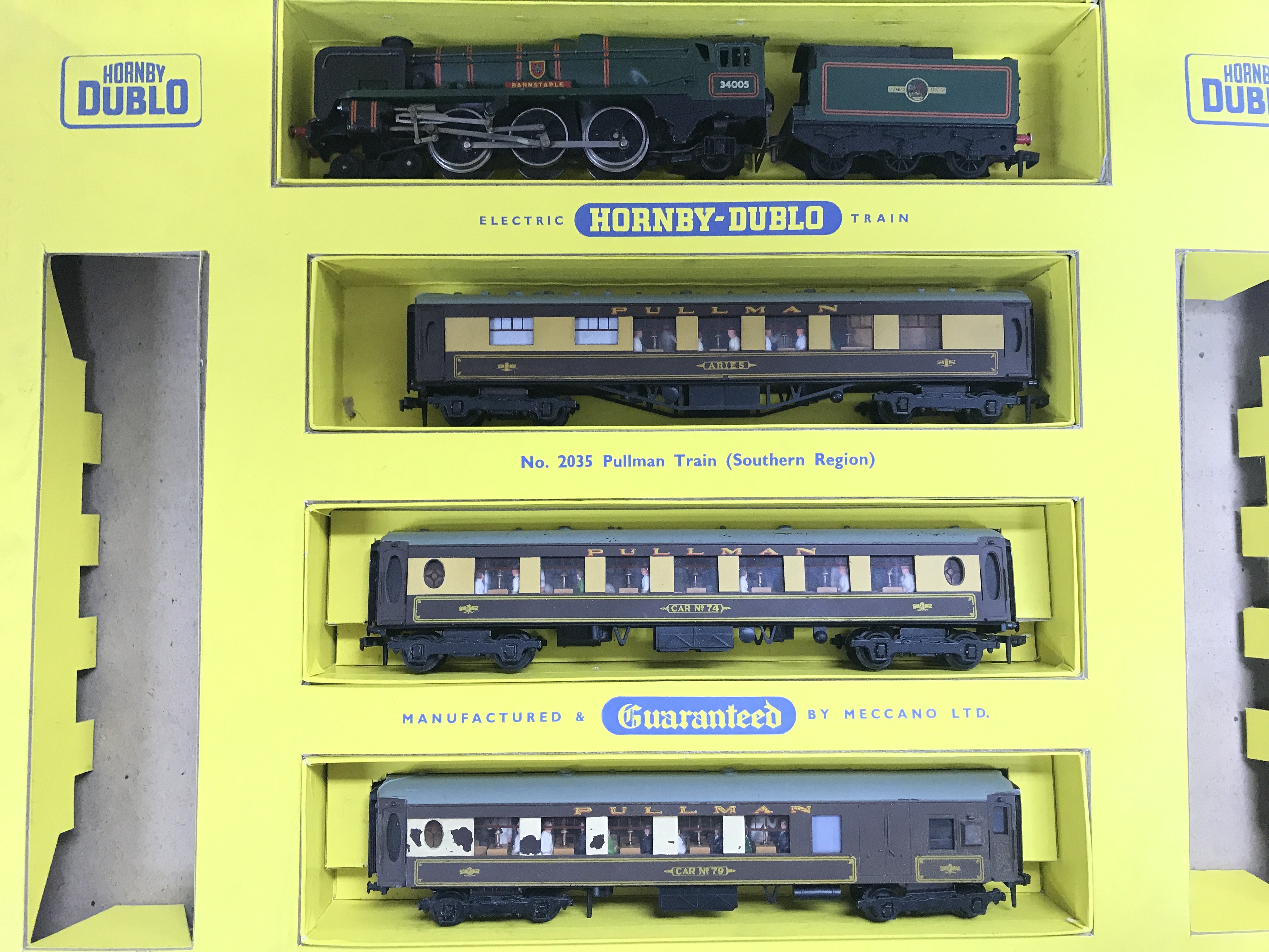 A Boxed Hornby Dublo Pullman Train Set #2035. Box is worn. No track.