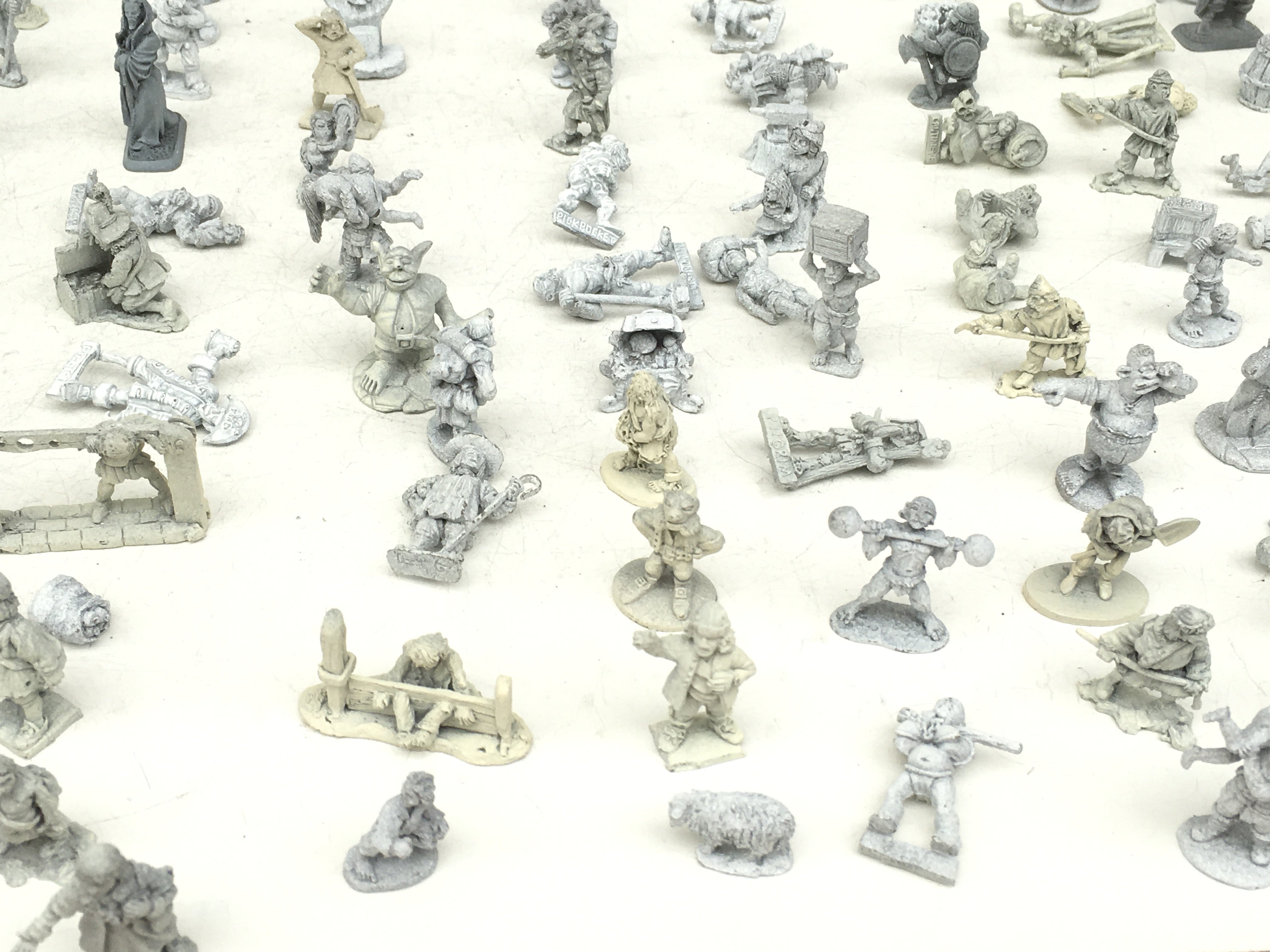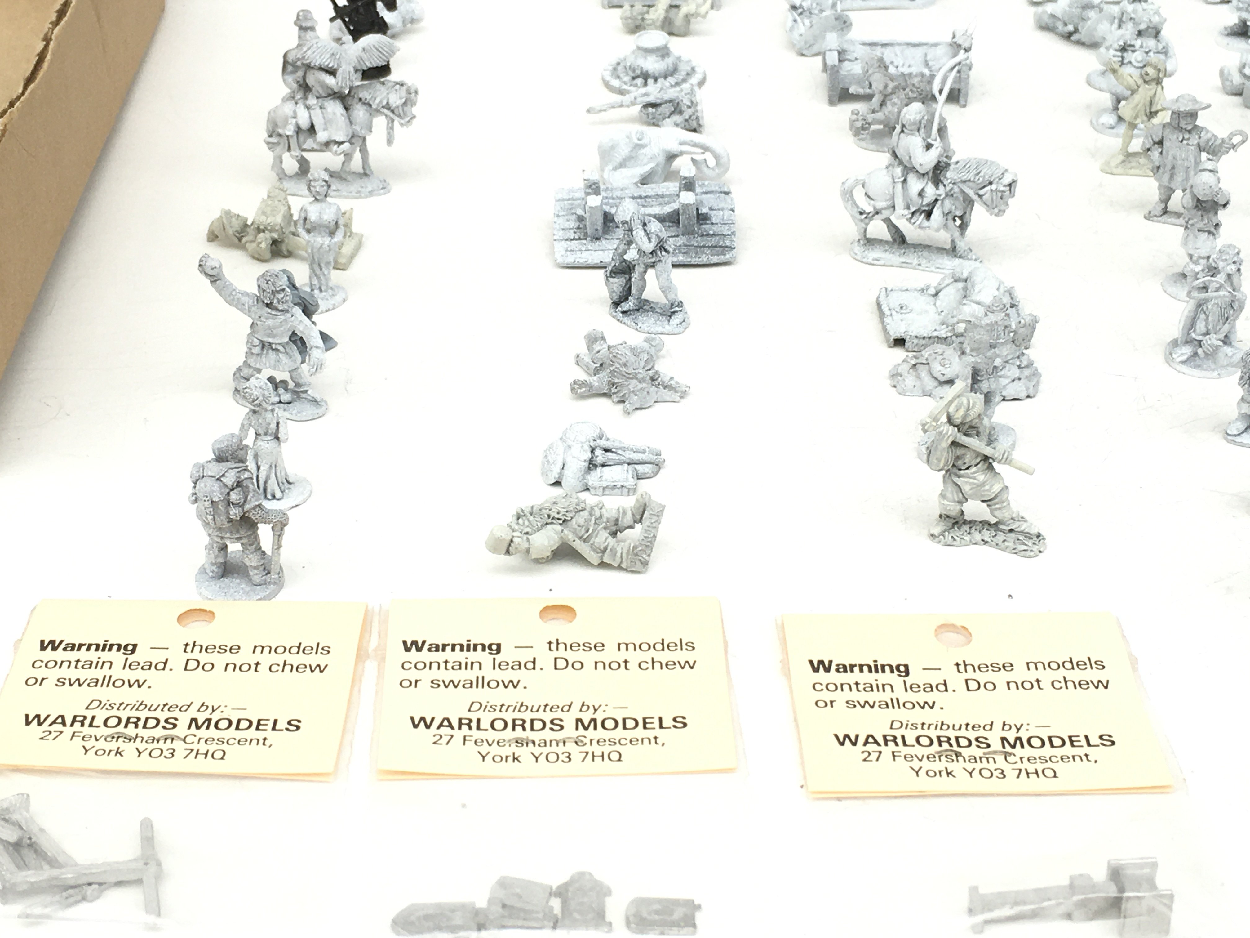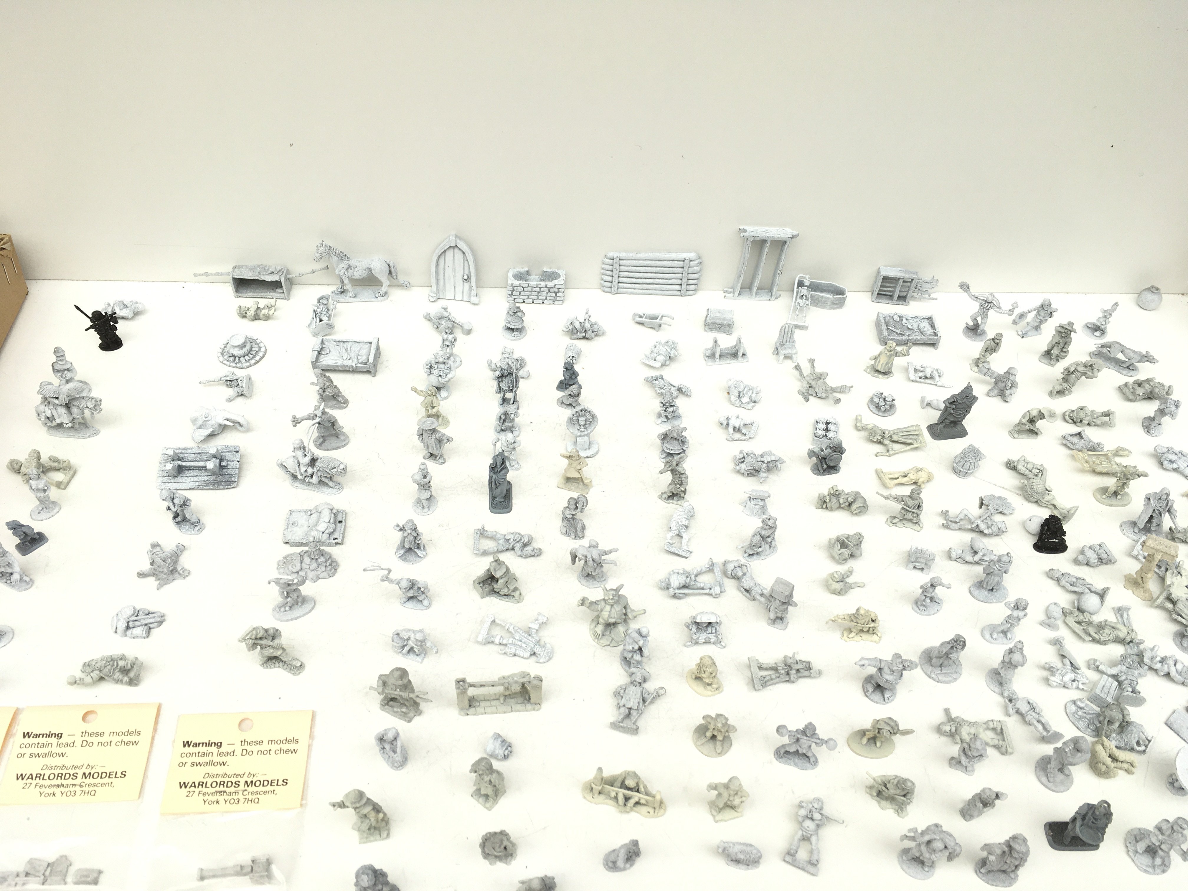 A box containing in excess of 150 metal figures from a Warhammer collection all unpainted.