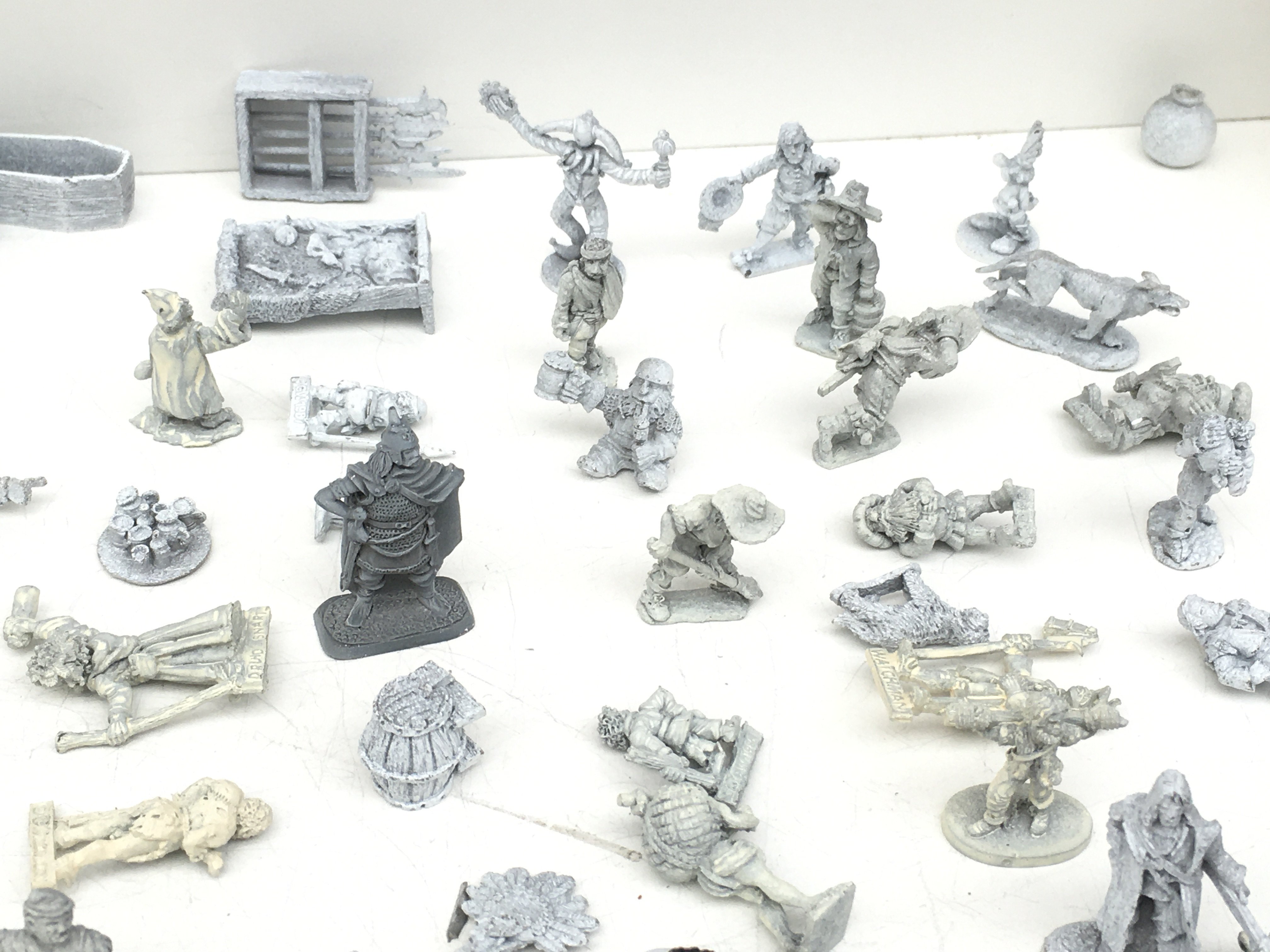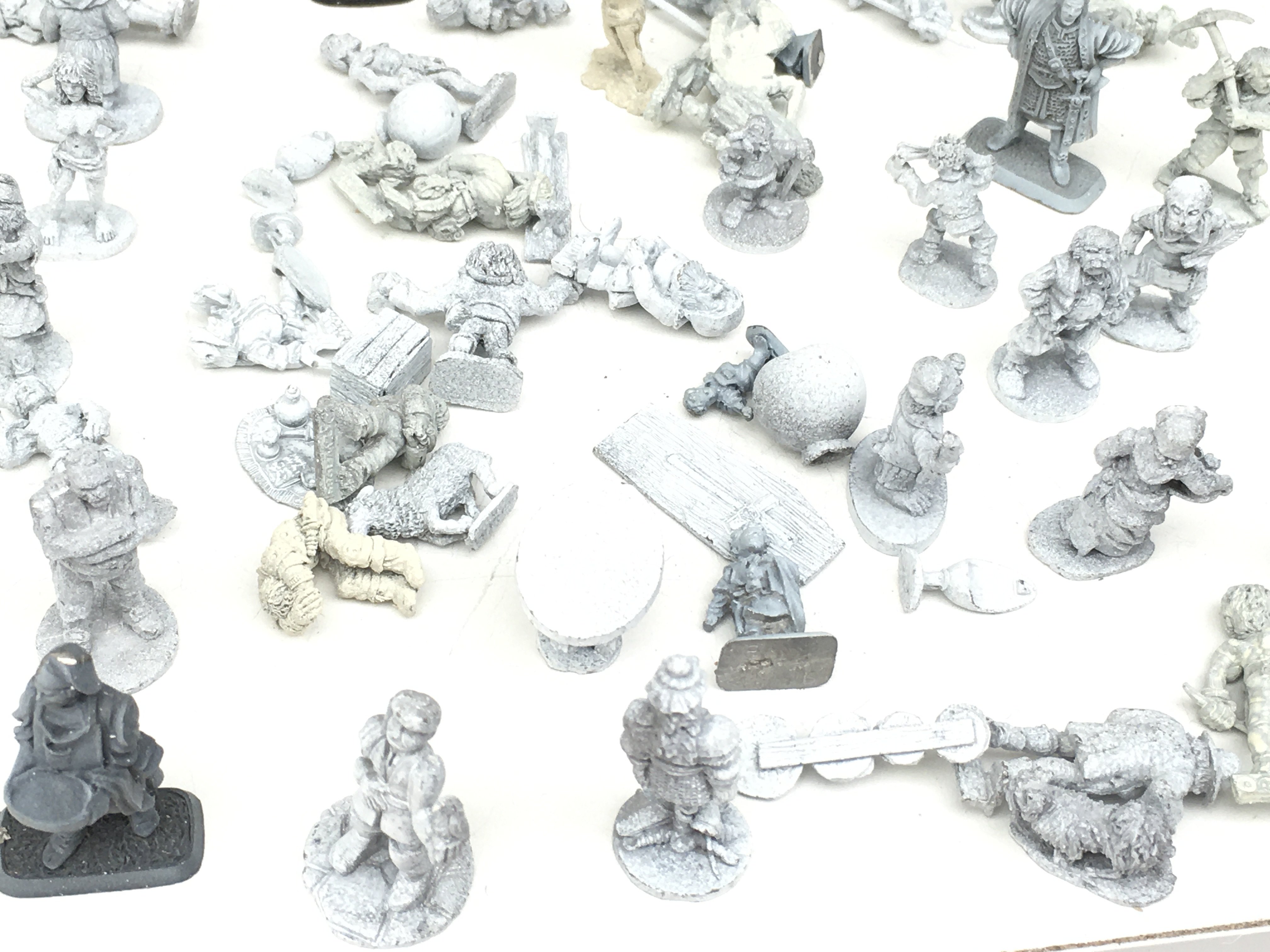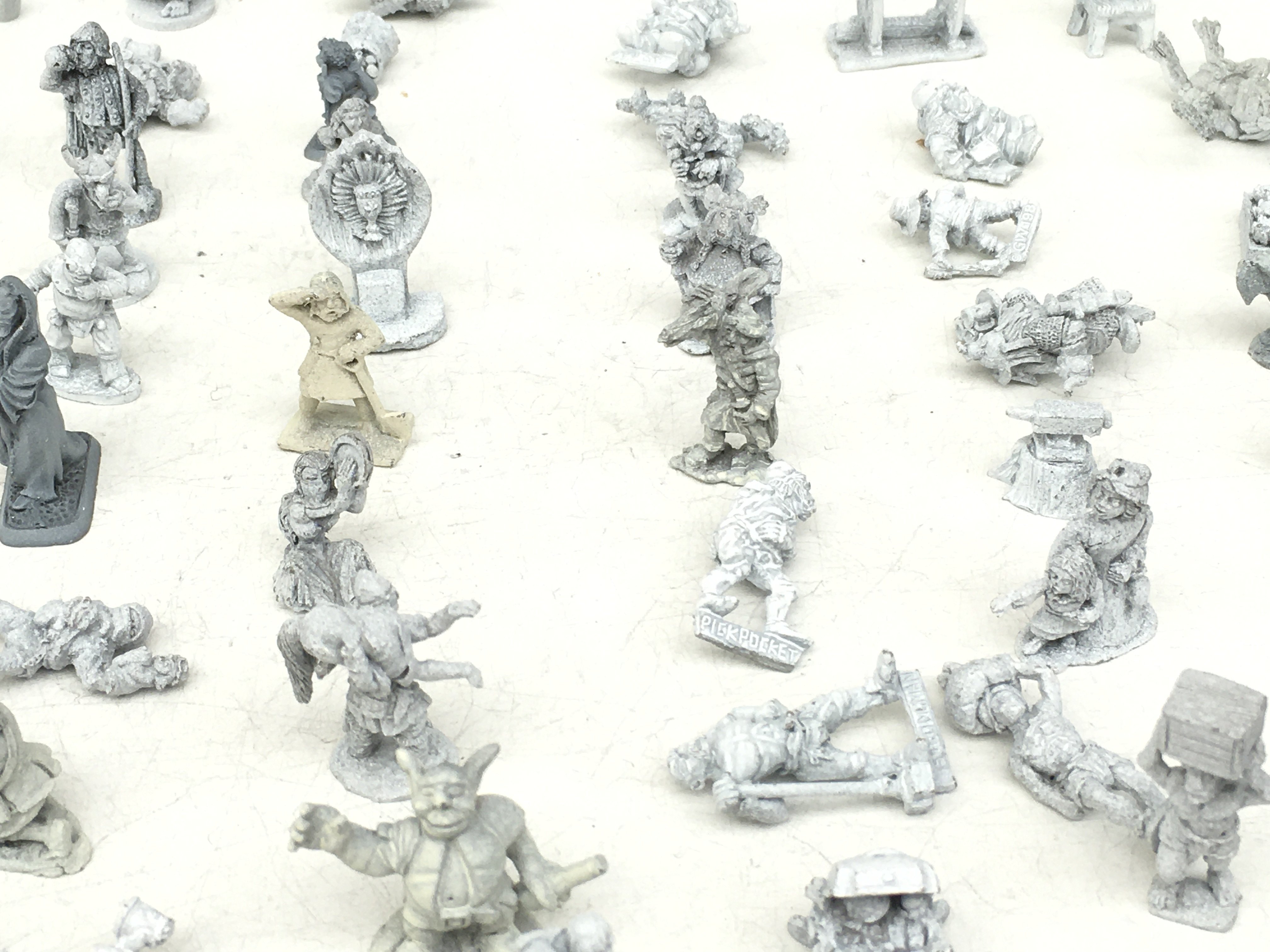 A box containing in excess of 150 metal figures from a Warhammer collection all unpainted.