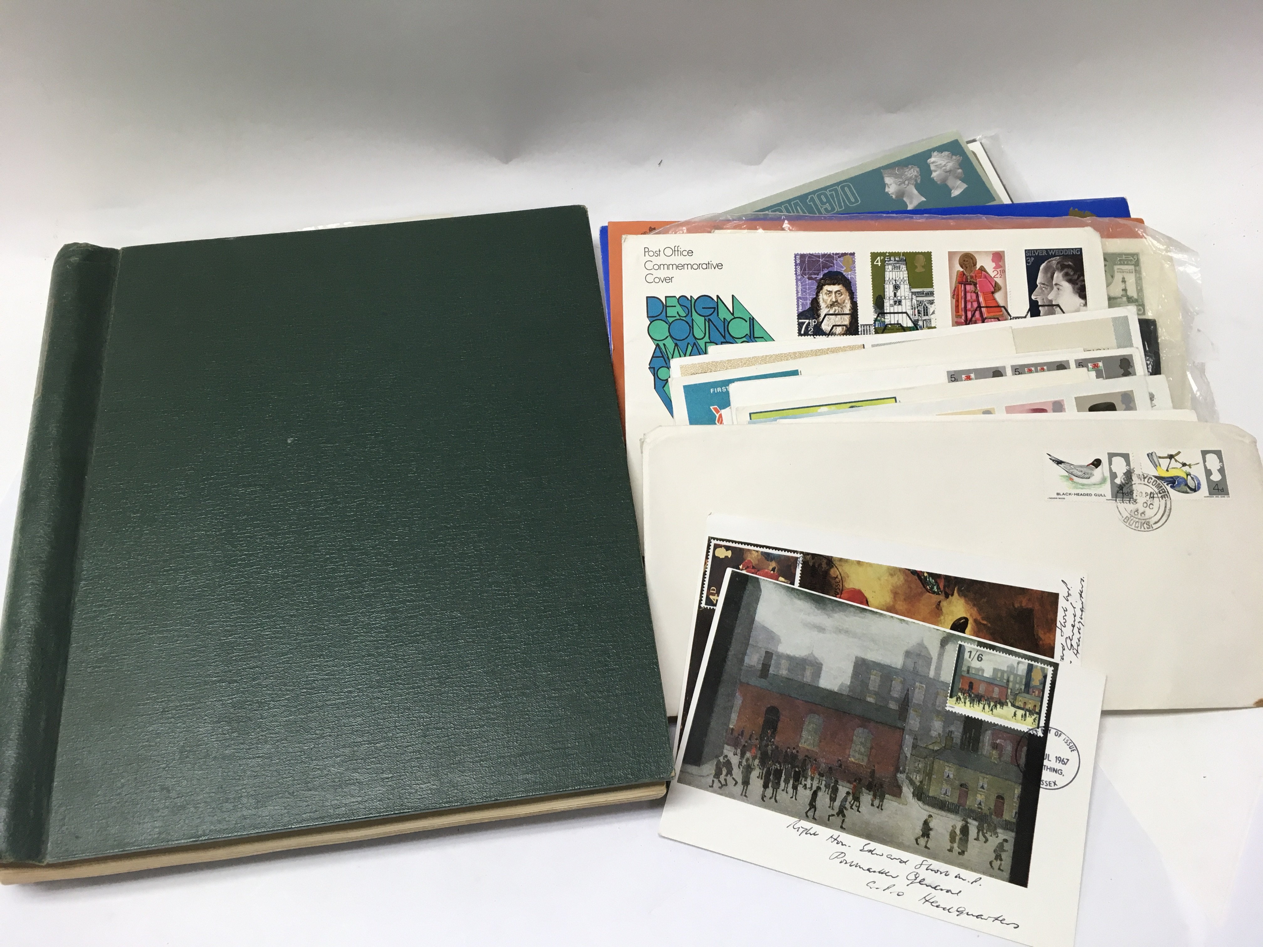 An album of British and world stamps also including some loose stamps.