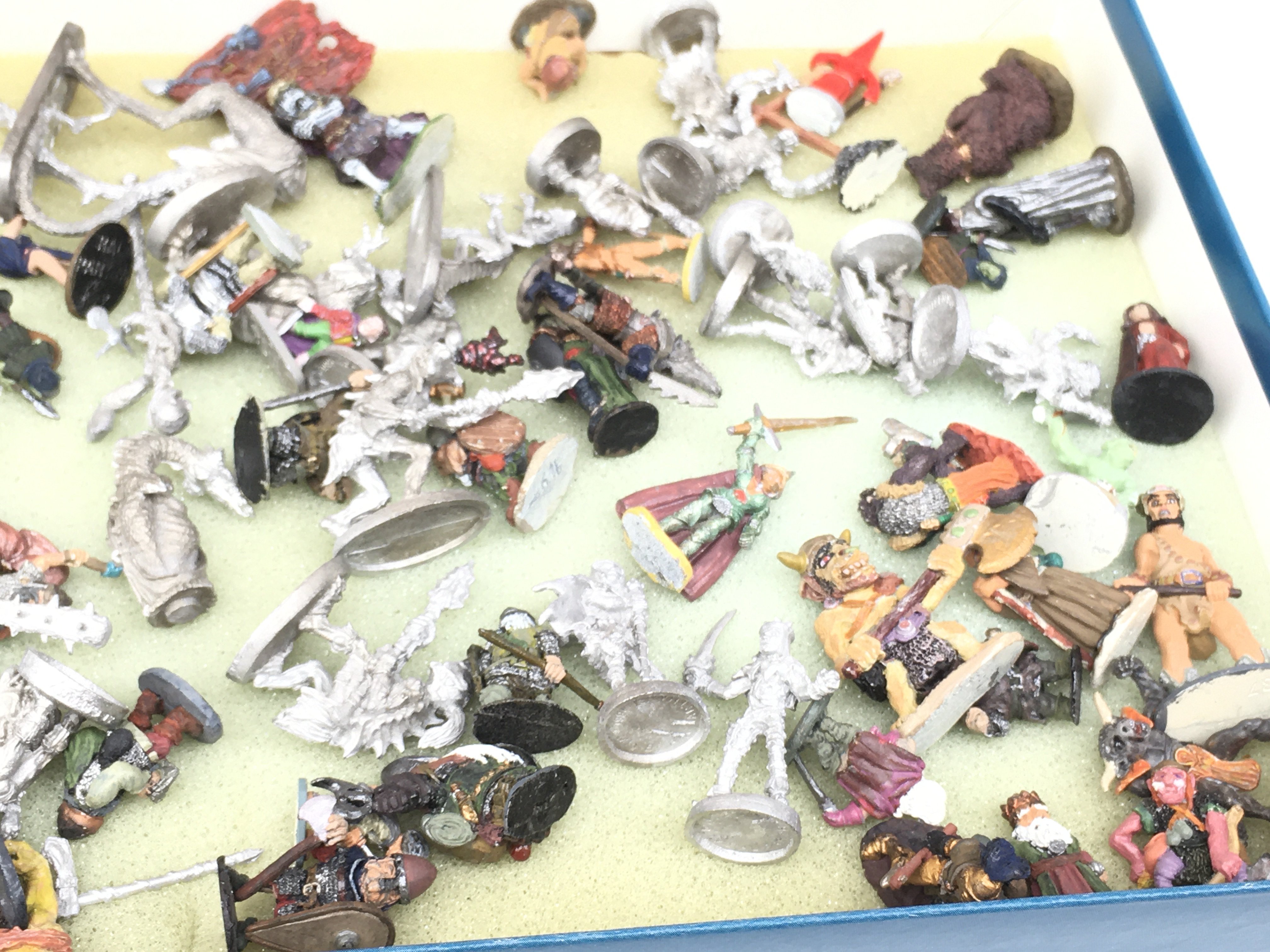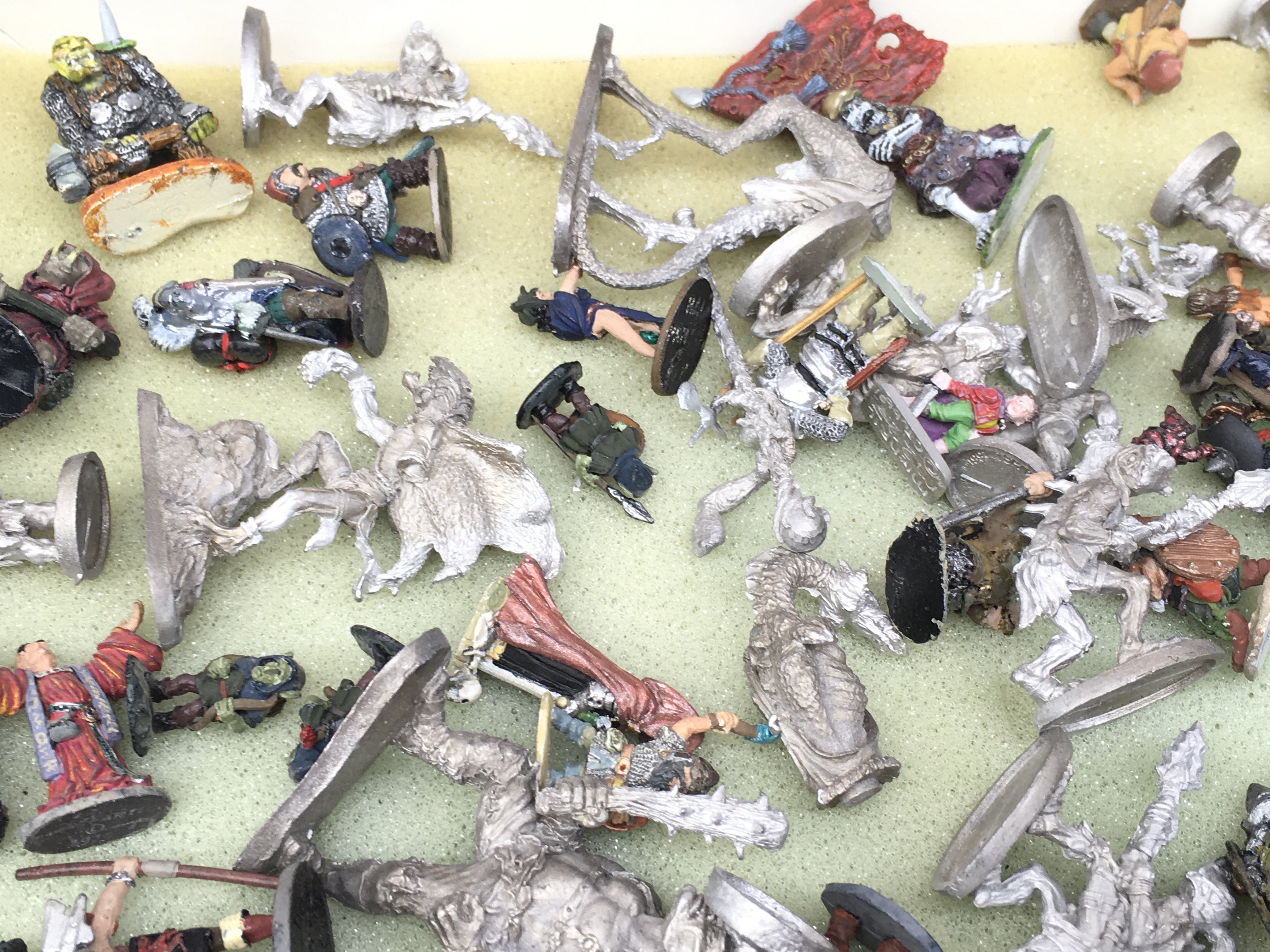 A box containing approximately 50 metal figures by Ral Parthia and others from a Warhammer collection mostly painted
