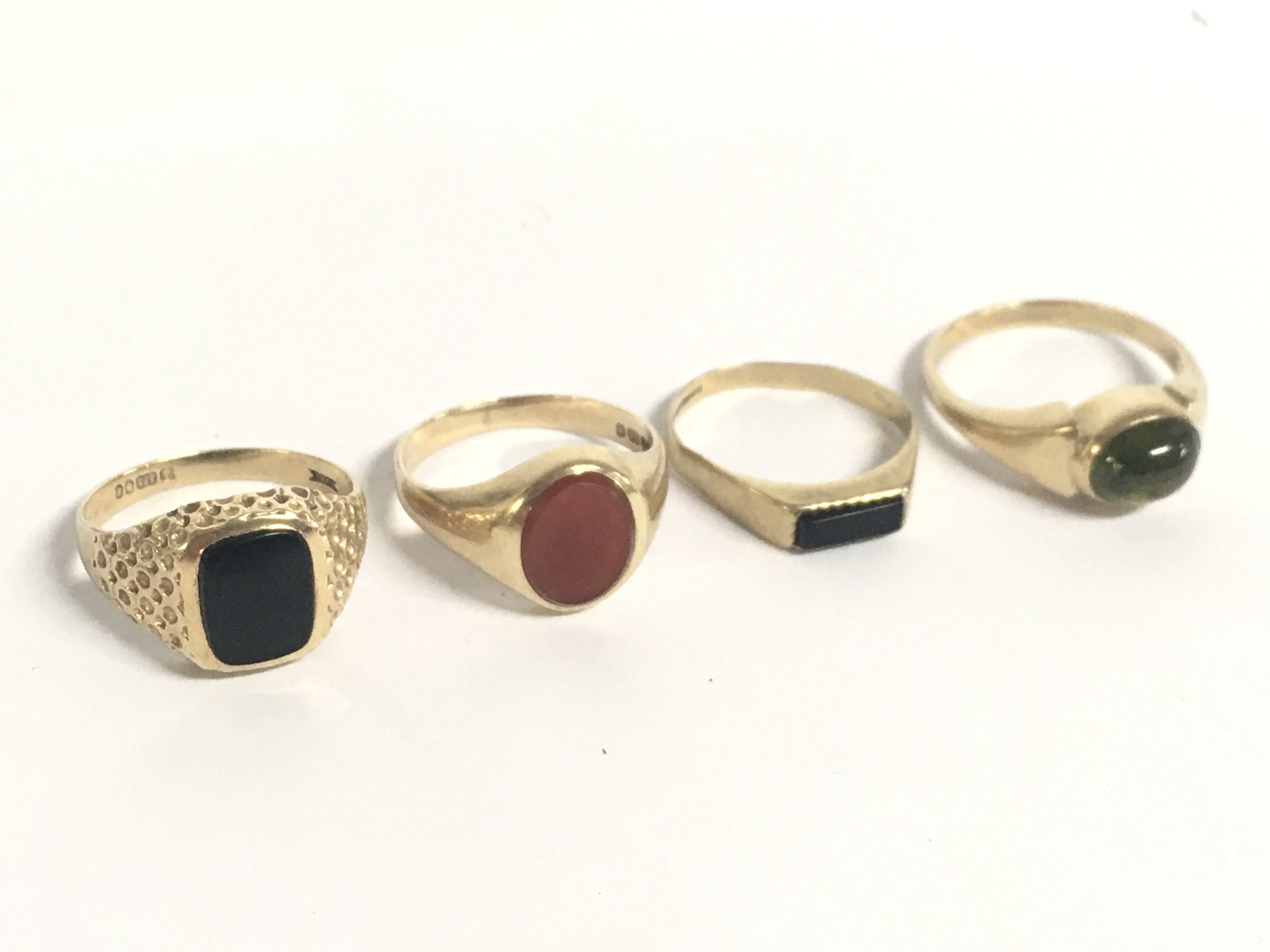 9 carat gold signet rings set with gemstones. Total weight 11.6g. Postage category A