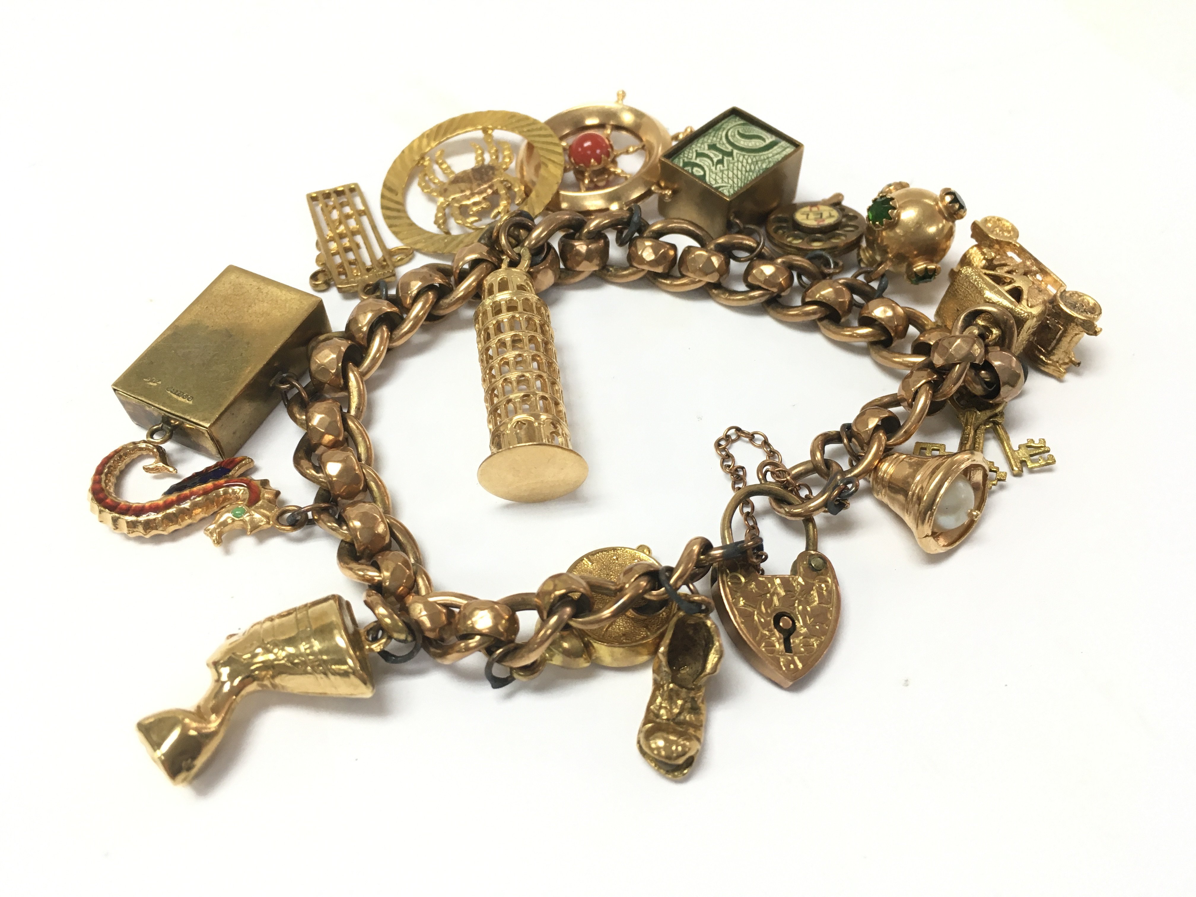 A 9ct gold heavy charm bracelet, approx weight 46.87 grams.