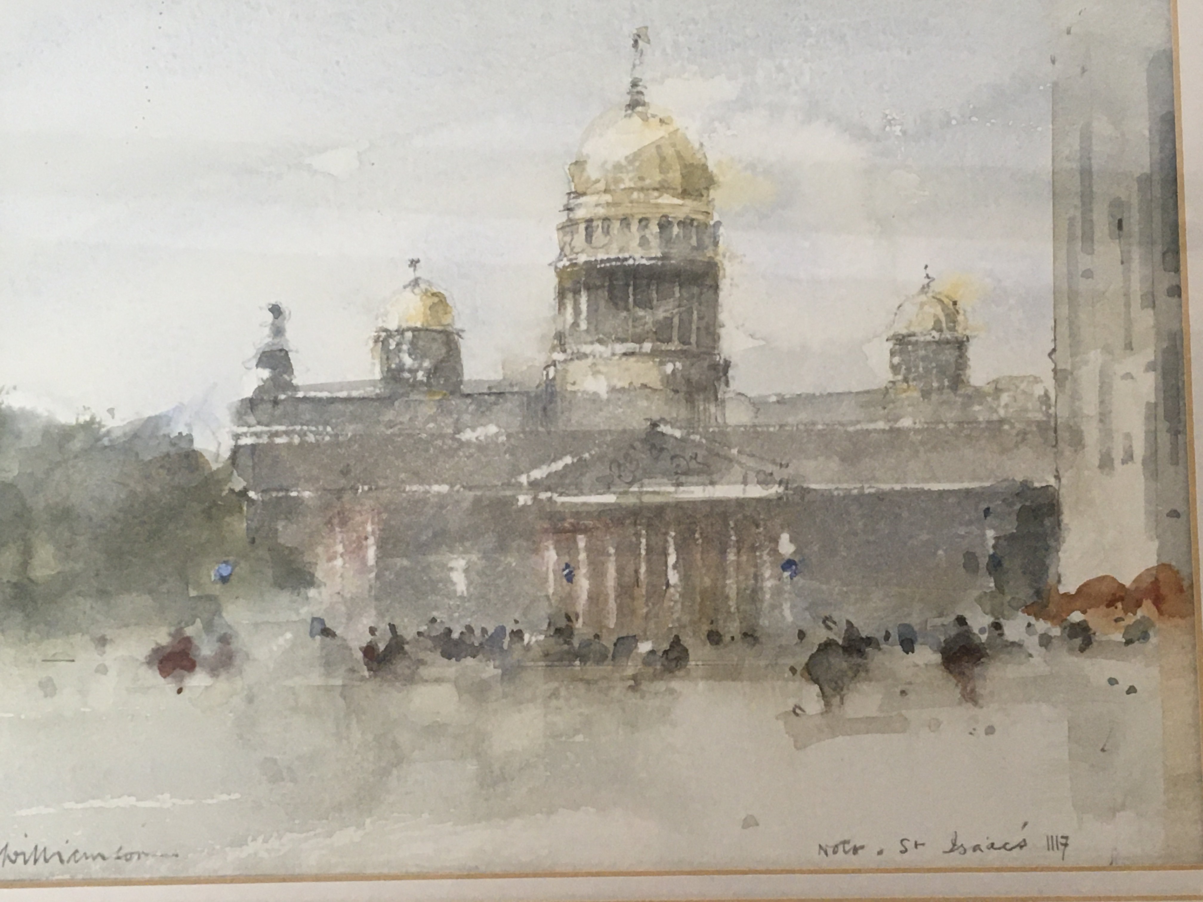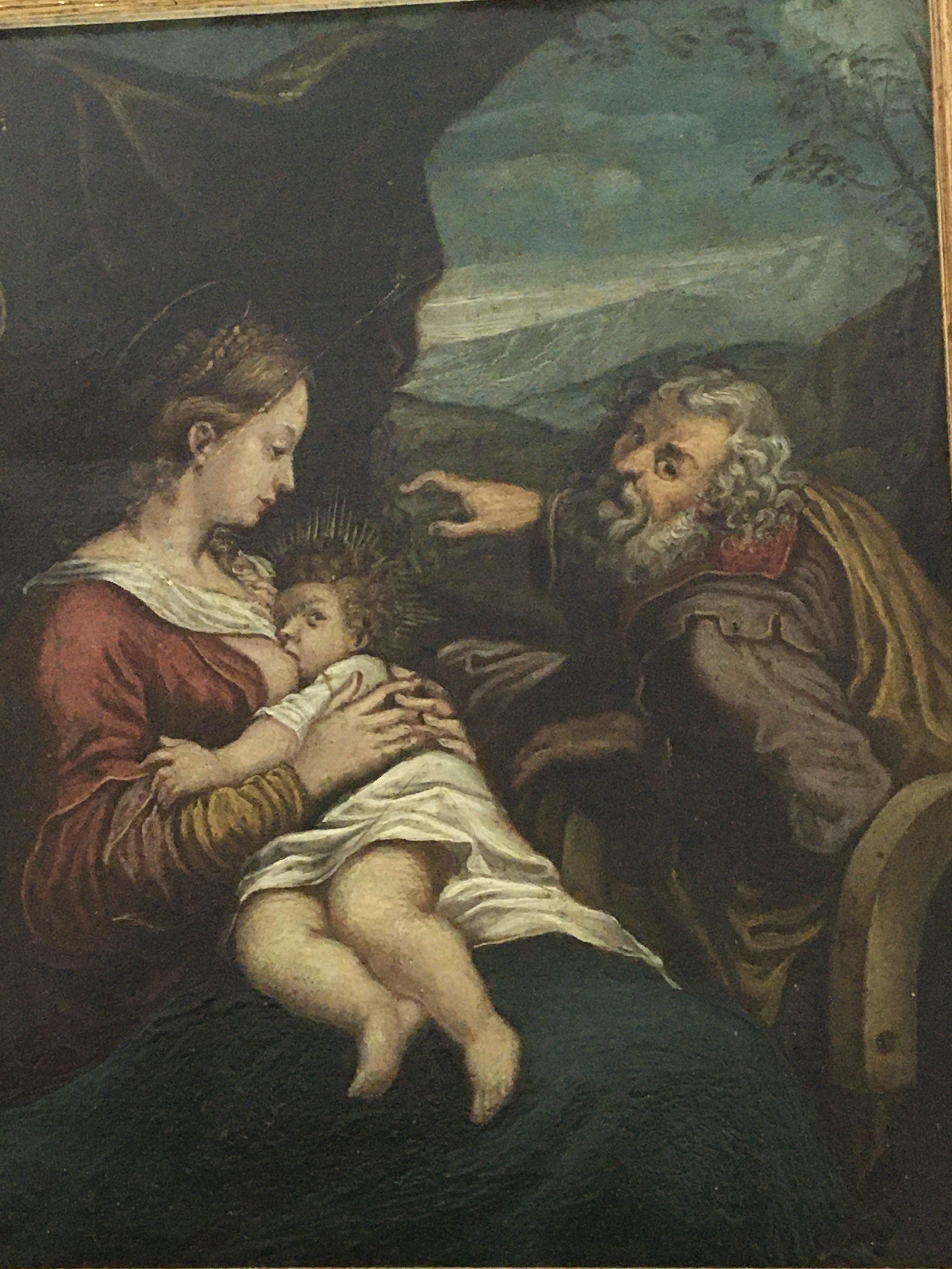 A framed oil painting on panel study of the Madonna and child and a framed pencil signed study a view of St Isaacs London (2)