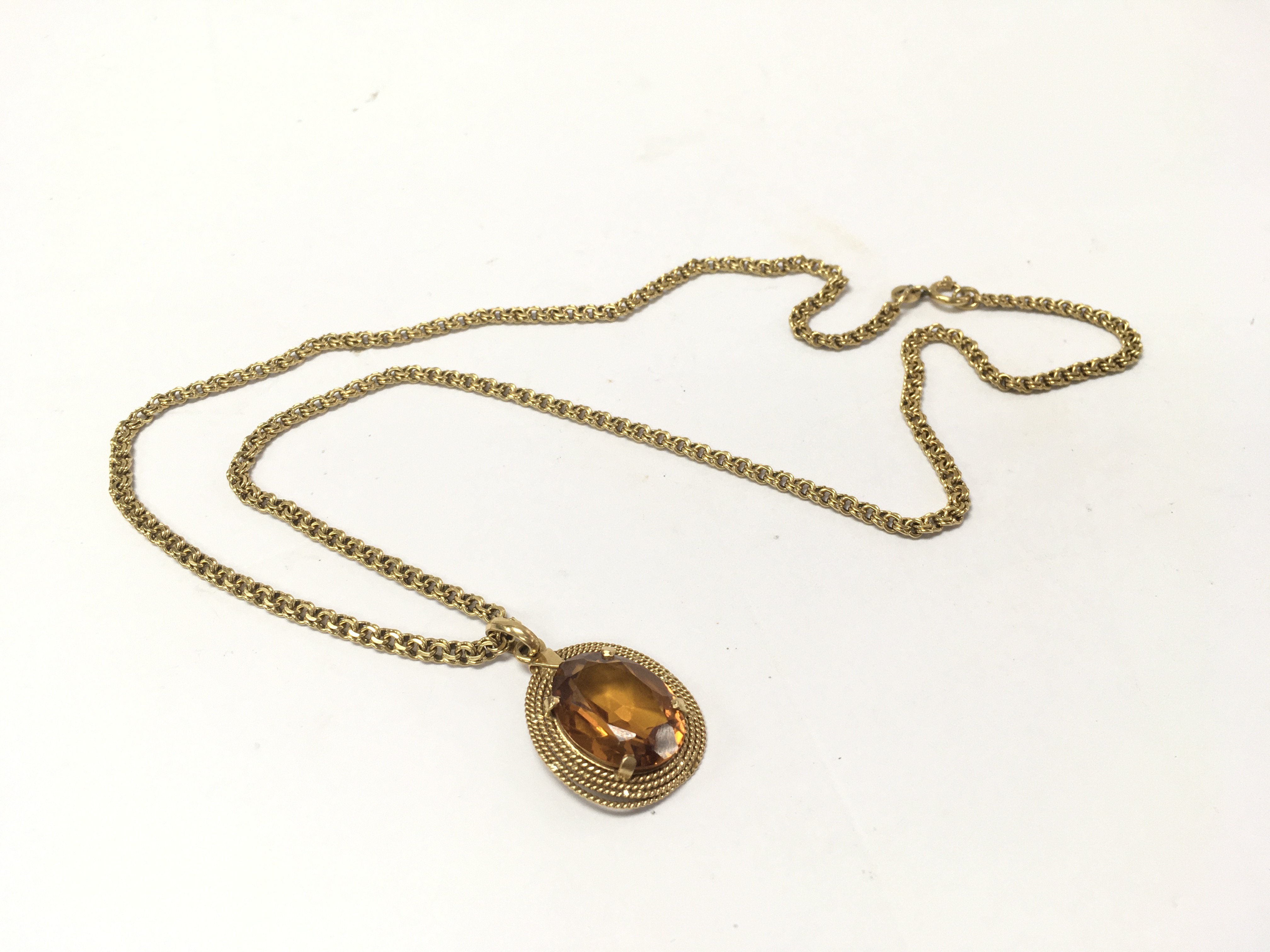An 18ct gold citrine set pendant and necklace. Approx weight 17.21 grams.