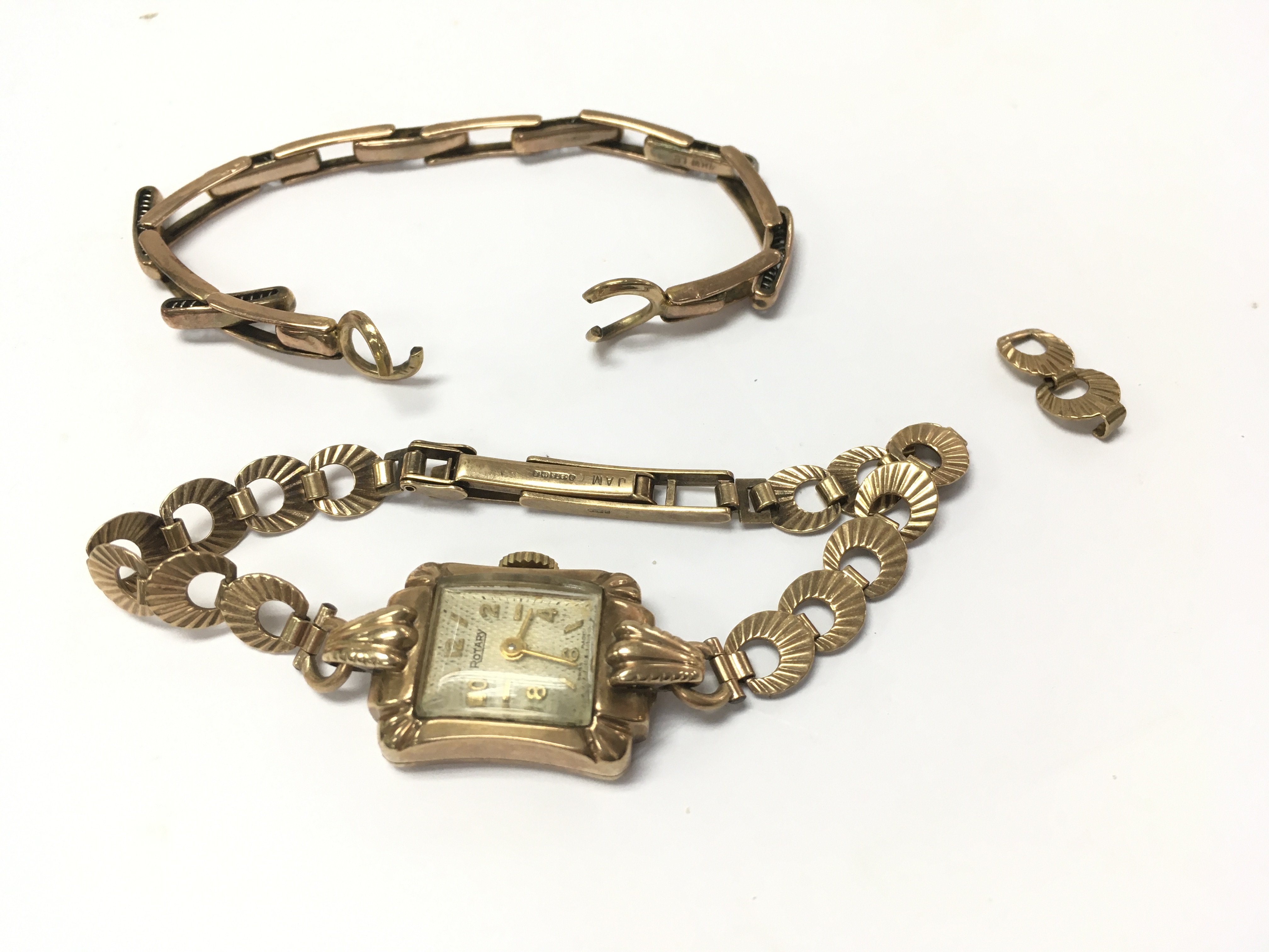 A 9ct gold ladies rotary watch with another 9ct gold ladies watch strap and extra links. Approx weight 11.14 grams