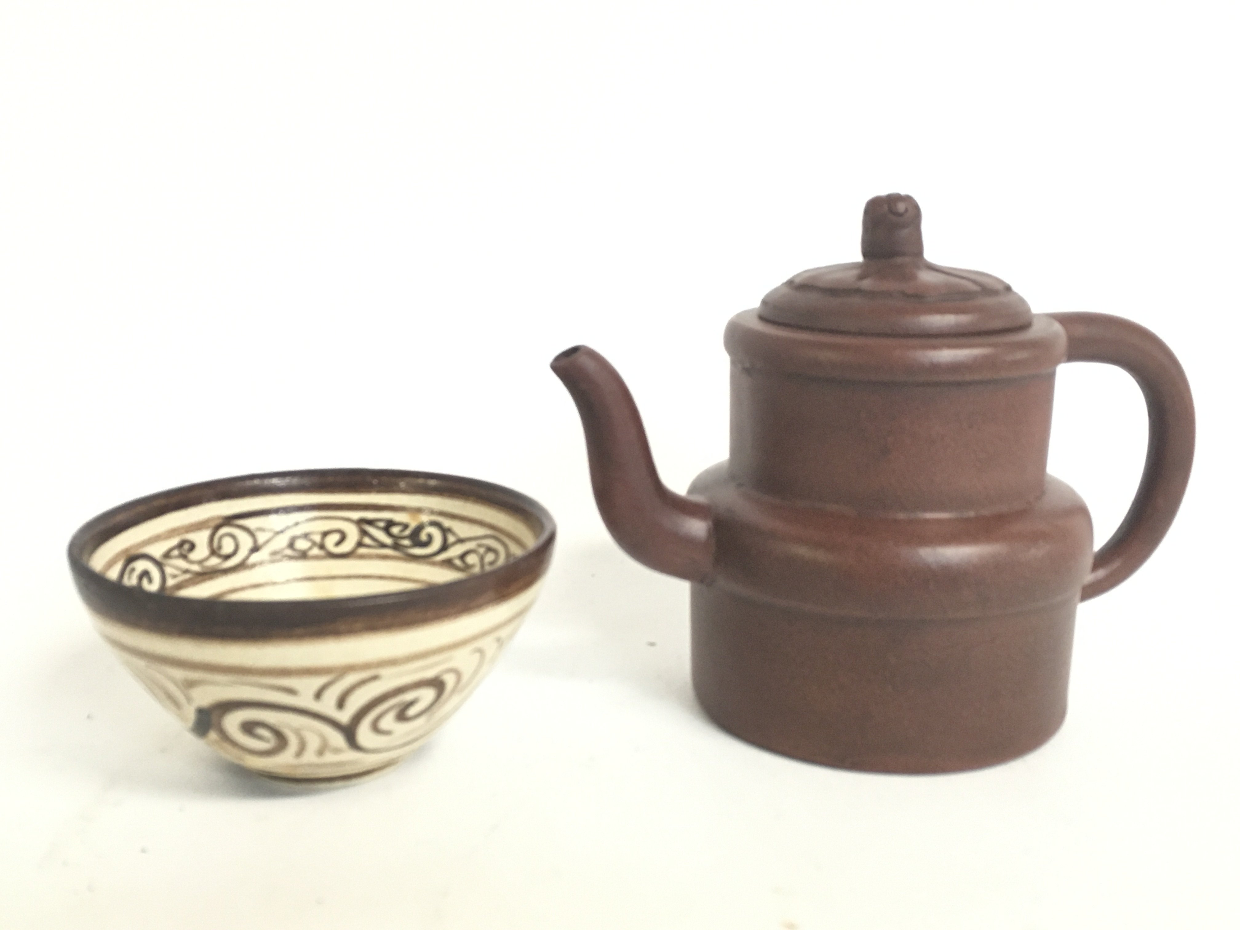 A Chinese Terracotta tea pot and a reproduction bowl. This lot cannot be posted